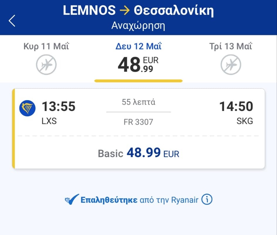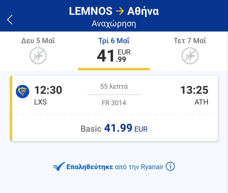 Νέες πτήσεις στο εσωτερικό της Ελλάδας προσθέτει η Ryanair στο θερινό της πρόγραμμα. Από 1 Μαϊου θα ξεκινήσει πτήσεις από την Αθήνα για τη Λήμνο τρεις φορές την εβδομάδα. Μια μέρα μετά, στις 2 Μαΐου θα ξεκινήσει το Θεσσαλονίκη – Λήμνος επίσης τρεις φορές την εβδομάδα.