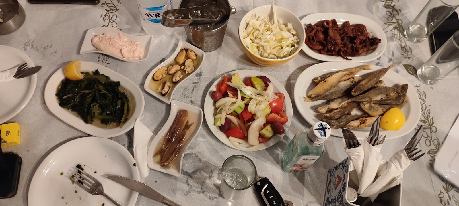 Ο κ. Γαννικιζάκης Αποστόλης τους υποδέχτηκε πολύ θερμά, τους ξενάγησε στον χώρο του και στην κουζίνα, την οποία δουλεύει ως a la carte με ουζεμεζεδες και κρασομεζέδες, τους έδειξε ποικιλία θαλασσινών και κρεατικών αντίστοιχα. Επίσης τους ανέλυσε "μυστικά" του επαγγέλματος, όπως ότι ένας καλός μεζές αναγκάζει τον πελάτη να κάνει περισσότερη κατανάλωση σε αλκοόλ και θέλει να ξαναεπισκεφτεί το κατάστημα...