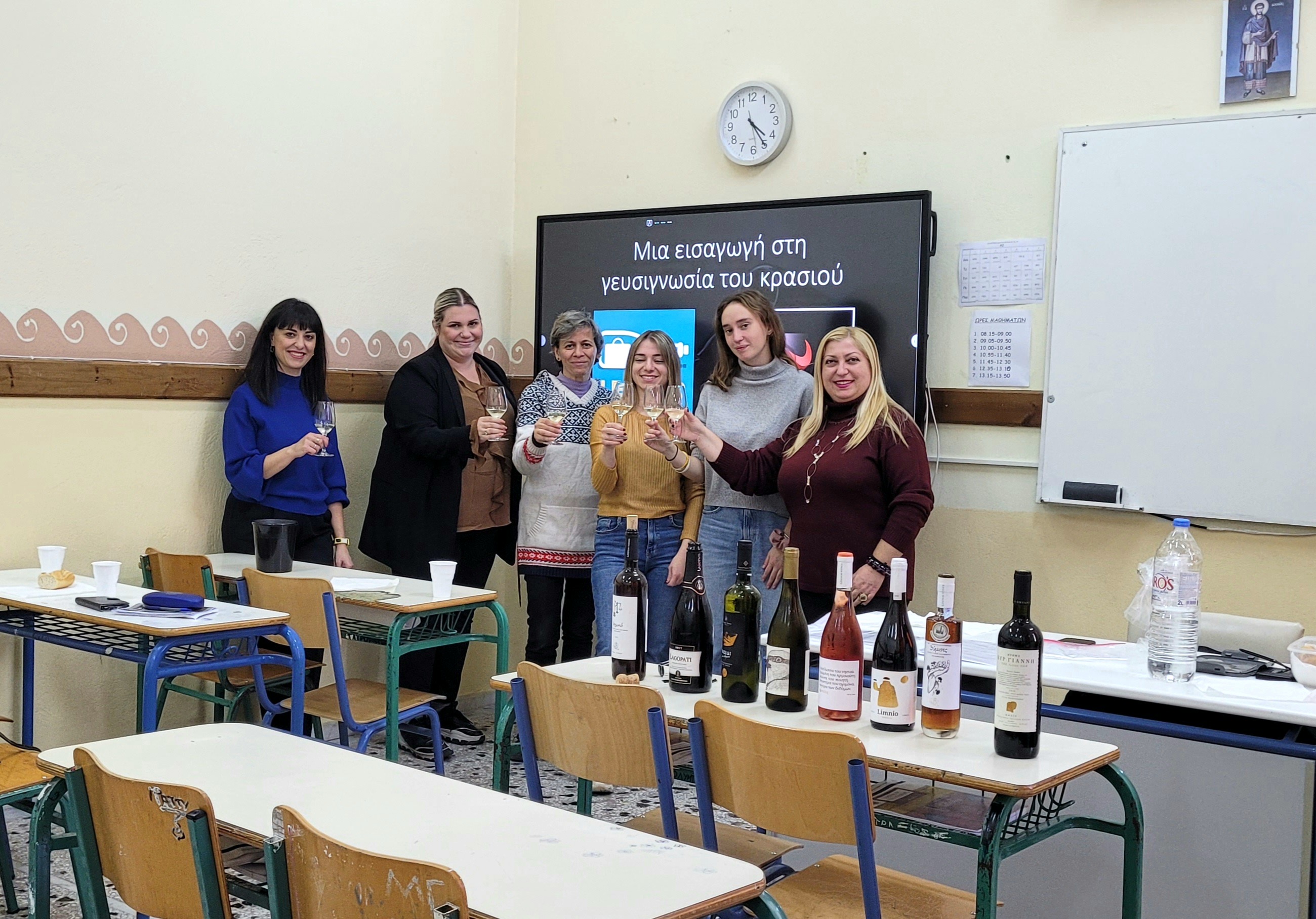 Η κα Κωνσταντάρα, εκ μέρους του Limnos Wine Trails και Limnos Wine Club, έφτιαξε μια λίστα Λημνιών οίνων, διαφορετικών τύπων, τους οποίους παρουσίασε και στη συνέχεια δοκίμασε μαζί με τους σπουδαστές, την εκπαιδεύτρια και την Διευθύντρια της Σχολής. Επεξήγησε ποιες γνώσεις οφείλει να έχει ένας αμπελουργός-οινοποιός για να δοκιμάσει και να αξιολογήσει το προϊόν του και δίδαξε στους σπουδαστές πως να πραγματοποιήσουν σωστά και τεχνικά οργανοληπτικό έλεγχο οπτικά, οσφρητικά και γευστικά.