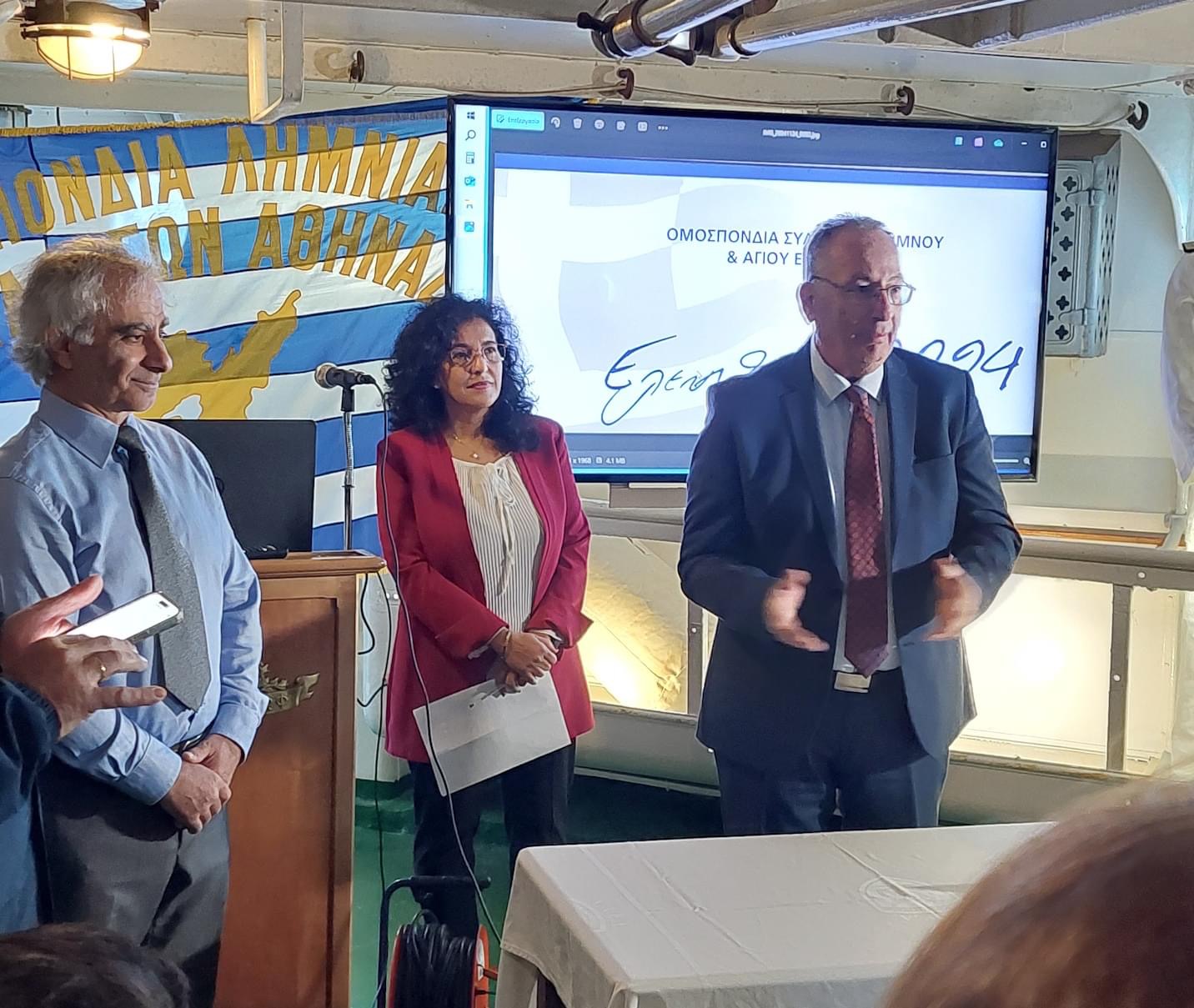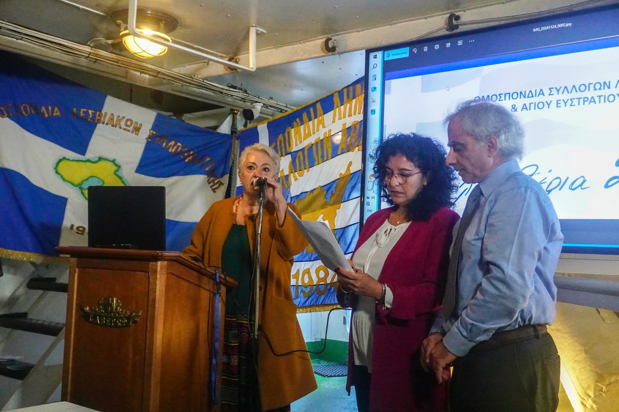 Επίσης οι πρόεδροι των Ομοσπονδιών, των Λεσβιακών Συλλόγων κ. Νεκτάριος Βακάλης, και των Χιακών Σωματείων κ ΜαριέλαΒαρώνη, οι πρόεδροι των Αδελφοτήτων Σάμου κ. Κώστας Αγγέλης και Ικαρίας κ. Λευτέρης Κουτούφαρης.