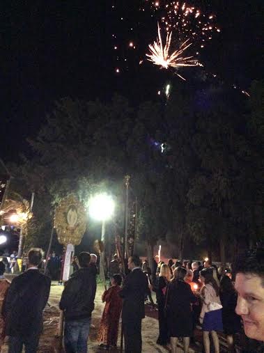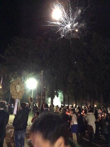 Οι πιστοί αντάλλαξαν το φιλί της Αγάπης, ενώ φέτος στην Αγία Τριάδα, παραδόξως πώς, ρίχτηκαν τα λιγότερα βεγγαλικά που θυμάμαι ποτέ.