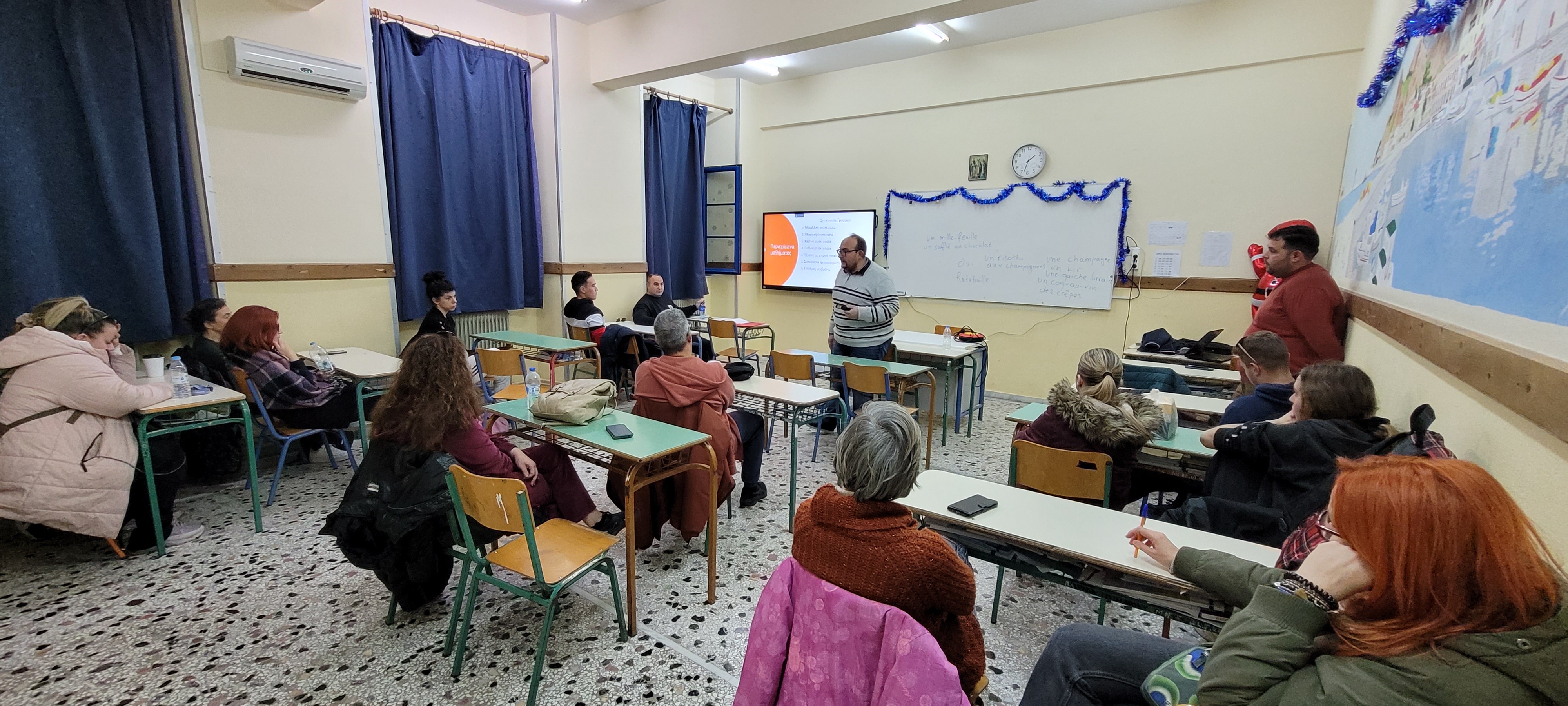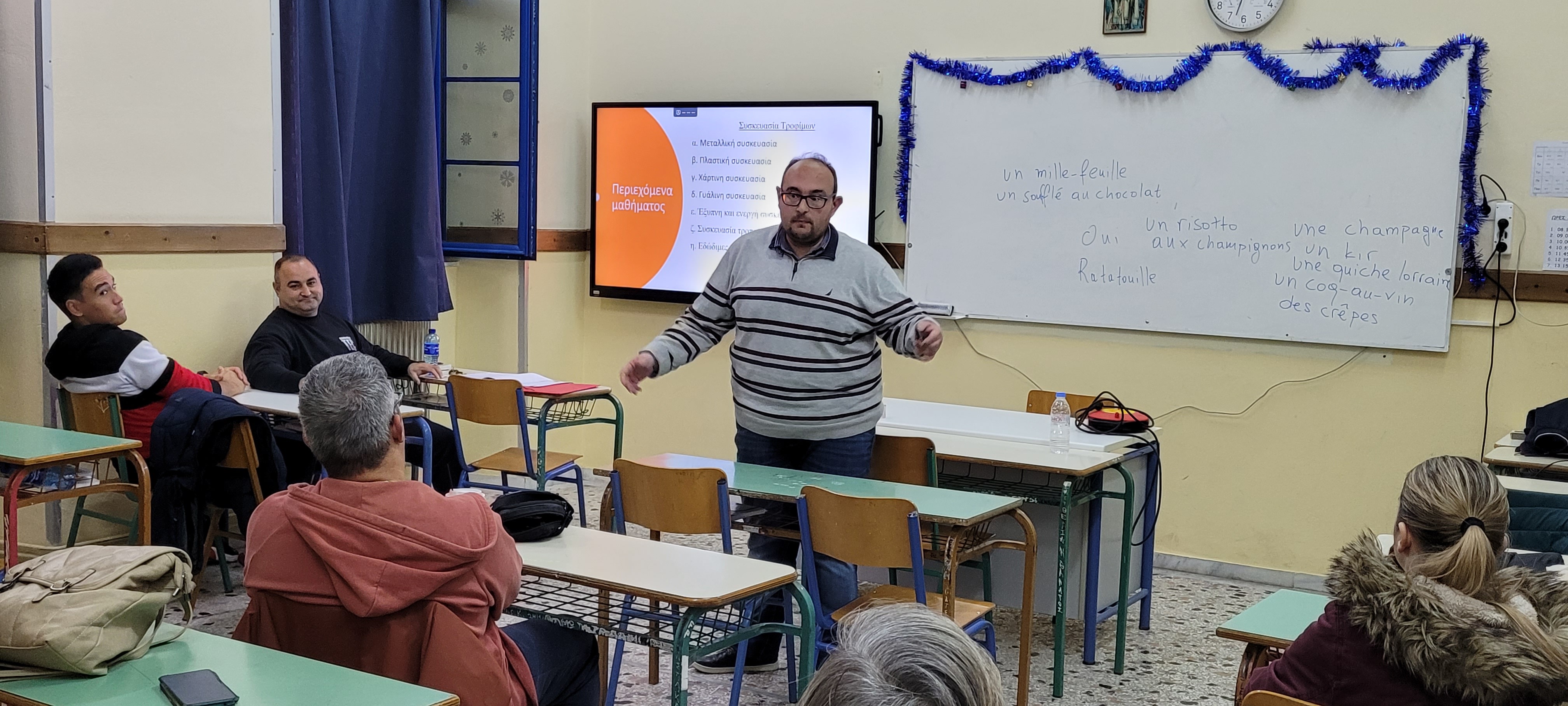 Οι σπουδαστές του τμήματος Τεχνικός μαγειρικής τέχνης αρχιμαγειρας σεφ και του τμήματος Τεχνικός Αμπελουργίας και Οινολογίας παρακολούθησαν τις διαλέξεις δύο καθηγητών του ΤΕΤΔ ΛΗΜΝΟΥ, του δρ. Ιωάννου Ζαχαρία (Χημικός μηχανικός) και του Προέδρου του ΤΕΤΔ δρ Γκατζιώνη Κωνσταντίνου (Τεχνολόγος τροφίμων).