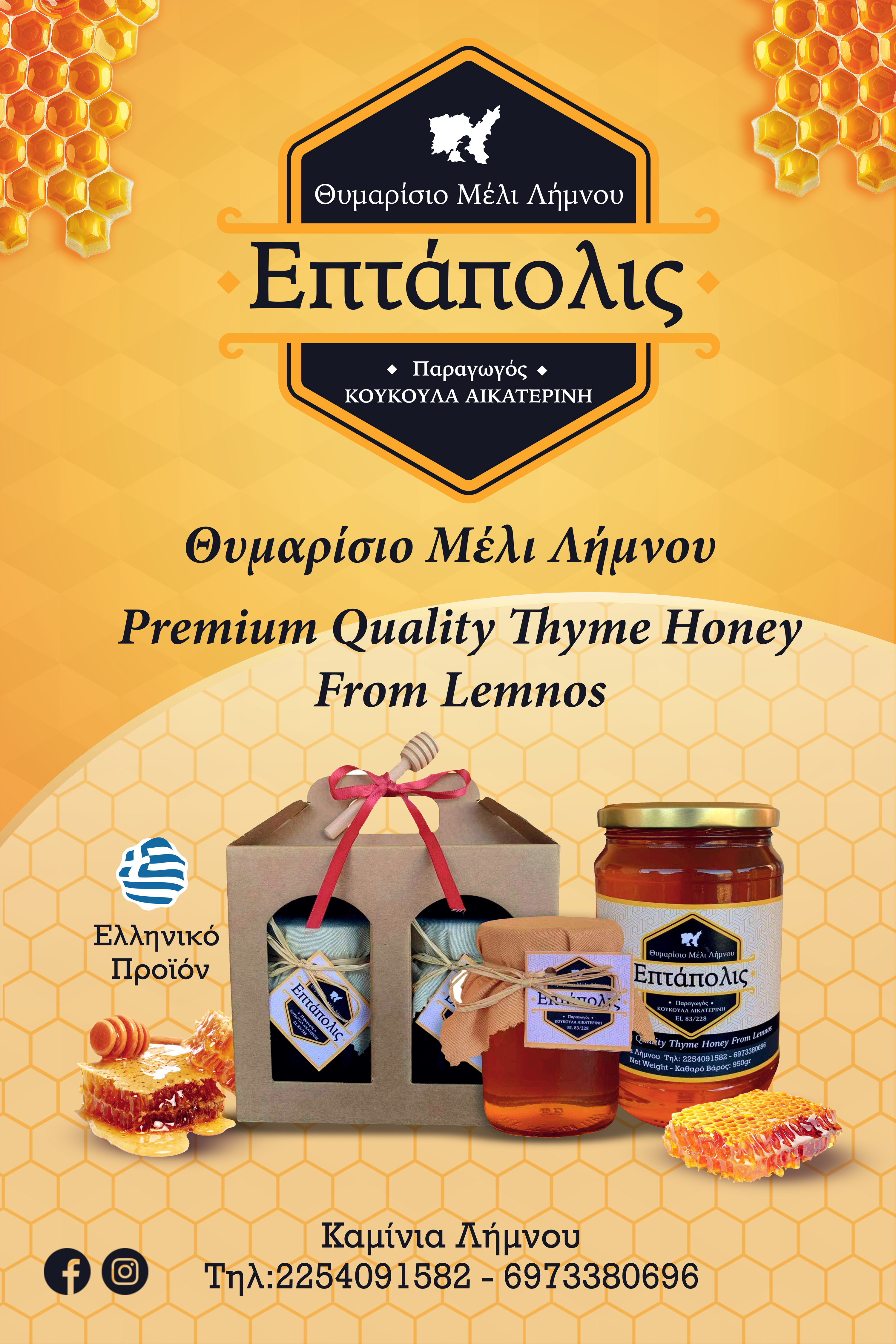 Επιπλέον, σας ενημερώνουμε ότι το βραβευμένο Θυμαρίσιο Μέλι ‘’Επτάπολις‘’είναι διαθέσιμο σε επιλεγμένα τοπικά καταστήματα της Λήμνου, ώστε να μπορείτε να το προμηθευτείτε εύκολα και να απολαύσετε την εξαιρετική του ποιότητα», δήλωσε η παραγωγός