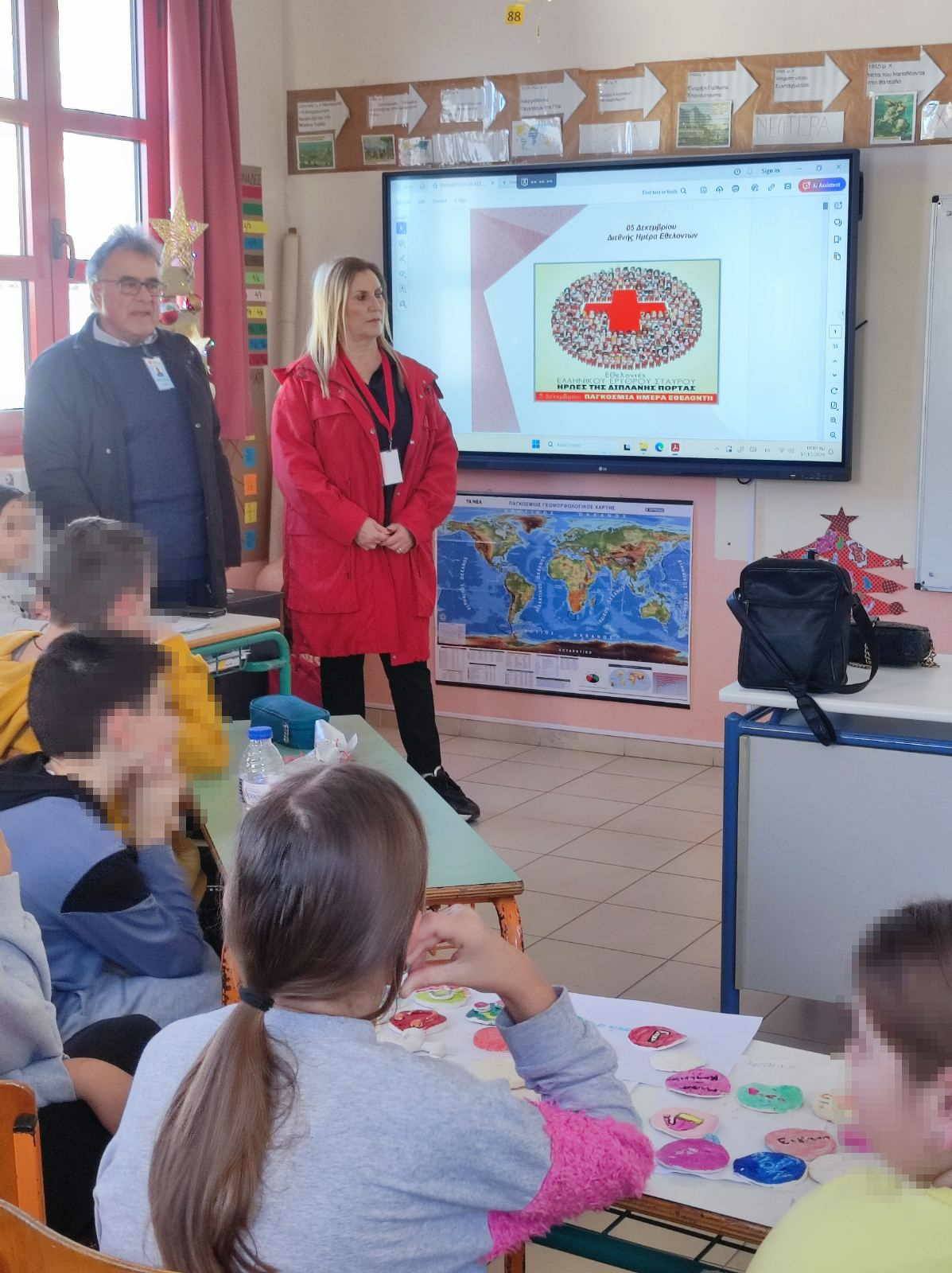 Η παρουσίαση στο διαδραστικό πίνακα του σχολείου, έγινε από την Αντιπρόεδρο του ΠΣ και Παιδίατρο κ. Ελένη Φαρμάκη, παρουσία του Προέδρου κ. Δημητρίου Αχιλαδέλλη και ένστολων Εθελοντών του Τομέα Υγείας ΕΕΣ.