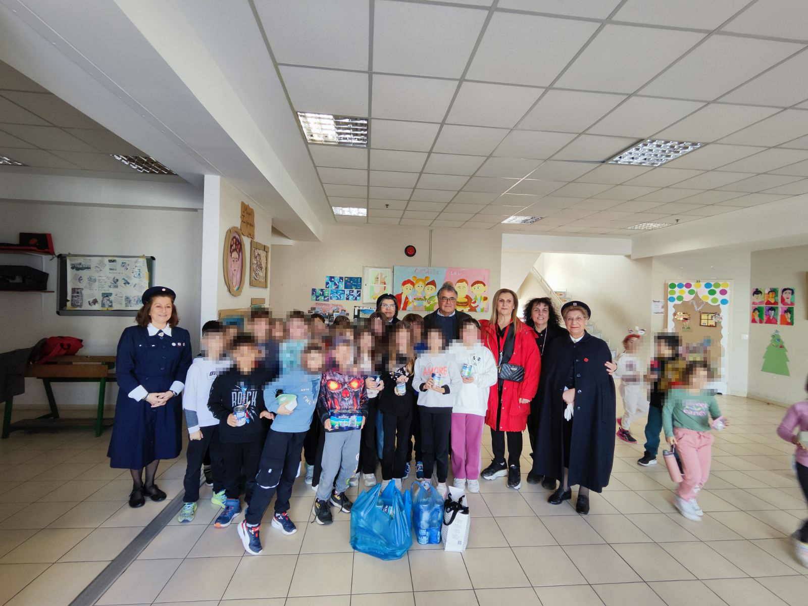 Στο τέλος παρέδωσαν τα τρόφιμα και γάλατα που είχαν συγκεντρώσει για το "Δέντρο της Αγάπης".