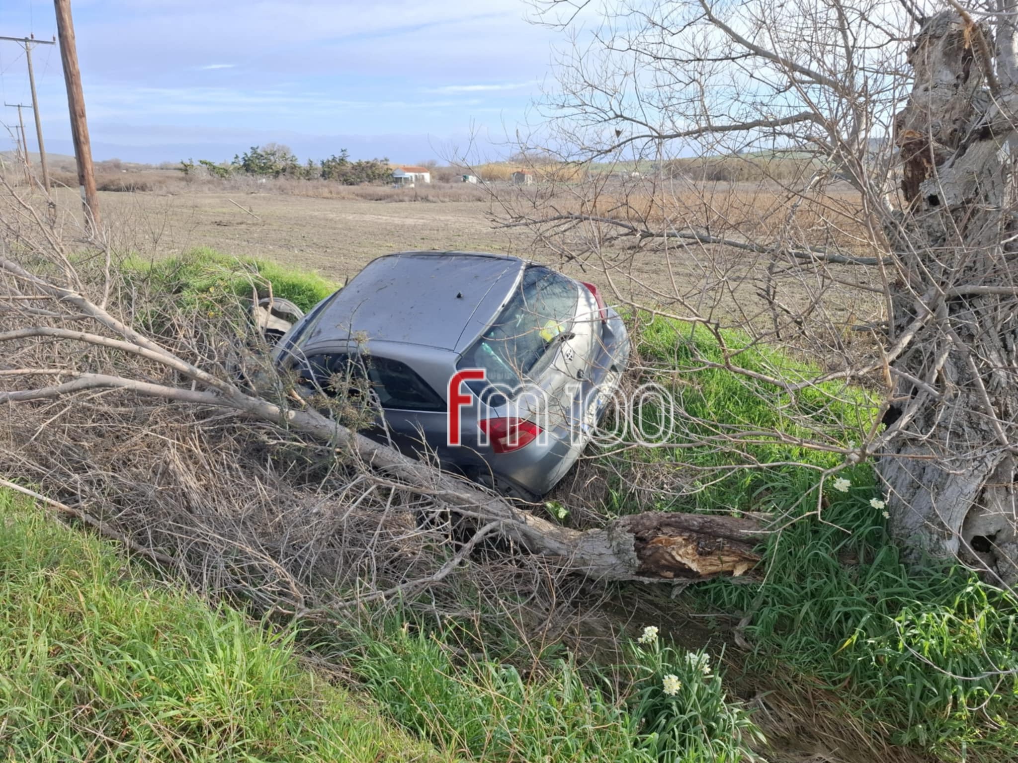 Το όχημα, στο οποίο επέβαινε μια μητέρα με το παιδί της, το οποίο μετέφερε στο σχολείο του στο Μούδρο, εξετράπη της πορείας του και κατέληξε σε παρακείμενο χαντάκι, χτυπώντας μάλιστα σε ένα δέντρο.