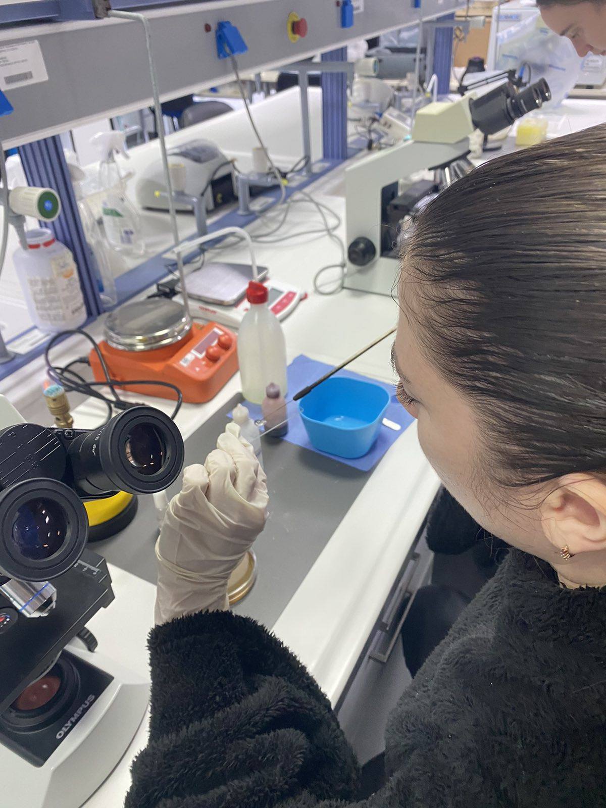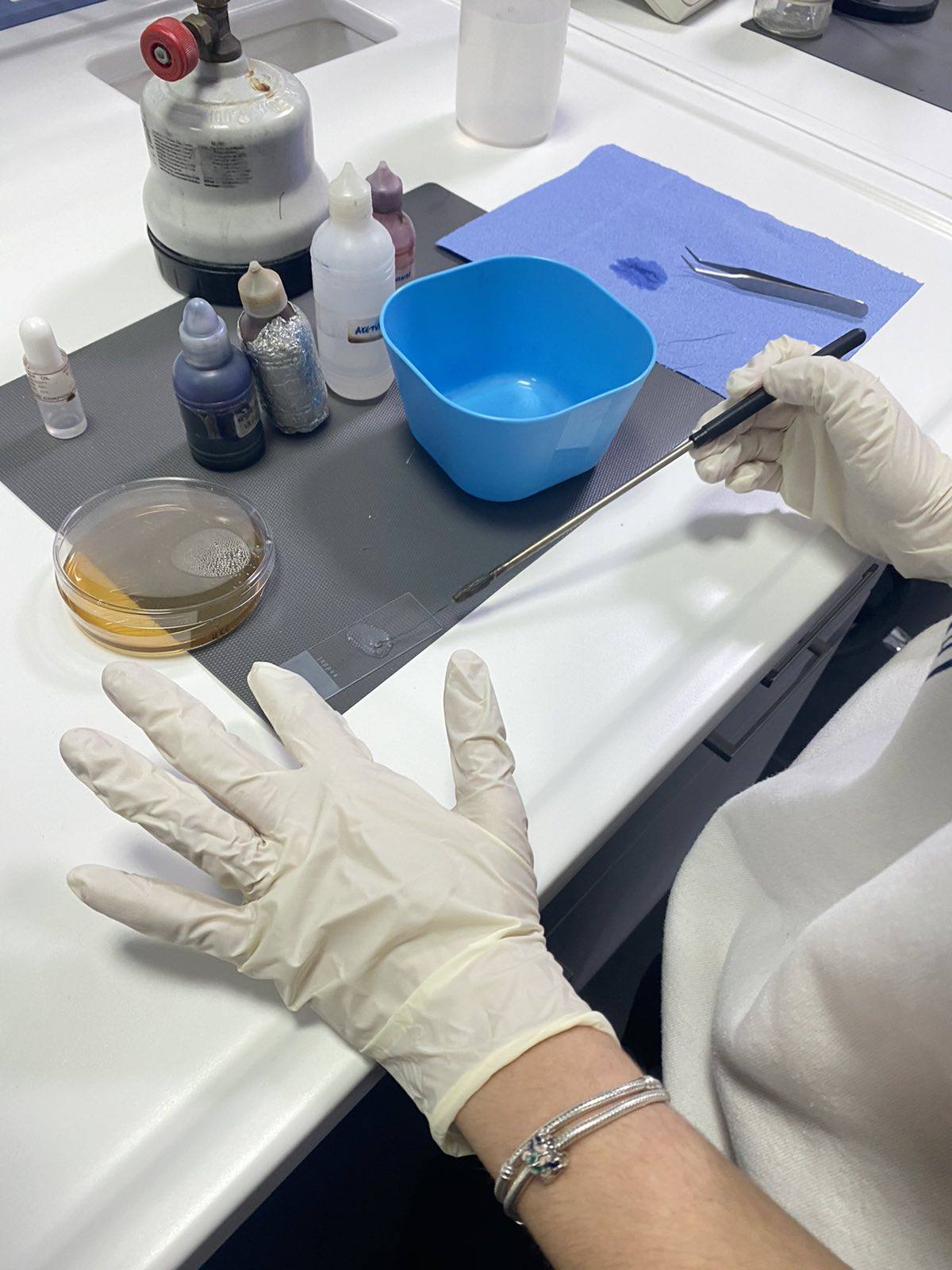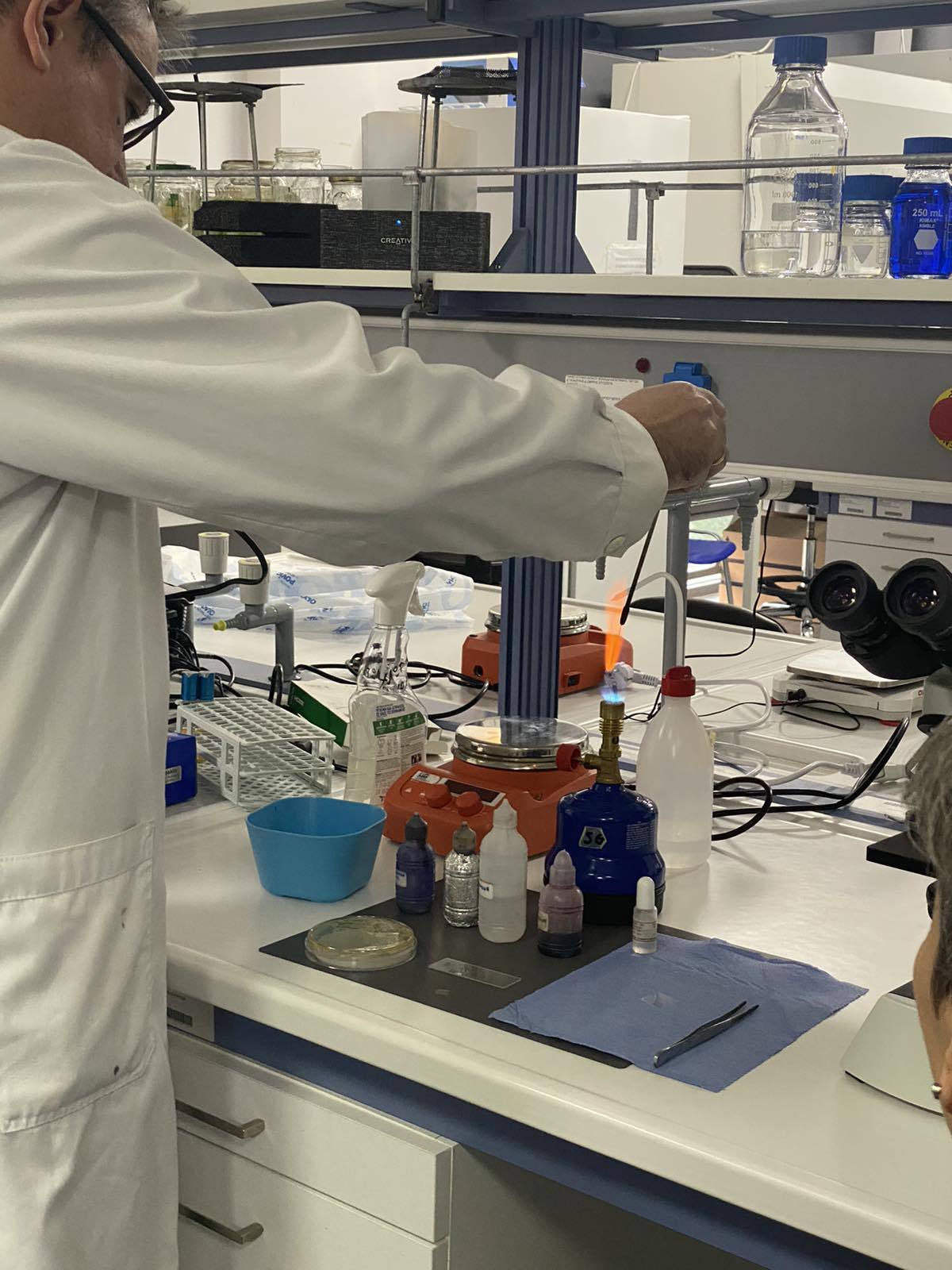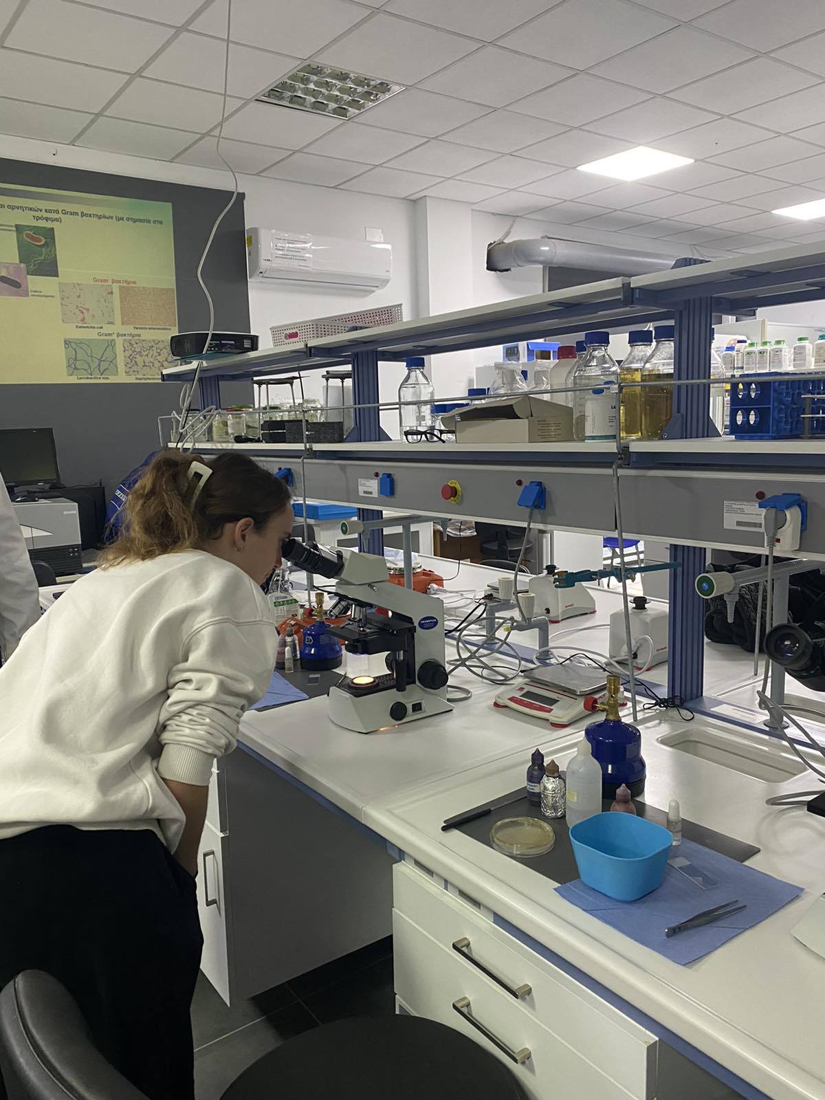 Βοήθησε όλους τους σπουδαστές να πραγματοποιήσουν τα βήματα του πειράματος τους, απάντησε με προθυμία σε κάθε ερώτηση και απορία, επεξήγησε τους τρόπους απολύμανσης και αποστείρωσης των υλικών και έτσι έφερε τους εκπαιδευόμενους σε πραγματική επαφή με τον κόσμο της μικροβιολογίας τροφίμων.