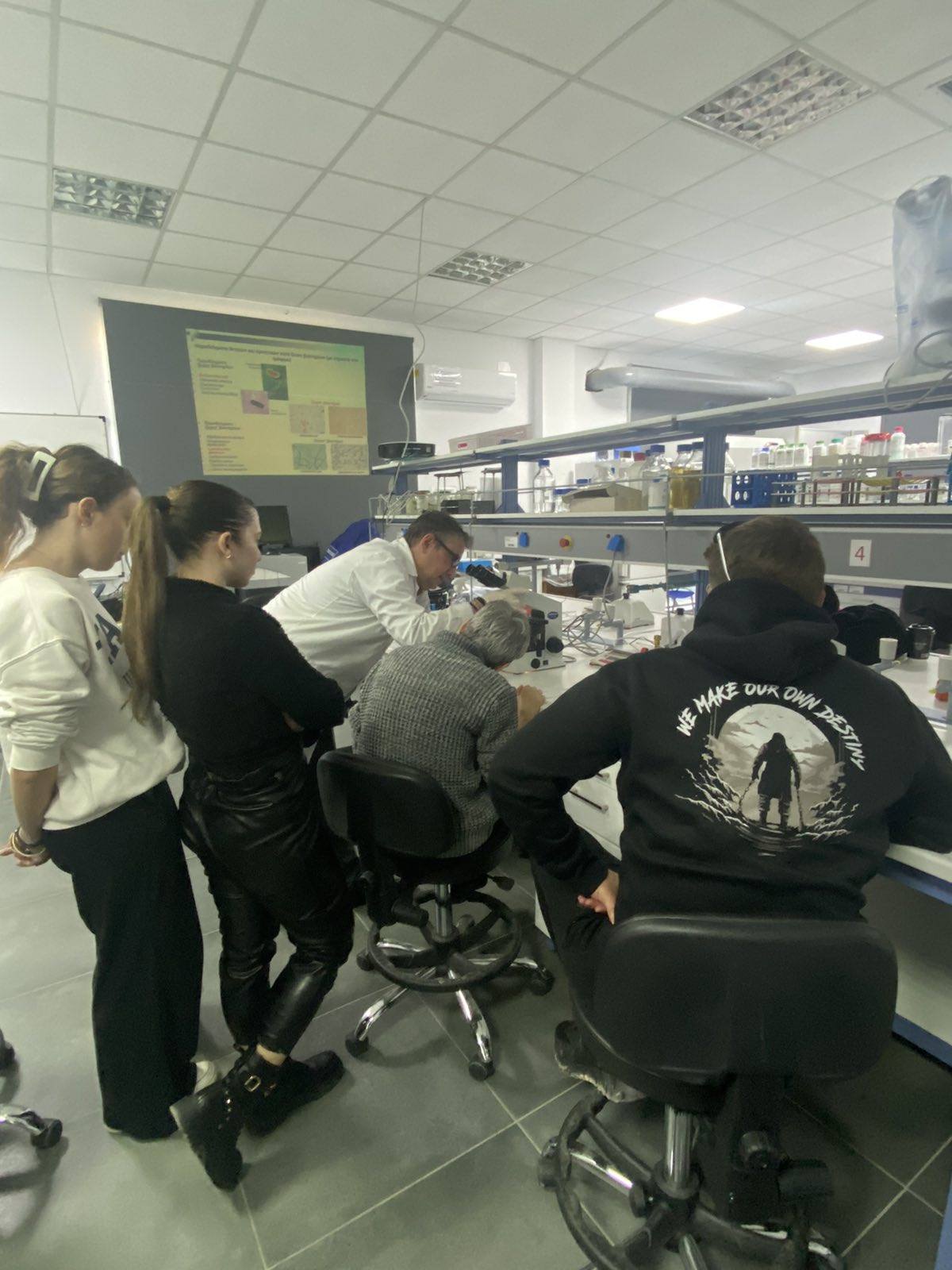 Τον ευχαριστούμε θερμά για τον χρόνο του, για τις γνώσεις που μετέδωσε στους σπουδαστές, για την ευκαιρία που τους παρείχε να έρθουν σε επαφή με ερευνητικό εργαστήριο Μικροβιολογίας και την εξοικείωση με τον εξοπλισμό και τη χρήση του από τους ίδιους τους σπουδαστές!