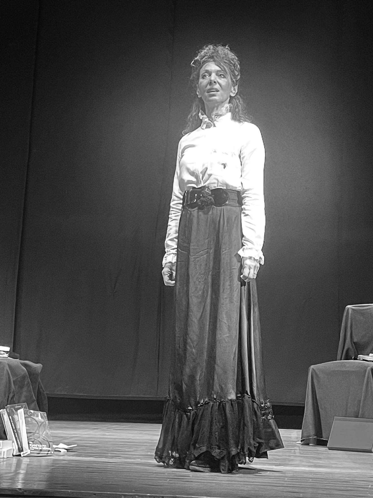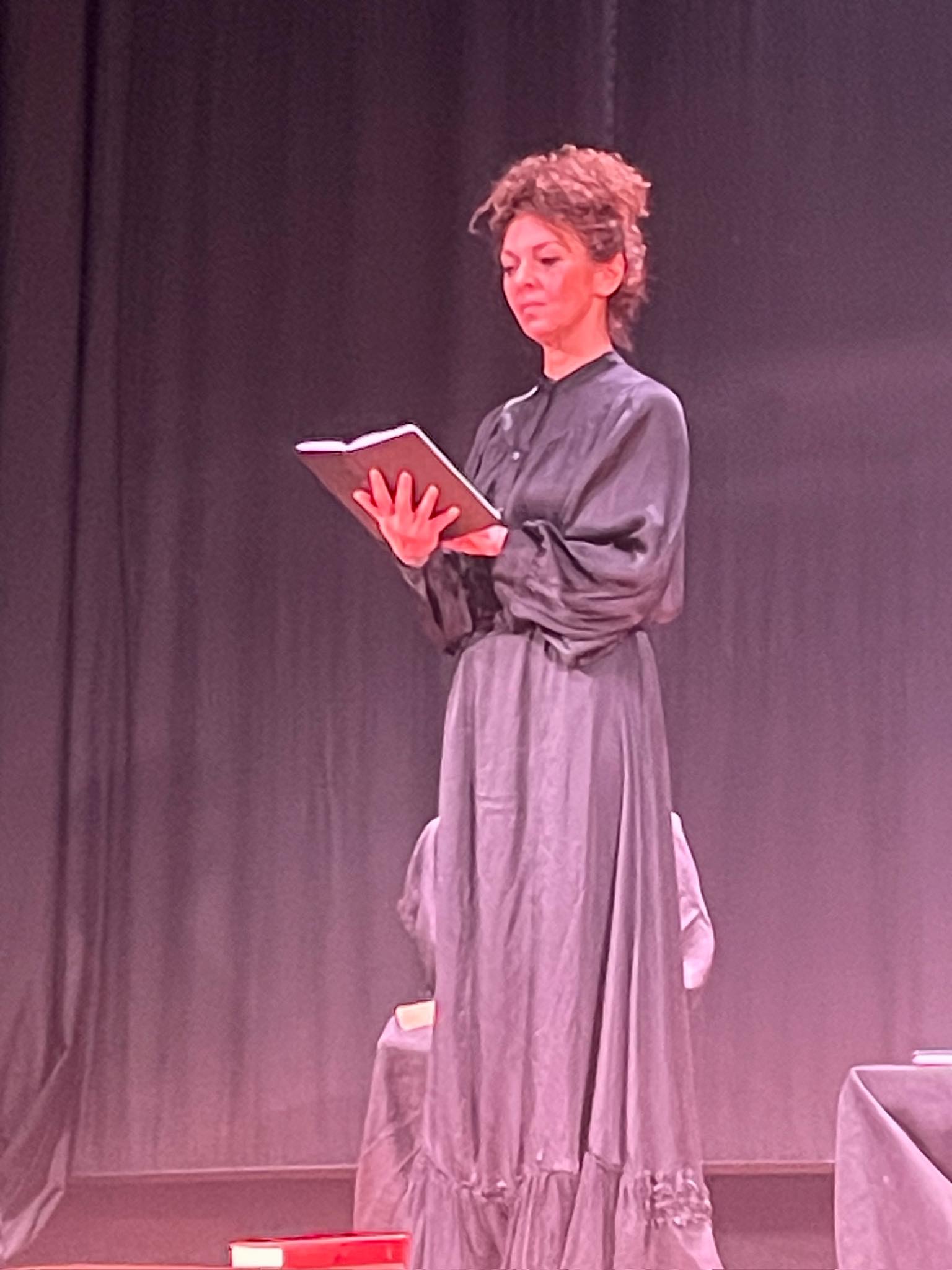 Η ηθοποιός και συγγραφέας του έργου Δήμητρα Παπαδήμα παρέδωσε μια συγκλονιστική ερμηνεία, ζωντανεύοντας με πάθος και ευαισθησία την εμβληματική μορφή της ελληνικής λογοτεχνίας.