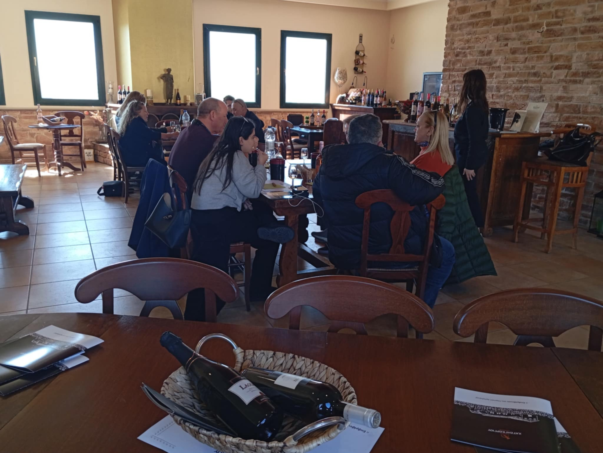 Οι εκπαιδευτές ξεναγήθηκαν στους χώρους του οινοποιείου και ακολούθησε οινογνωσία συνοδευόμενη από τοπικά εδέσματα.