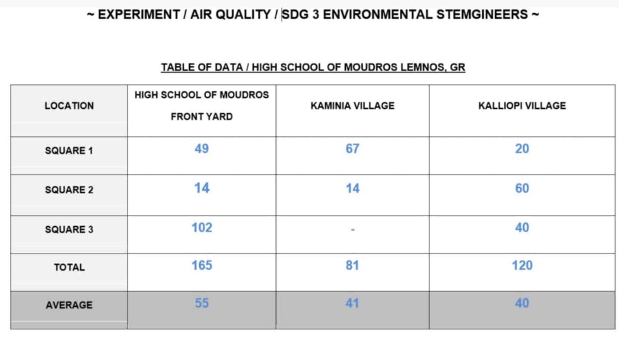 Τα δείγματα παρέμειναν εκτεθειμένα για πέντε ημέρες, προκειμένου να συγκεντρώσουν τα αιωρούμενα σωματίδια της ατμόσφαιρας. Στη συνέχεια, με τη χρήση μεγεθυντικού φακού, οι μαθητές μέτρησαν και κατέγραψαν τον αριθμό των σωματιδίων που είχαν προσκολληθεί στις επιφάνειες των χαρτιών.