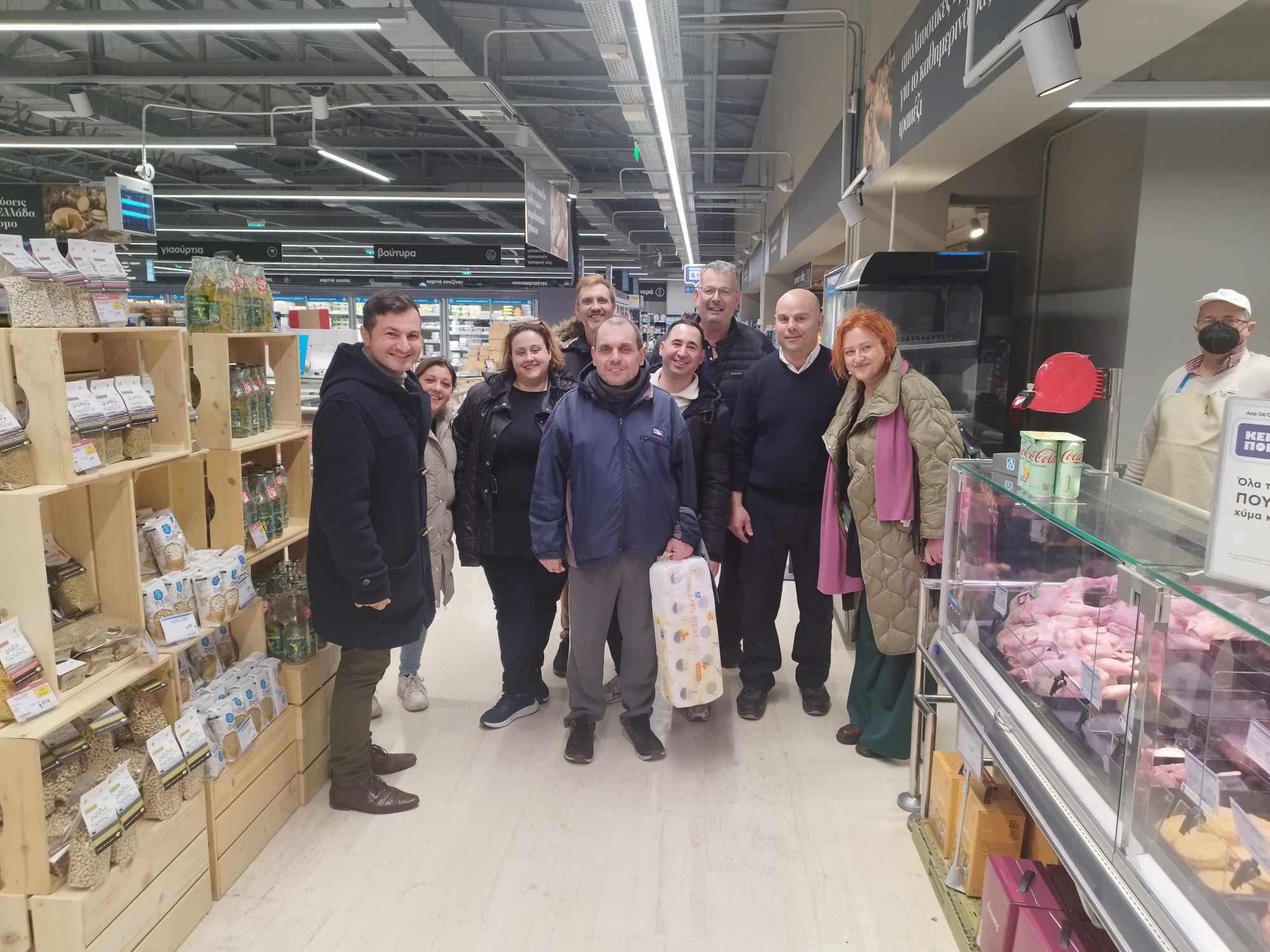 Οι καταρτιζόμενοι/ες μαζί με την εκπαιδεύτριά τους κα Όλγα Κουτσού ξεναγήθηκαν στο εσωτερικό των εγκαταστάσεων της γνωστής αλυσίδας σούπερ μάρκετ και ενημερώθηκαν για τη λειτουργία του μεγάλου καταστήματος, την καθημερινή διενέργεια τροφοδοσίας, ανεφοδιασμού των προϊόντων αλλά και ωρολόγιου προγράμματος του μεγάλου καταστήματος.