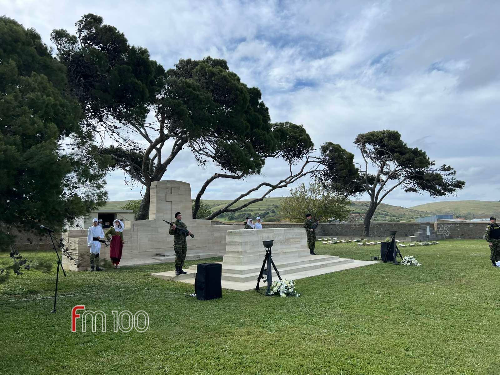 Οι εκδηλώσεις ξεκίνησαν στις 10:00 το πρωί στο Κοινοπολιτειακό Κοιμητήριο Μούδρου κάτω από αντίξοες καιρικές συνθήκες, με την επίσημη τελετή και την επιμνημόσυνη δέηση, ενώ ακολούθησε κατάθεση στεφάνων και ανάκρουση εθνικών ύμνων.