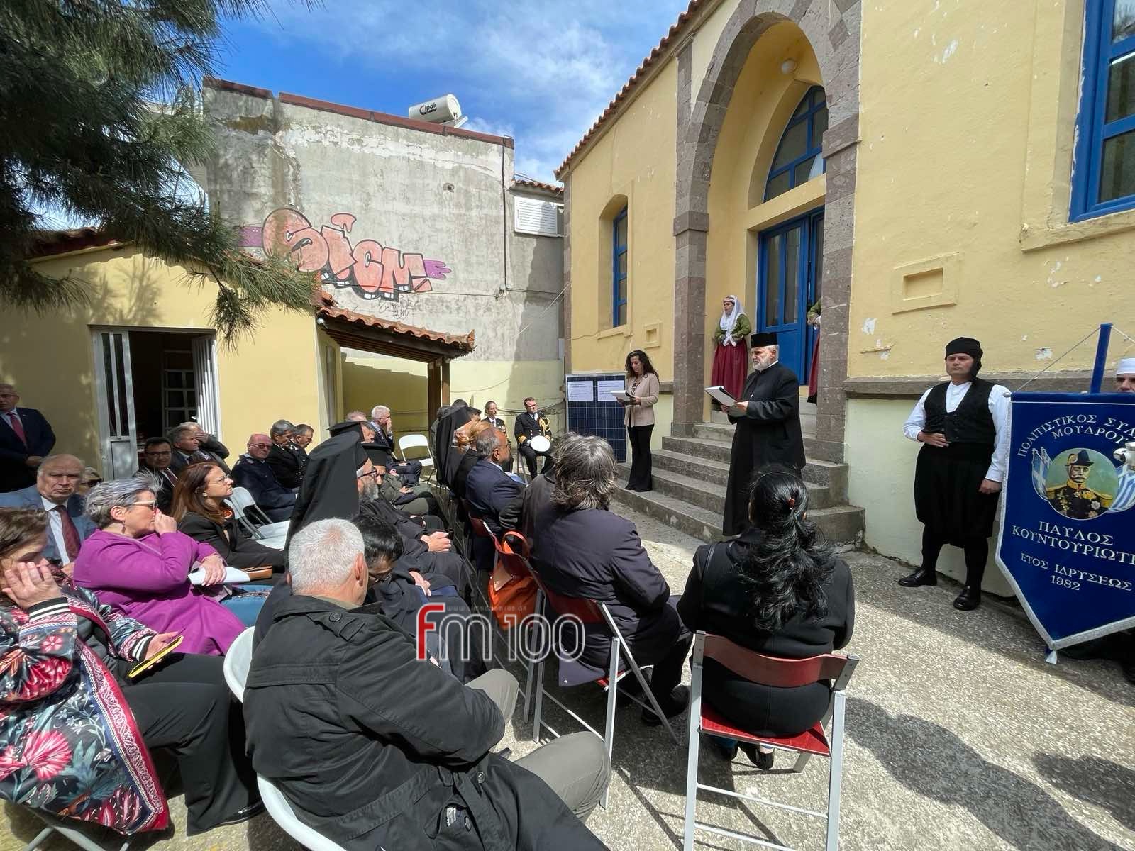 Λίγο αργότερα, εκφωνήθηκαν χαιρετισμοί από τους παριστάμενους επισήμους, ενώ στη συνέχεια οι παρευρισκόμενοι ξεναγήθηκαν στην έκθεση φωτογραφίας του Πολιτιστικού Συλλόγου Μούδρου «Παύλος Κουντουριώτης», την οποία παρουσίασε η Νίκη Φωτιάδη.