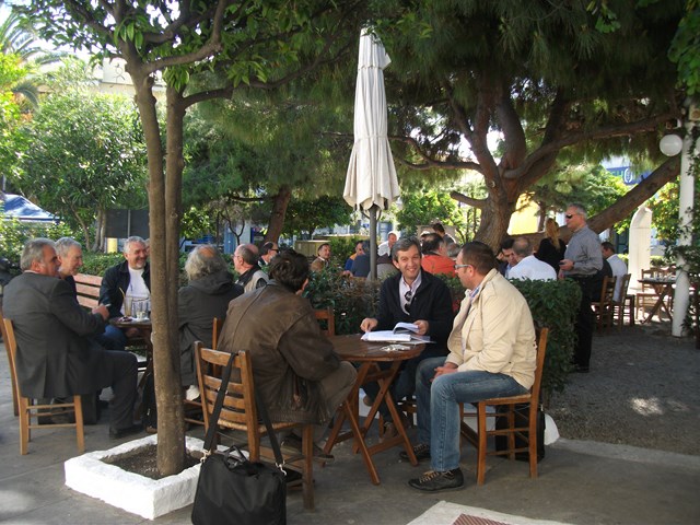 Εξαιτίας λοιπόν της σημερινής δημοπρασίας, βρέθηκαν στη Λήμνο πάνω από 40 εκπρόσωποι εργολαβικών γραφείων και σήμερα το πρωί, απόλαυσαν το καφεδάκι τους σε καφέ της αγοράς της Μύρινας, δημιουργώντας μια διαφορετική εικόνα στην συνηθισμένη καθημερινότητα της πόλης.