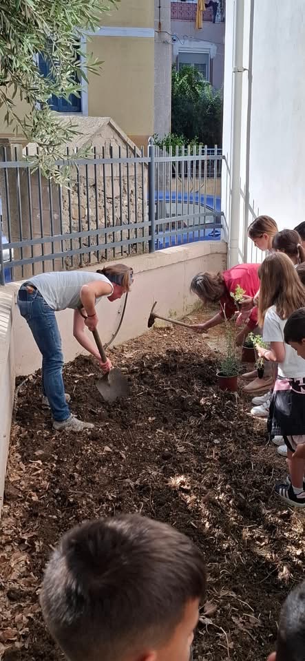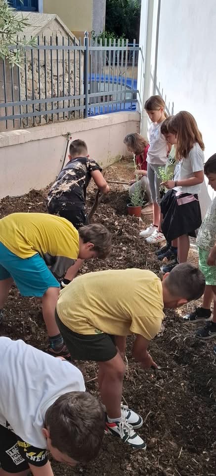 Οι μικροί μαθητές φύτεψαν αρωματικά βότανα όπως λεβάντα και ρίγανη στο βόρειο παρτέρι του σχολείου, αφού πρώτα προετοίμασαν το έδαφος και απομάκρυναν σκουπίδια. Μέσα από τη βιωματική αυτή διαδικασία, συζήτησαν για την κατάλληλη εποχή φύτευσης, τη χρήση και τις ιδιότητες των βοτάνων, αλλά και τις βασικές αρχές της καλλιέργειας και της συντήρησης των φυτών.