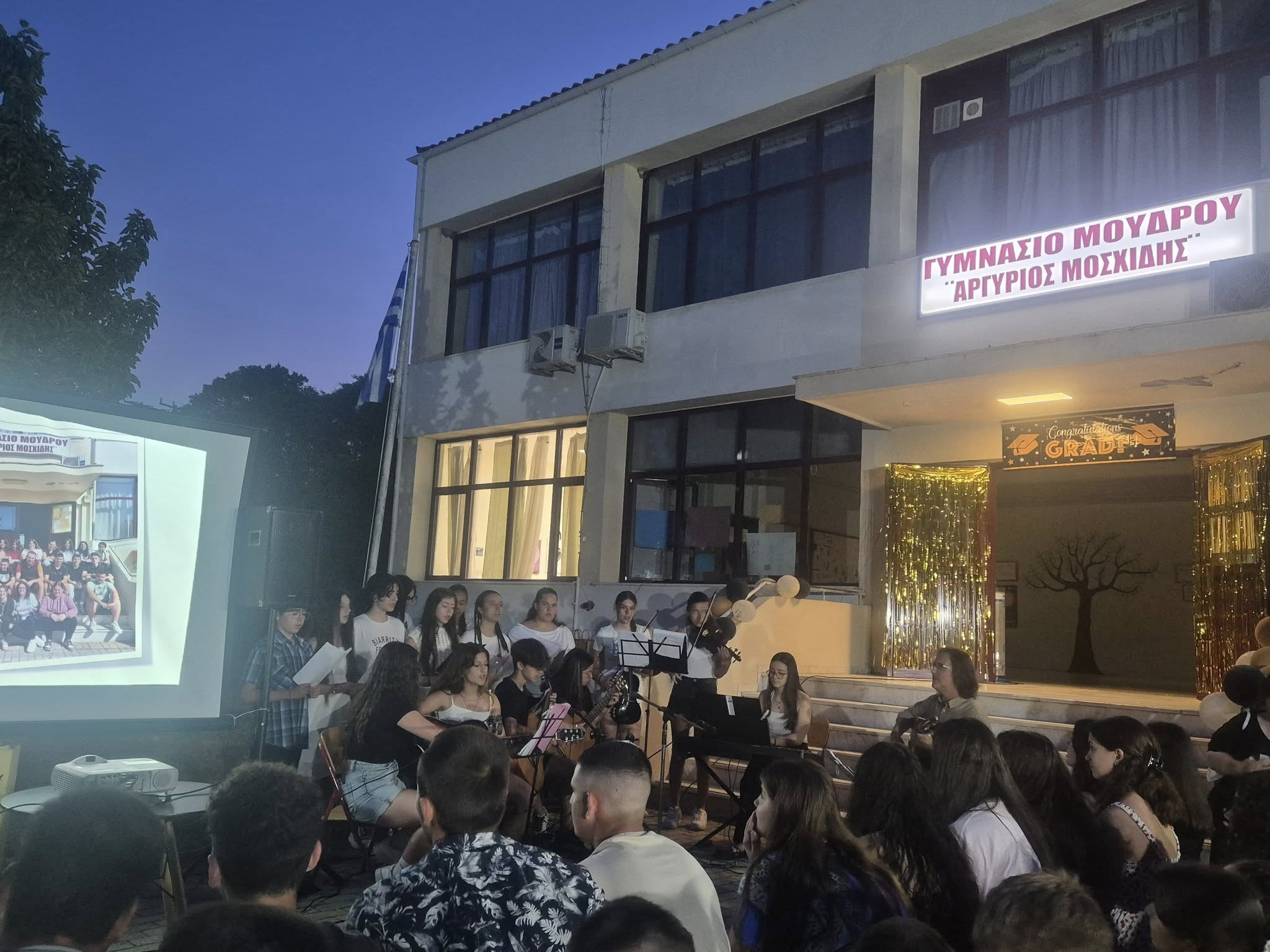 Ευχαριστούμε θερμά τον Δήμος Λήμνου-Municipality of Lemnos και προσωπικά τον Αντιδήμαρχο Μούδρου, κ. Αλέξανδρο Καφαλτή, τον πρόεδρο του χωριού κ. Αντώνη Ζουπαντή για τη συνολική υποστήριξη της βραδιάς, τον Πολιτιστικός Σύλλογος Μούδρου 'Παύλος Κουντουριώτης' και προσωπικά τον πρόεδρό του πατέρα Ιωάννη Πρόνιο για τη συμβολή του στην πραγματοποίηση της βραδιάς, τον πάντα δραστήριο και αρωγό σε όλα Σύλλογο Γονέων και Κηδεμόνων του σχολείου μας, όλους τους εκπαιδευτικούς, τα μέλη ΕΔΥ, τους γονείς και κηδεμόνες και όλους τους φίλους του σχολείου μας που κατέκλυσαν τον κήπο μας αυτή την όμορφη καλοκαιρινή βραδιά!