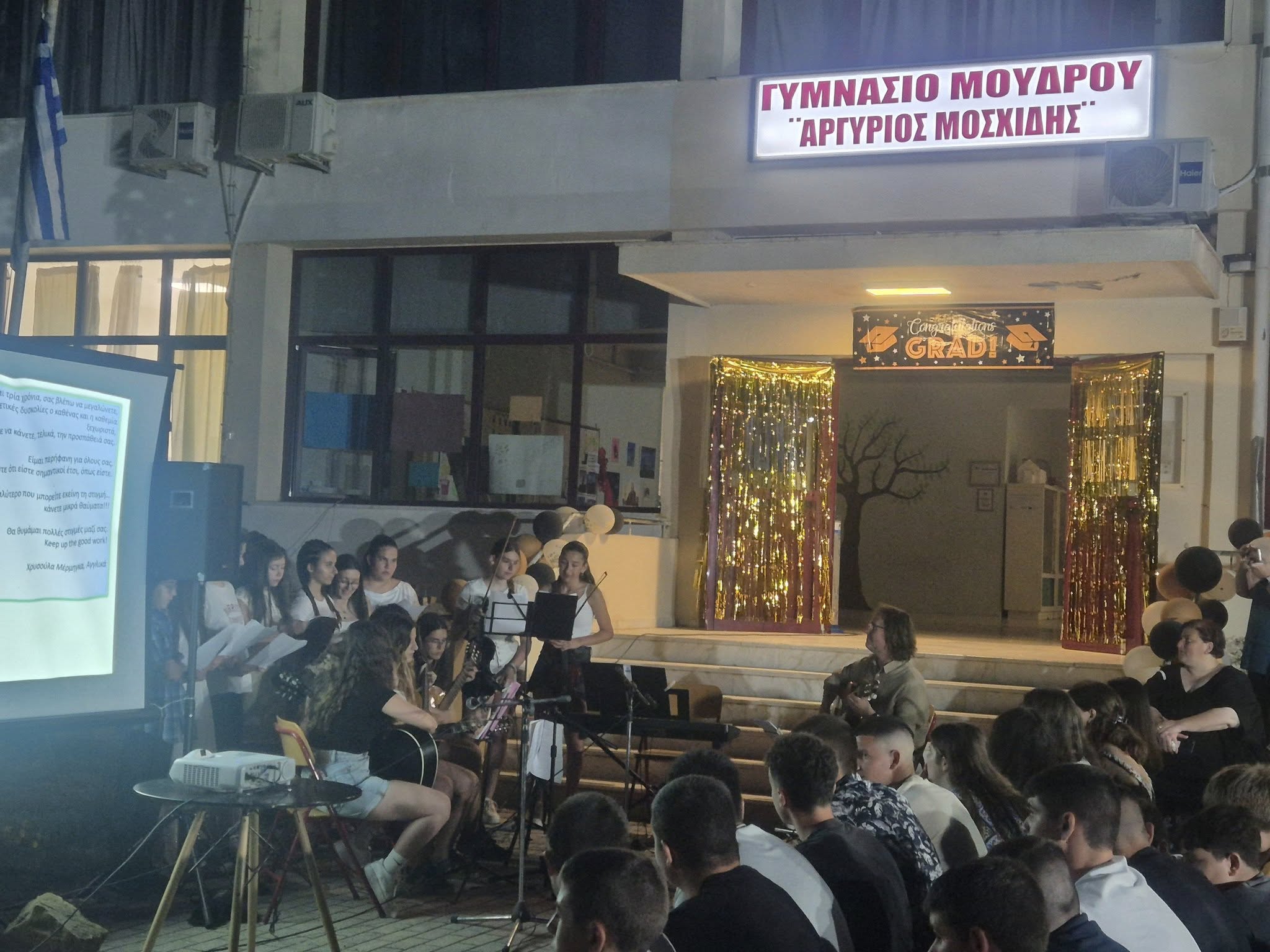 Ένα μεγάλο "ευχαριστώ" στη χορωδία του σχολείου και προσωπικά στον μουσικό μας κ. Γεώργιο Ρουσόπουλο για τη μουσική πλαισίωση της αποφοίτησης! Ευχόμαστε στα παιδιά καλή πορεία στο Λύκειο, με οδηγό τους την αγάπη σε ό,τι κάνουν και με πυξίδα το ενδιαφέρον για τον τόπο τους, που αξίζει να παραμείνει ζωντανός με νέους ανθρώπους και τα επόμενα χρόνια!