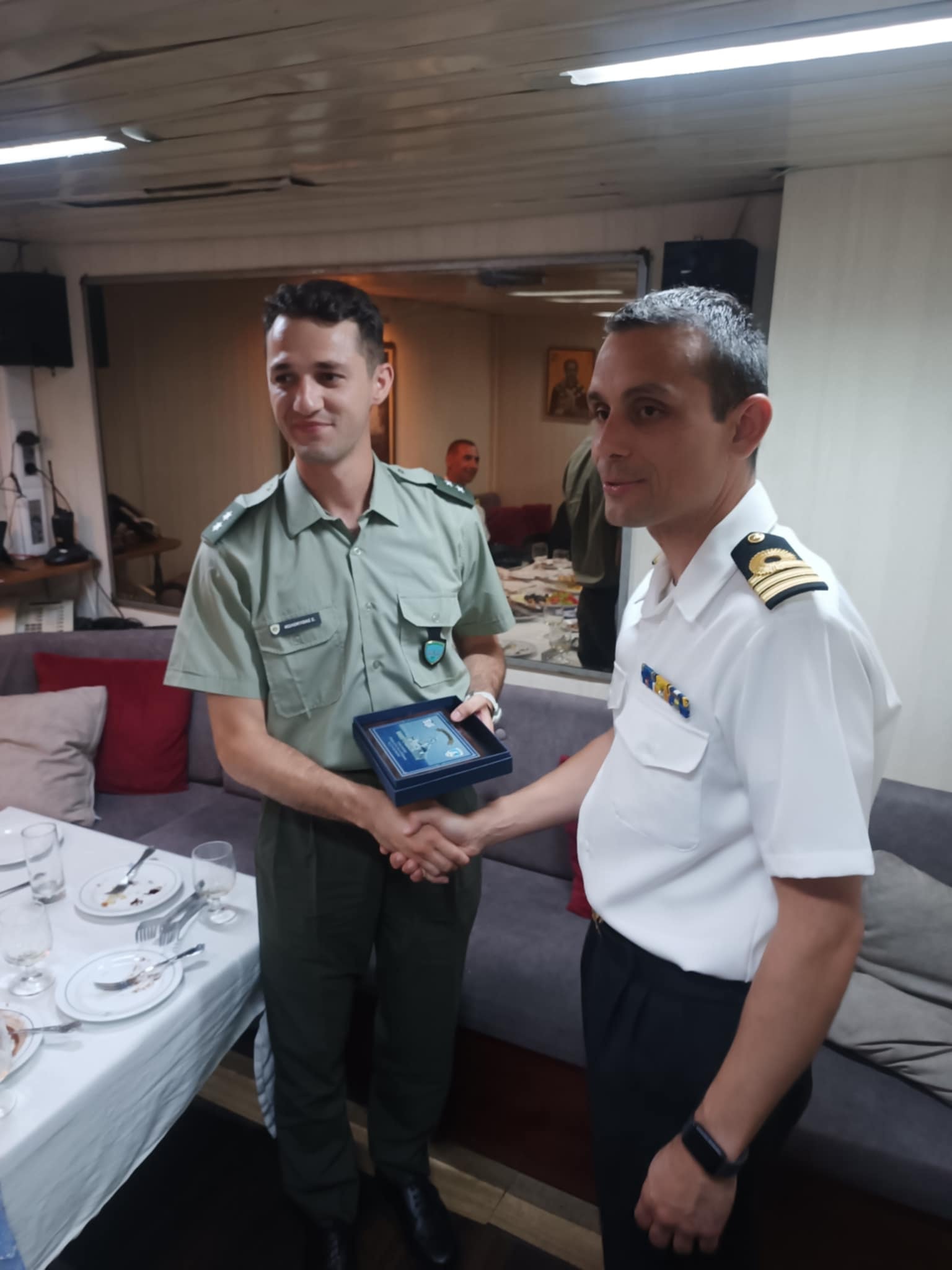 Την Τετάρτη 2 Ιουλίου, ο Δήμαρχος Αγίου Ευστρατίου, Κωνσταντίνος Σινάνης, είχε επίσημη συνάντηση στο γραφείο του με τον Πλωτάρχη, εκφράζοντας τις ευχαριστίες του τόσο προς τον ίδιο όσο και προς το πλήρωμα, για την παρουσία τους στο νησί σε σύντομο χρονικό διάστημα, μετά και την πρόσφατη συμμετοχή τους στις εκδηλώσεις Τιμής και Μνήμης για τον Ήρωα Σμηναγό Νικόλαο Σιαλμά, στις 18 Ιουνίου.