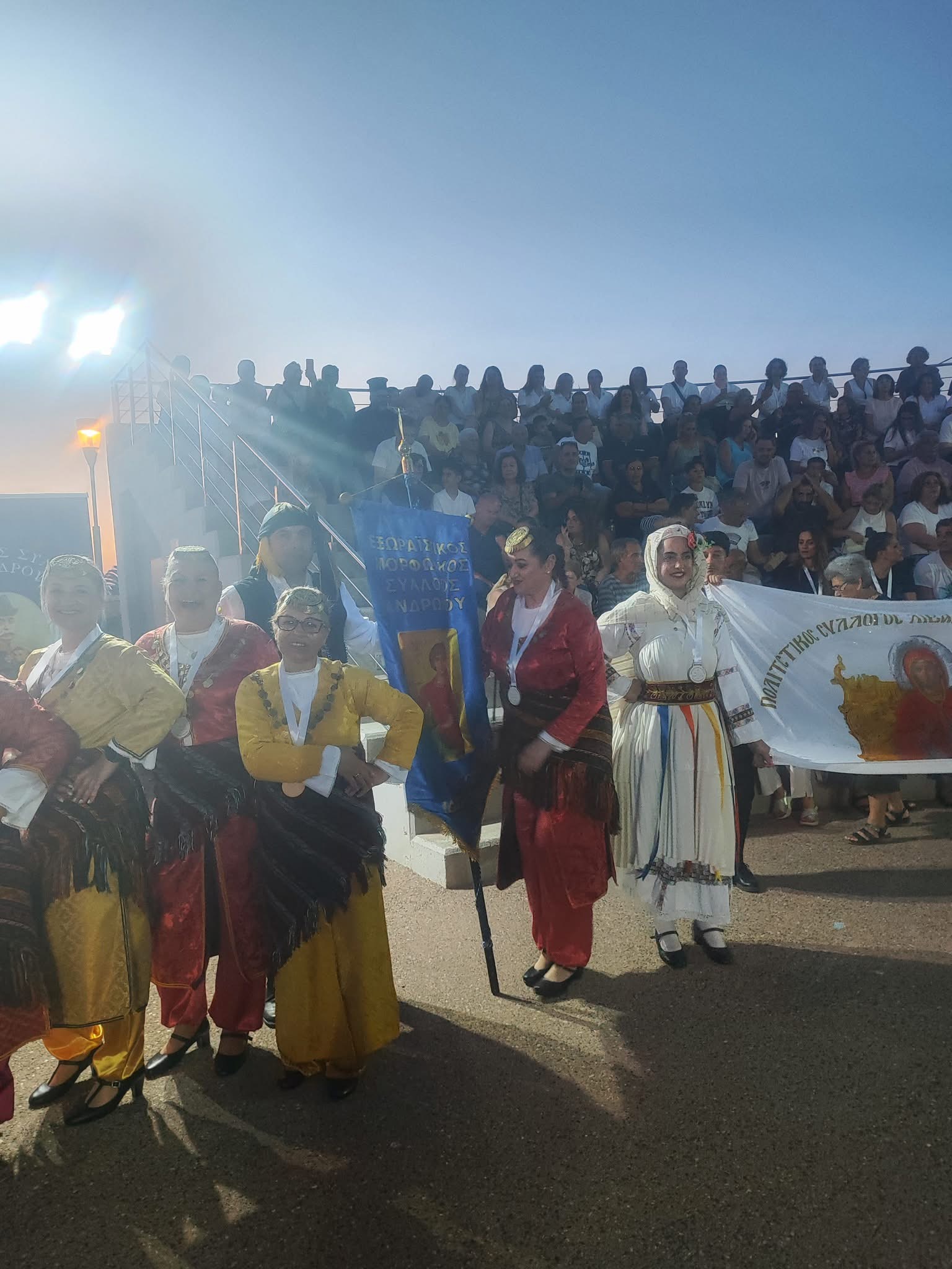 Σε ένα γεμάτο αμφιθέατρο, τα χορευτικά σχήματα παρουσίασαν ένα πολύχρωμο και κεφάτο πρόγραμμα, γεμάτο χορό, ζωντάνια και σεβασμό στην ελληνική παράδοση, κερδίζοντας το θερμό χειροκρότημα του κοινού και αφήνοντας υποσχέσεις για τη σημερινή βραδιά!