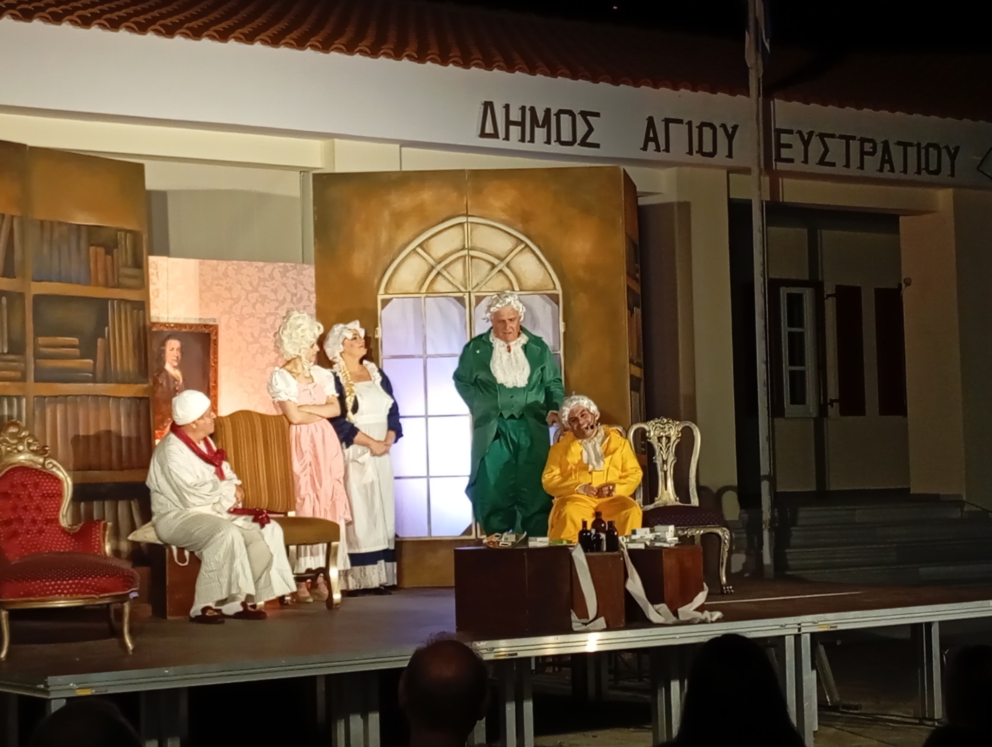 Η κλασική κωμωδία του Μολιέρου, σε σκηνοθεσία Κώστα Κιμούλη και θεατρική διασκευή της Τάνιας Χαροκόπου και του Φώτη Σπύρου, χάρισε άφθονο γέλιο στους κατοίκους και επισκέπτες του νησιού.