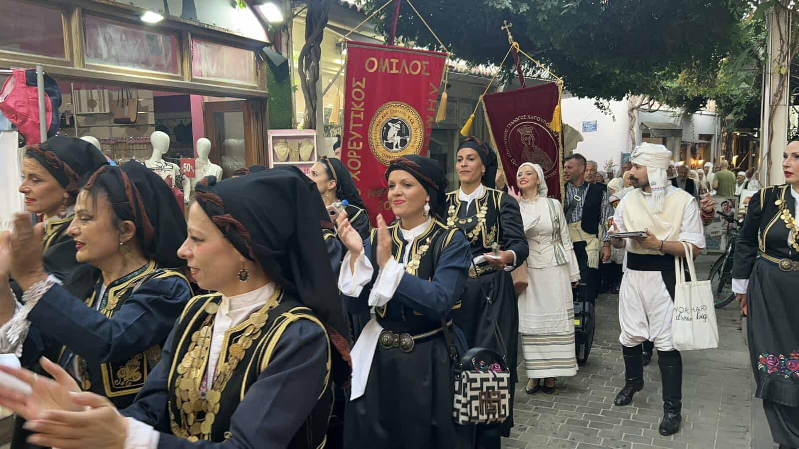 Η καθιερωμένη πλέον «παρέλαση» των χορευτικών τμημάτων από το λιμάνι προς το Γυμνάσιο , εξελίχθηκε όπως κάθε χρόνο, σε γλέντι με στάσεις σε κεντρικά σημεία της πόλης ,όπου χορευτές και περαστικοί ενώθηκαν στον κύκλο του χορού.