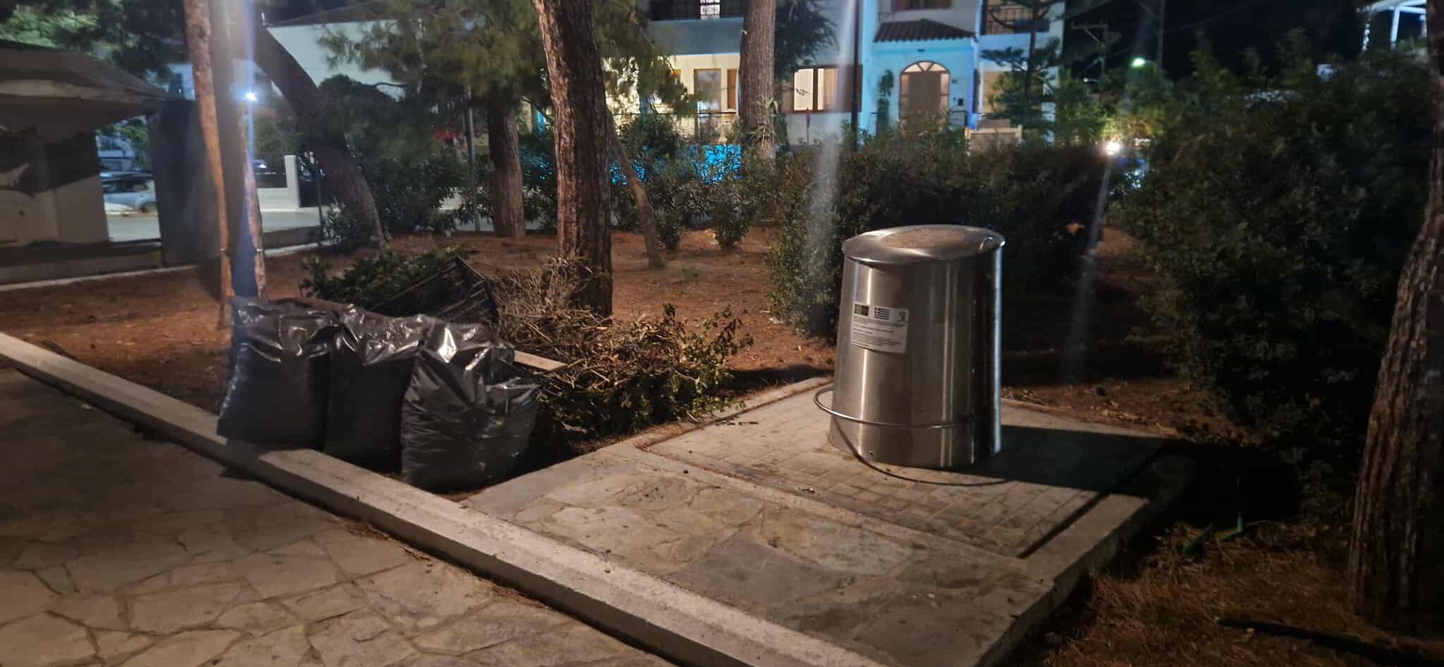 Στη δεύτερη, λίγες ημέρες αργότερα, σακούλες σκουπιδιών γεμάτες με κλαδιά δίπλα στους κάδους! Το σχόλιο του αναγνώστη μας «πάλι καλά που δεν έβαλαν φωτιά να τα κάψουν!»