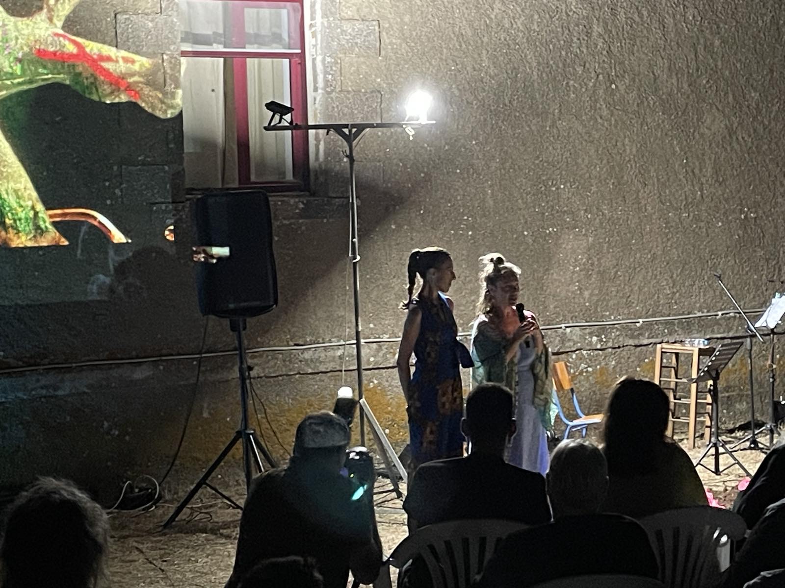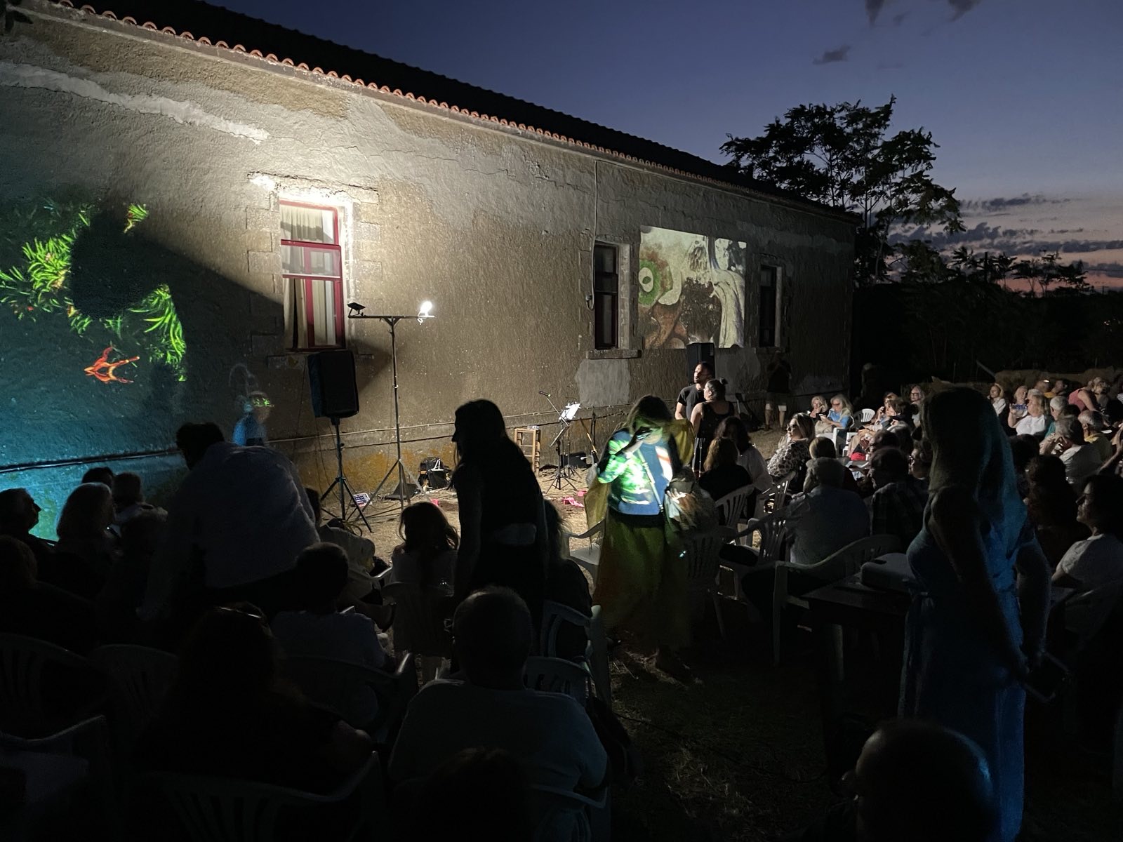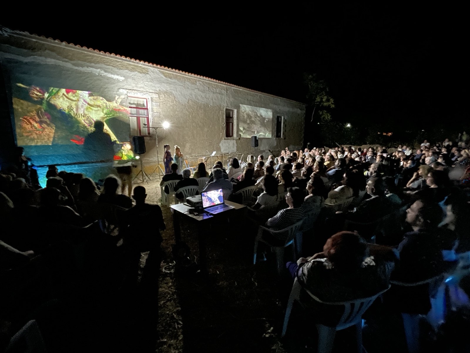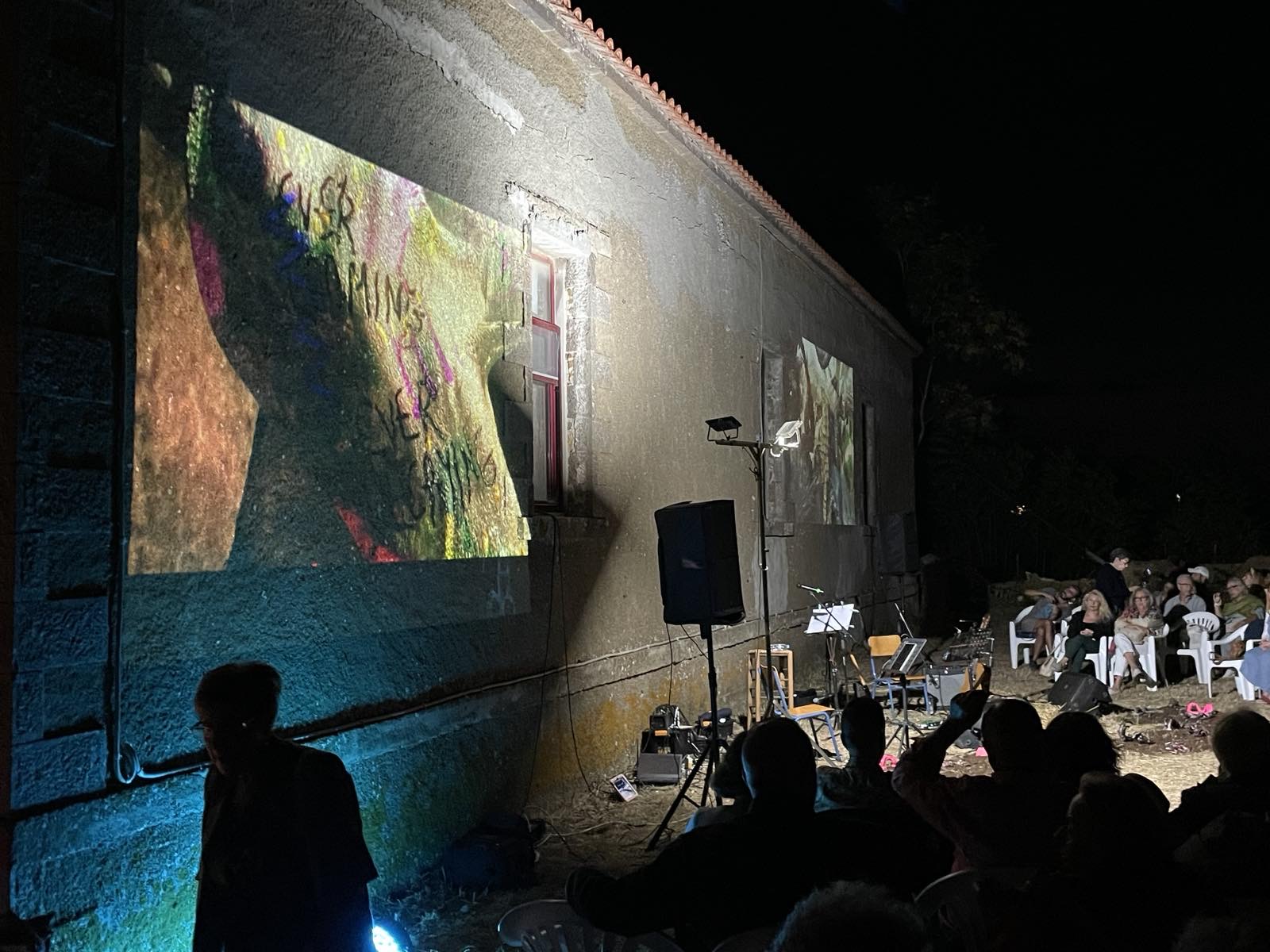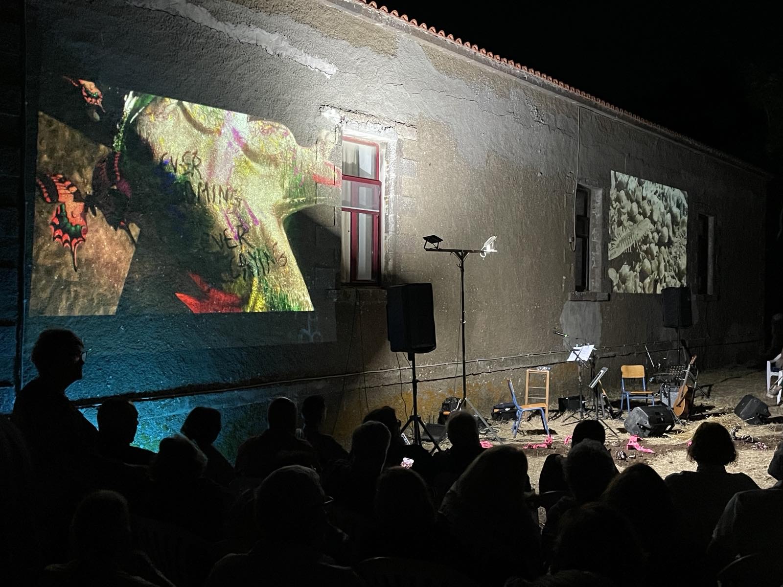 Τα «απόκοσμα» γλυπτά και οι προβολές της Παπαμαργαρίτη περιέβαλαν τη μουσική αυτή συνάντηση, μεταμορφώνοντας τον τόπο, τον μεσοπολεμικό κήπο του σχολείου, σε τόπο μυσταγωγίας!