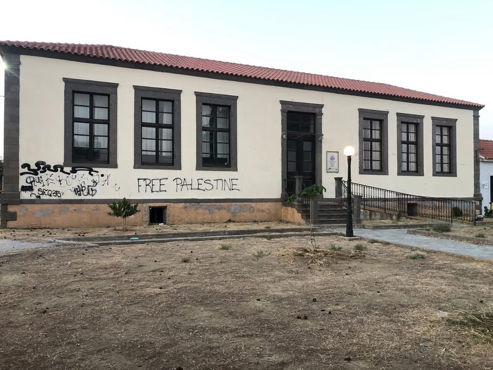 Στους τοίχους του κτιρίου είναι εμφανή συνθήματα στις φωτογραφίες που βλέπετε, μεταξύ των οποίων το «Free Palestine» καθώς και άλλα γκράφιτι που αλλοιώνουν την όψη του ιστορικού κτιρίου.