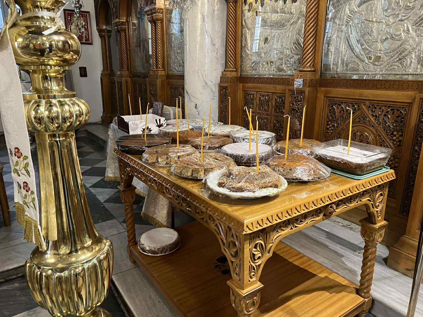 Ο ναός πλημμύρισε από φανουρόπιτες, τις παραδοσιακές νηστίσιμες πίτες που προσφέρονται προς τιμήν του Αγίου, τηρώντας ένα έθιμο βαθιά ριζωμένο στη λαϊκή θρησκευτικότητα. Σύμφωνα με την παράδοση, οι φανουρόπιτες παρασκευάζονται από πιστούς που ζητούν από τον Άγιο να "φανερώσει" κάτι — είτε πρόκειται για ένα χαμένο αντικείμενο, μια λύση σε ένα πρόβλημα ή ακόμη και μια εσωτερική καθοδήγηση.