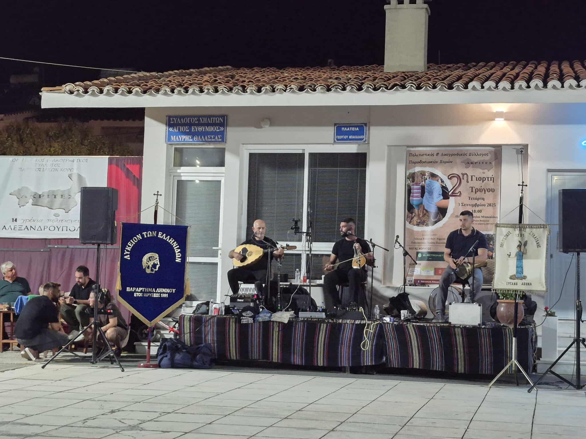 Την Τετάρτη 3/9 , αφού προηγήθηκε επίσκεψη-γνωριμία στην έδρα του Συλλόγου, όπου το ΛτΕ ξεναγήθηκε στην ιματιοθήκη του, οι έφηβοί μας "άνοιξαν" το χορευτικό κομμάτι της εκδήλωσης, παρουσιάζοντας τους χορούς της Λήμνου. Στην εκδήλωση συμμετείχε και ο Πολιτιστικός Όμιλος Ξυλαγανής, παρουσιάζοντας χορούς της Ανατολικής Ρωμυλίας, ενώ ακολούθησε παραδοσιακό θρακιώτικο γλέντι με την ορχήστρα "Εβρίτικη Ζυγιά".