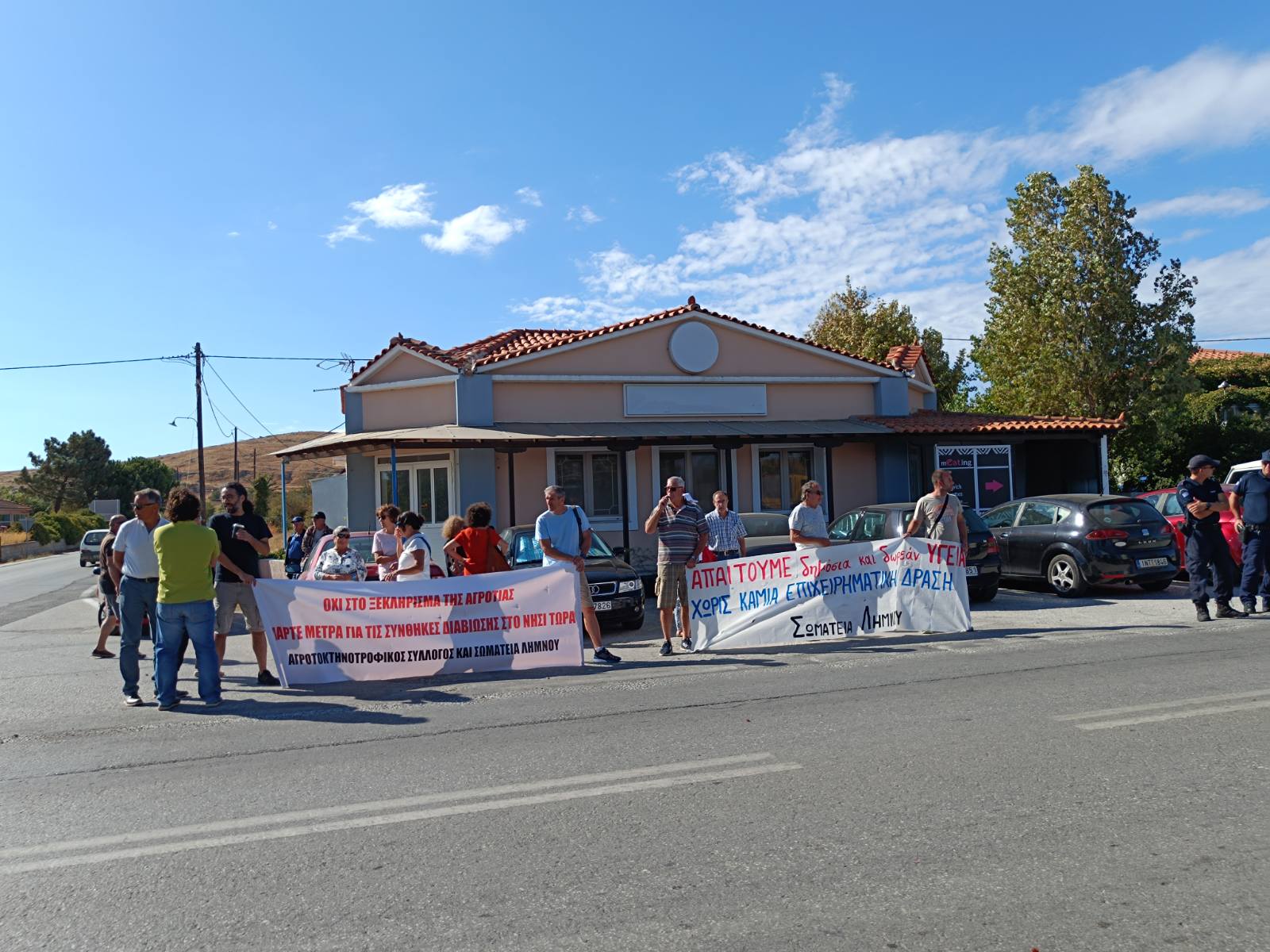 Με μαζική συγκέντρωση διαμαρτυρίας στον κόμβο του Λιβαδοχωρίου, υποδέχθηκαν αγωνιστικά οι αγρότες και οι κτηνοτρόφοι με τα τρακτέρ τους, εργαζόμενοι και κάτοικοι του νησιού, τον πρωθυπουργό κ. Μητσοτάκη που επισκέφθηκε την Πέμπτη 18/9 τη Λήμνο.