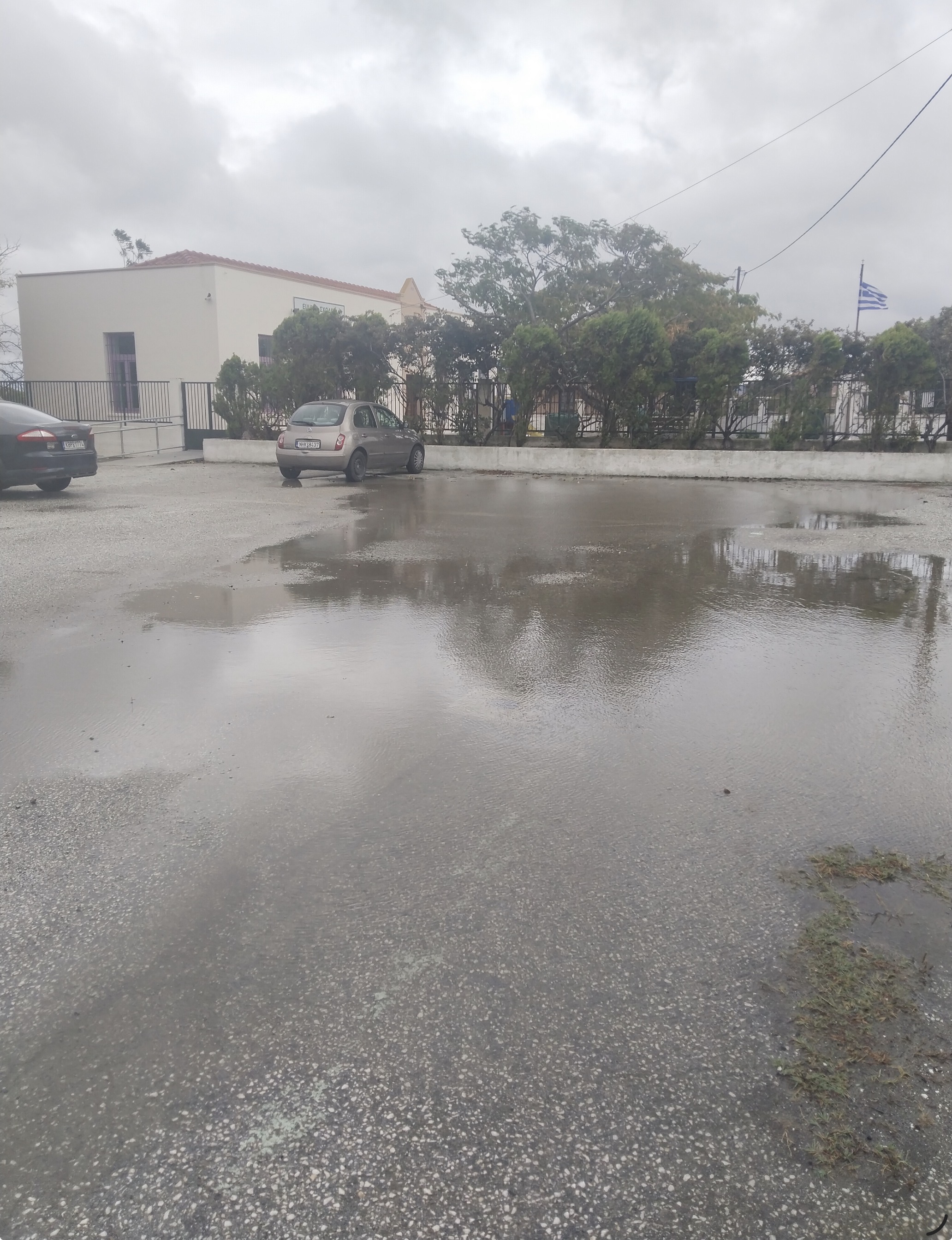 «Καλημέρα σας, στο ίδιο έργο θεατές. Με την πρώτη βροχή πλημμύρισε ο χώρος προσέλευσης και αποχώρησης μαθητών και διδασκάλων. Συνεπέστατοι οι υπεύθυνοι. Θυμάστε και πέρυσι σας είχαμε αποστείλει τα ίδια χάλια. Ας ελπίσουμε η φετινή χρονιά να μην είναι πολύ βροχερή, αλλιώς θα χρειαστούμε και βάρκες»!