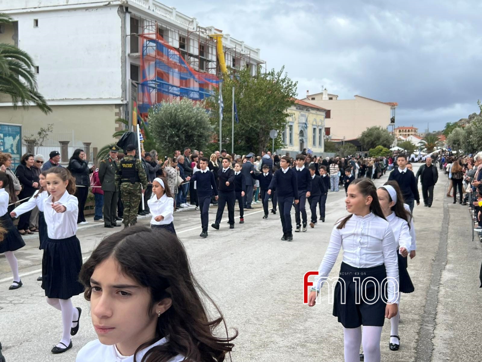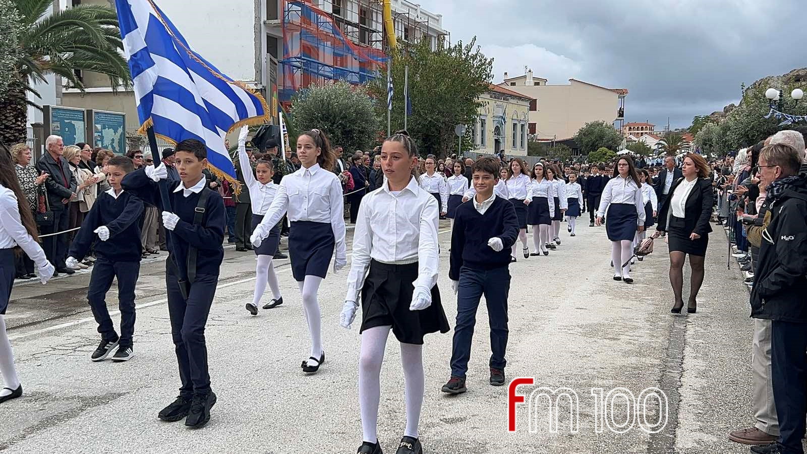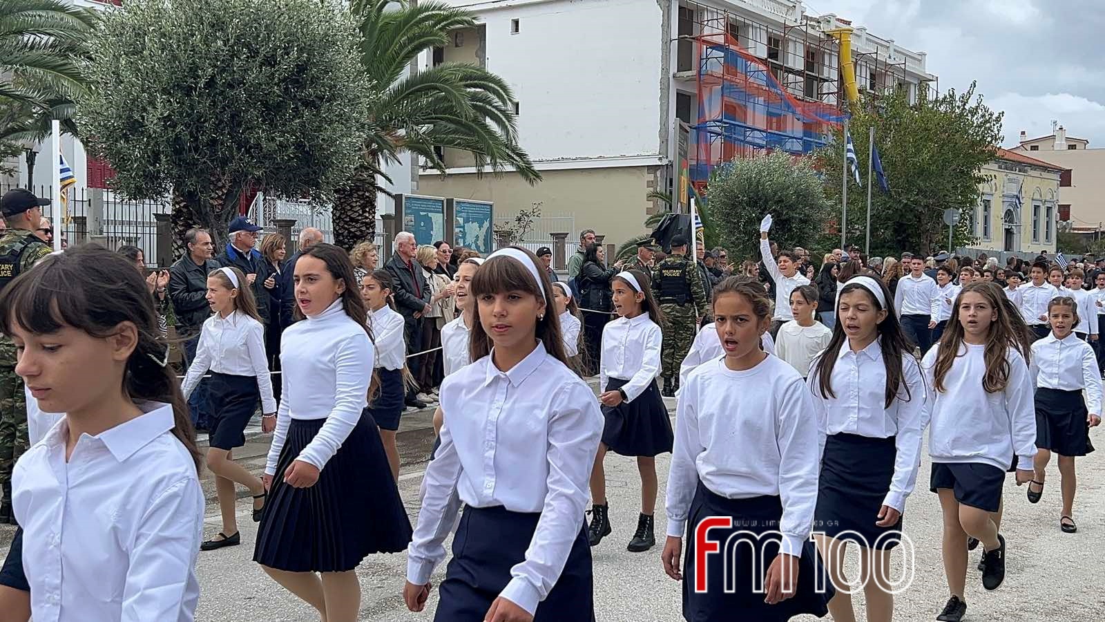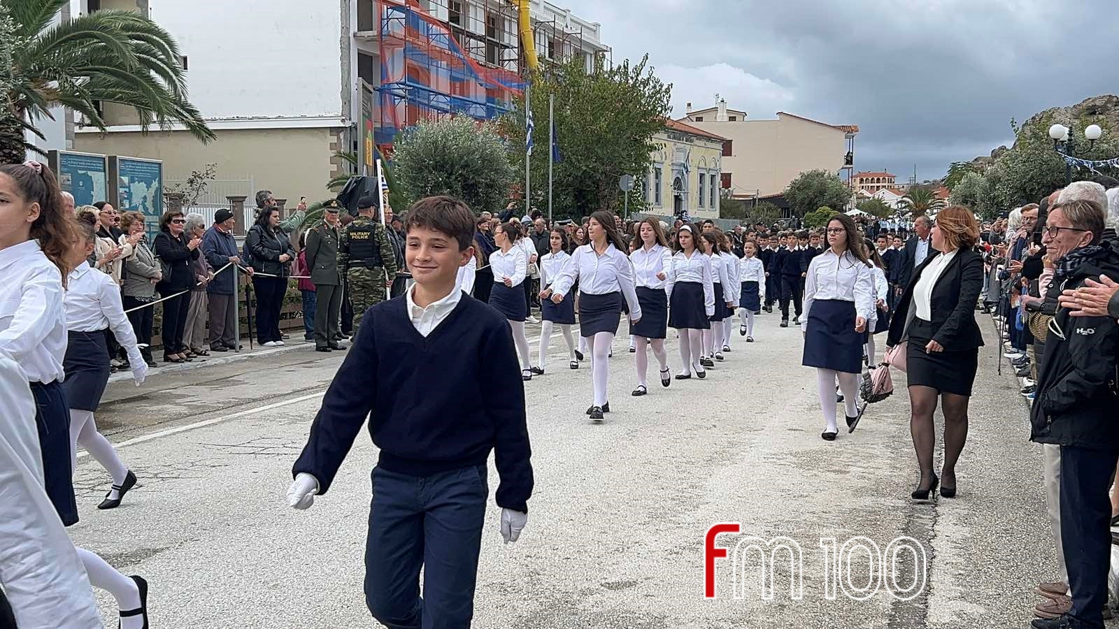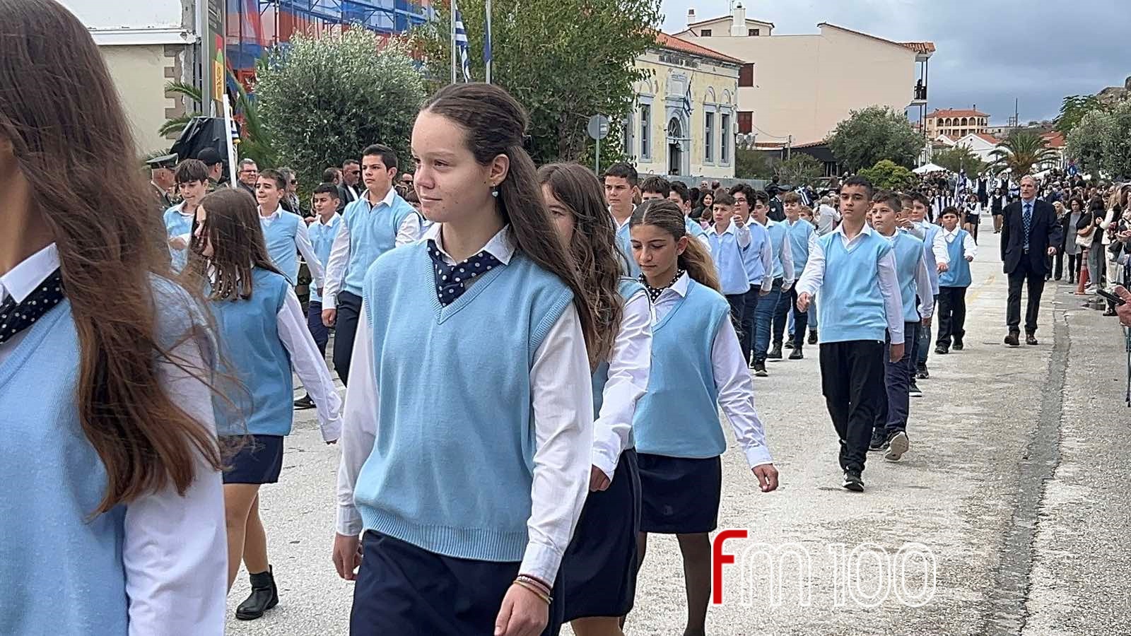 Ακολούθησε η μαθητική παρέλαση στο Ρωμαίικο Γιαλό την οποία παρακολούθησαν ο Πρόεδρος της Δημοκρατίας και οι επίσημοι προσκεκλημένοι. Στην παρέλαση συμμετείχαν μαθητές και μαθήτριες από τα σχολεία της πόλης, καθώς και πολιτιστικοί και αθλητικοί σύλλογοι του νησιού, προσφέροντας ένα ξεχωριστό θέαμα με παραδοσιακές φορεσιές και έντονο παλμό.