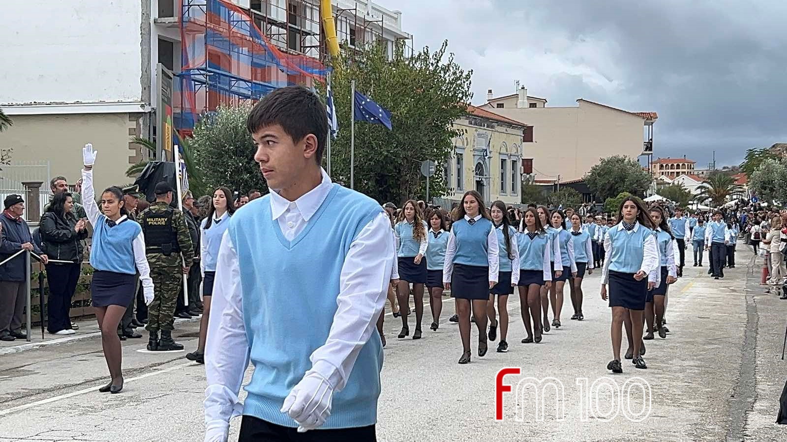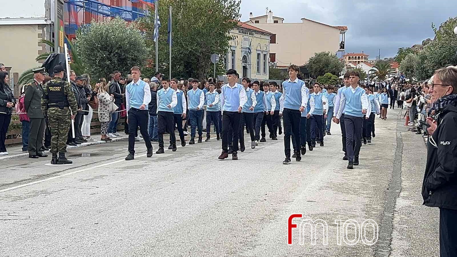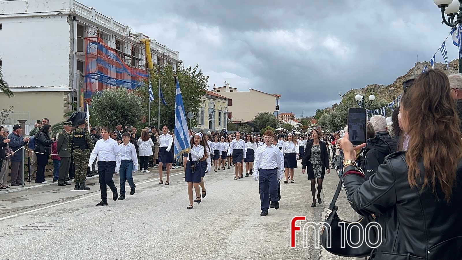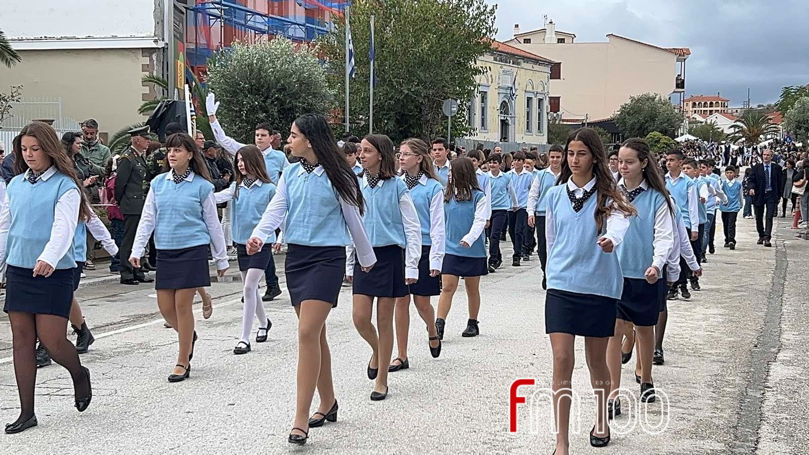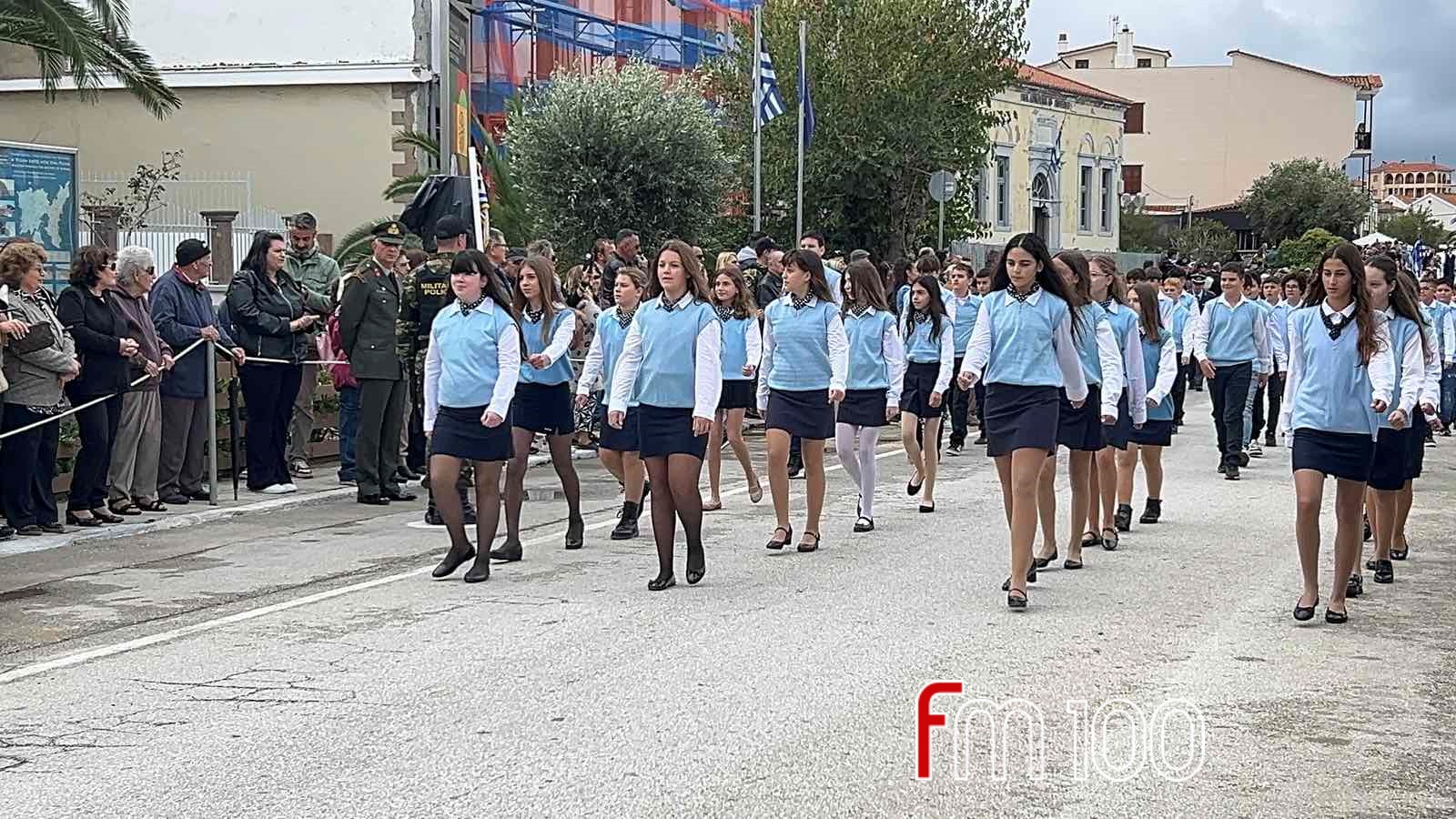 Ακολούθησε η μαθητική παρέλαση στο Ρωμαίικο Γιαλό την οποία παρακολούθησαν ο Πρόεδρος της Δημοκρατίας και οι επίσημοι προσκεκλημένοι. Στην παρέλαση συμμετείχαν μαθητές και μαθήτριες από τα σχολεία της πόλης, καθώς και πολιτιστικοί και αθλητικοί σύλλογοι του νησιού, προσφέροντας ένα ξεχωριστό θέαμα με παραδοσιακές φορεσιές και έντονο παλμό.