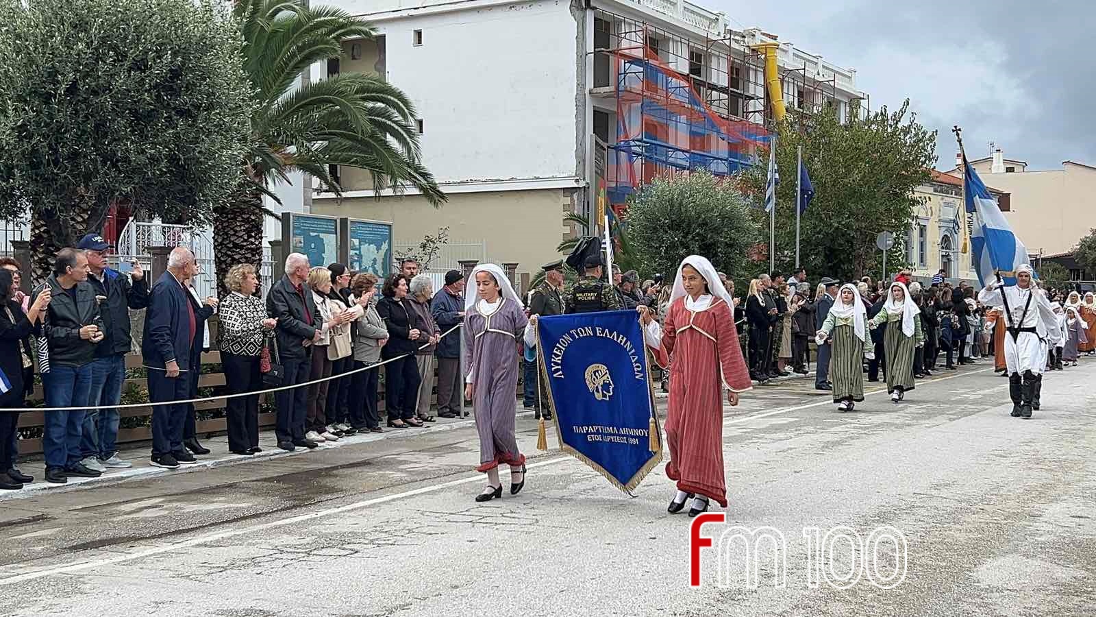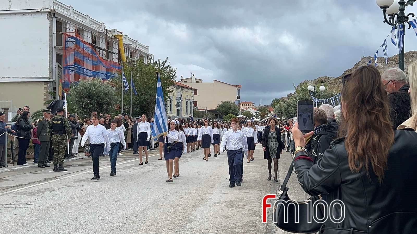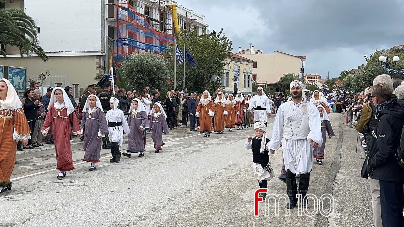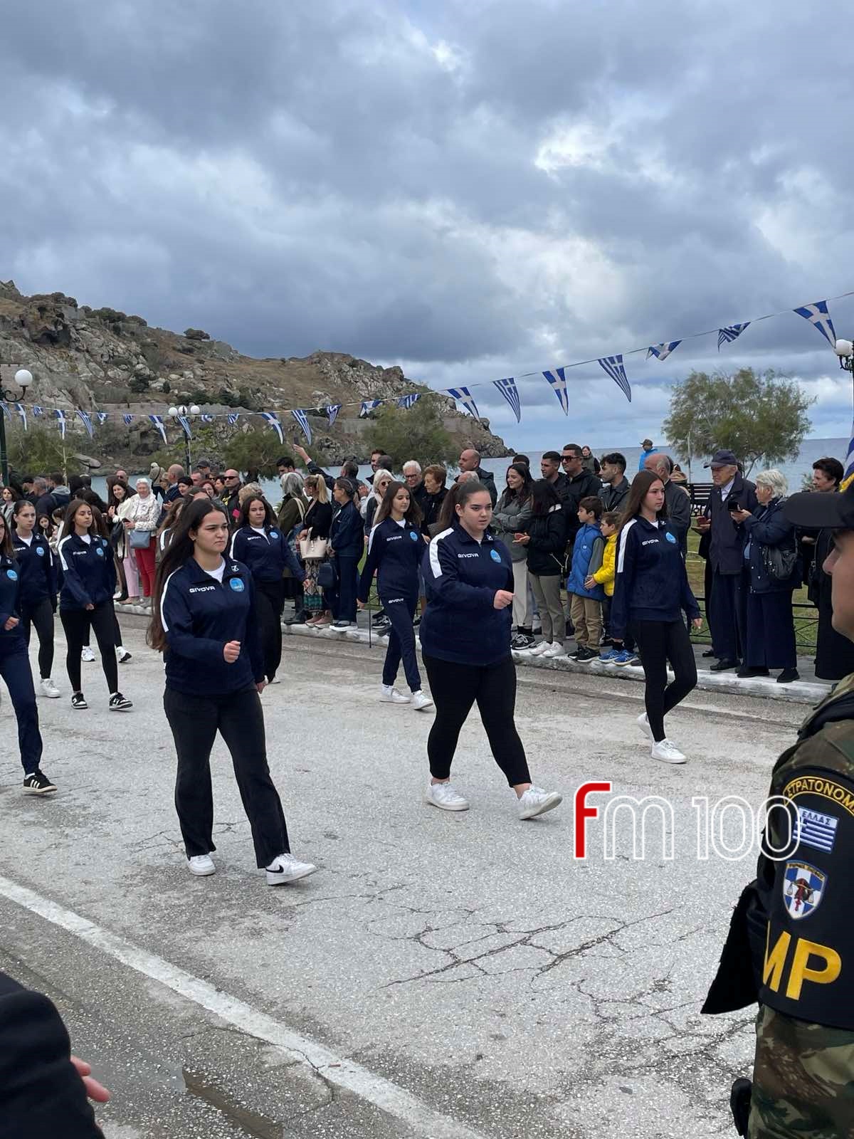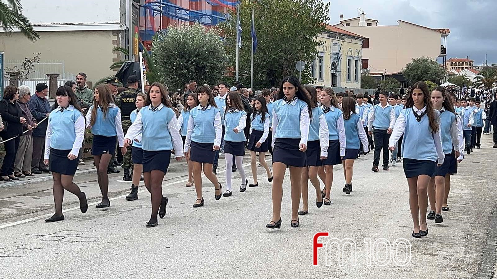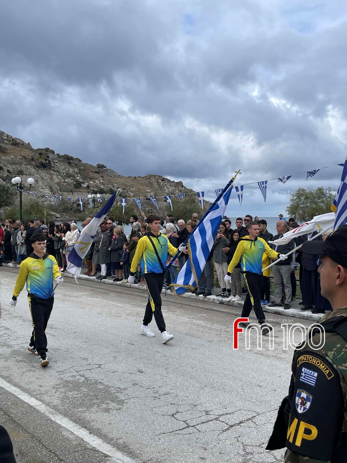 Ακολούθησε η μαθητική παρέλαση στο Ρωμαίικο Γιαλό την οποία παρακολούθησαν ο Πρόεδρος της Δημοκρατίας και οι επίσημοι προσκεκλημένοι. Στην παρέλαση συμμετείχαν μαθητές και μαθήτριες από τα σχολεία της πόλης, καθώς και πολιτιστικοί και αθλητικοί σύλλογοι του νησιού, προσφέροντας ένα ξεχωριστό θέαμα με παραδοσιακές φορεσιές και έντονο παλμό.
