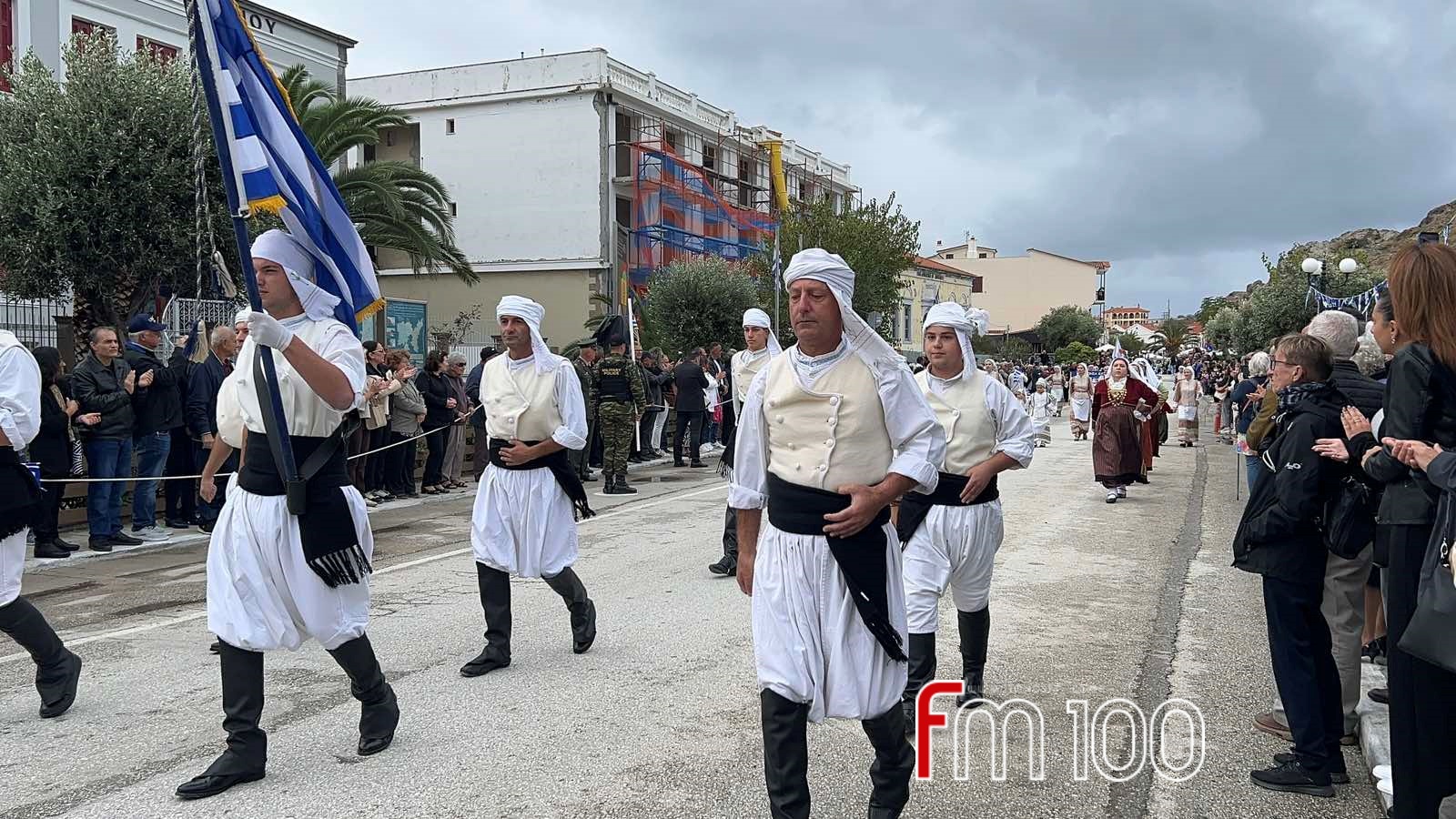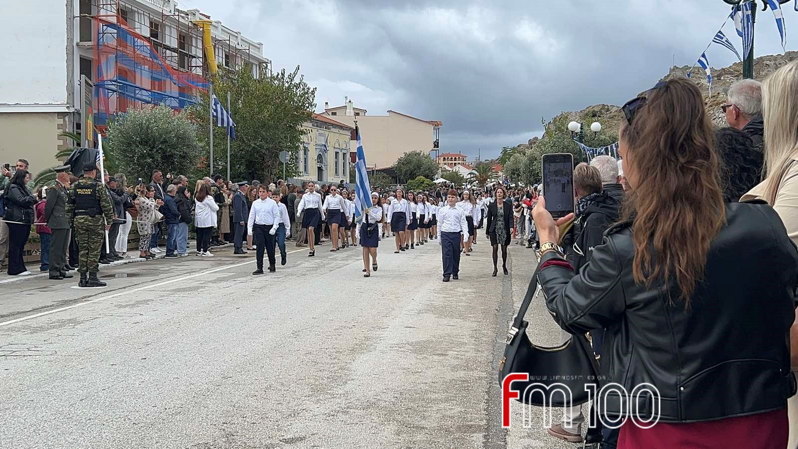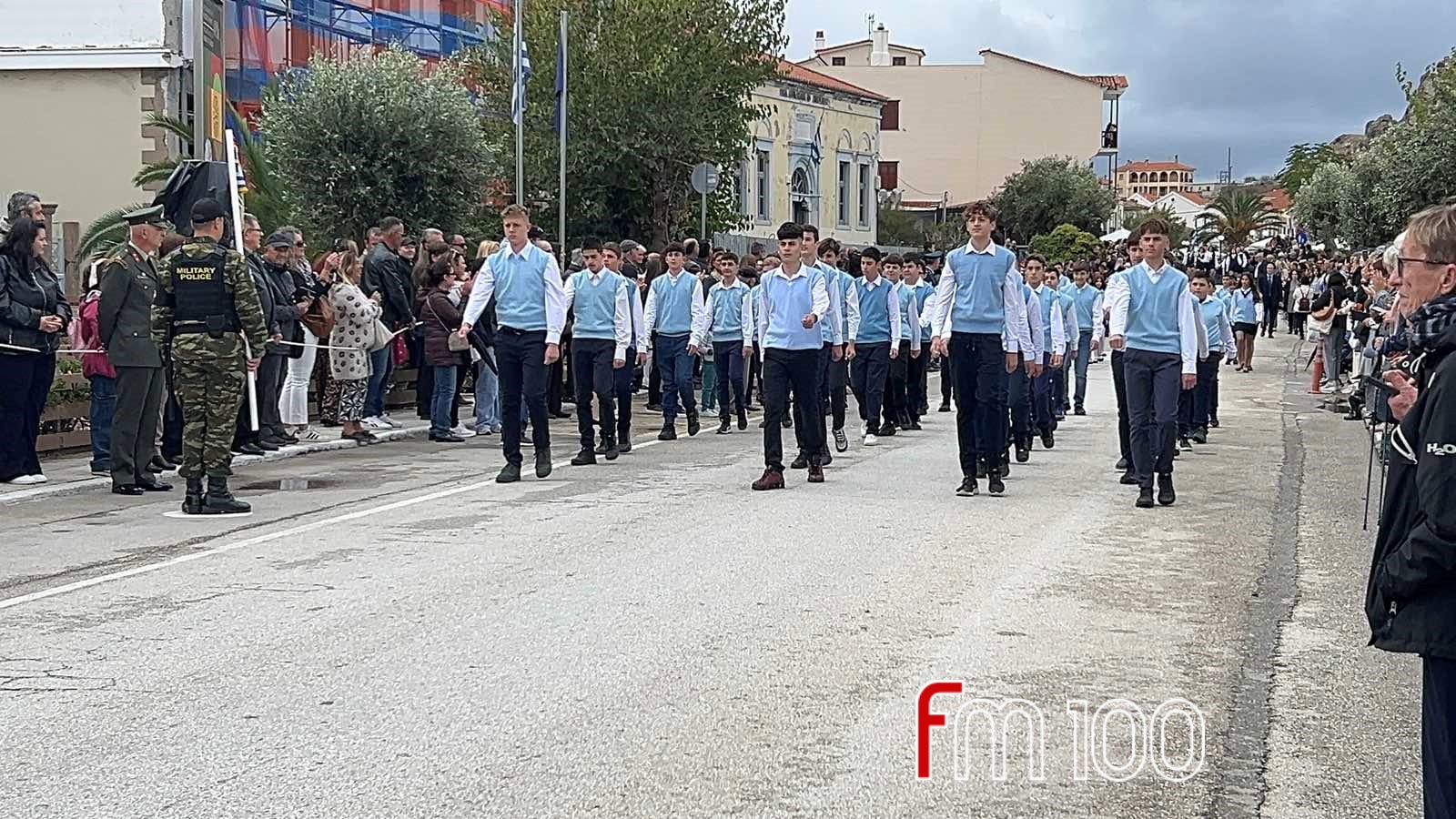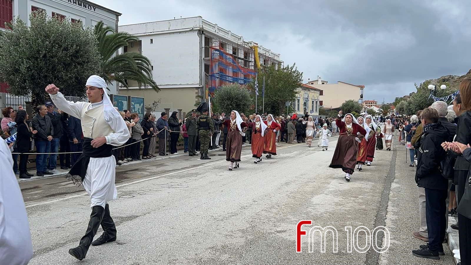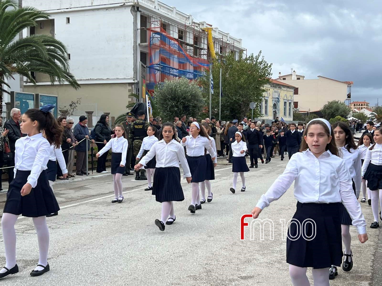 Ακολούθησε η μαθητική παρέλαση στο Ρωμαίικο Γιαλό την οποία παρακολούθησαν ο Πρόεδρος της Δημοκρατίας και οι επίσημοι προσκεκλημένοι. Στην παρέλαση συμμετείχαν μαθητές και μαθήτριες από τα σχολεία της πόλης, καθώς και πολιτιστικοί και αθλητικοί σύλλογοι του νησιού, προσφέροντας ένα ξεχωριστό θέαμα με παραδοσιακές φορεσιές και έντονο παλμό.