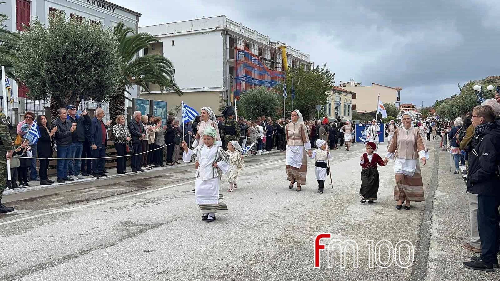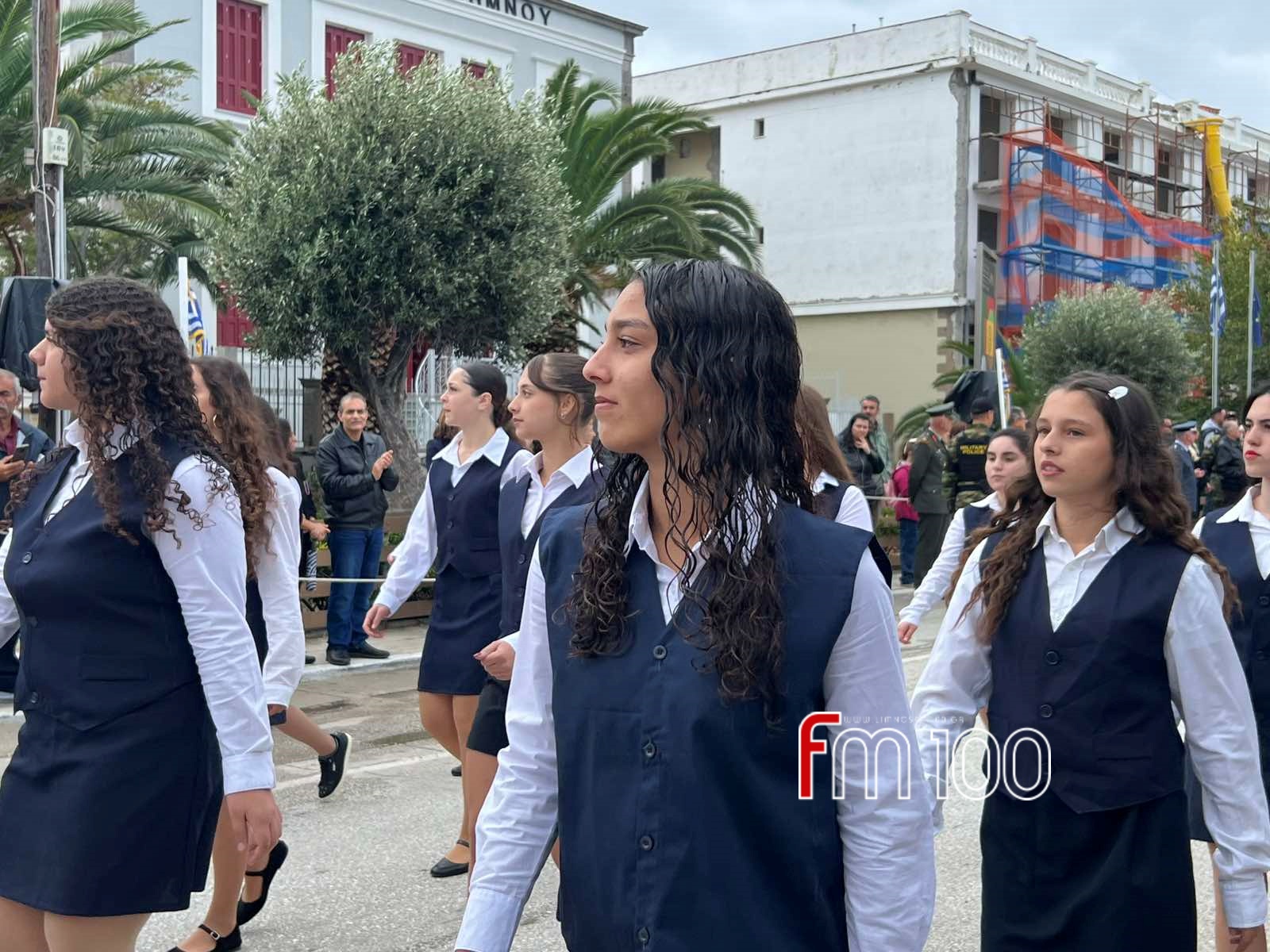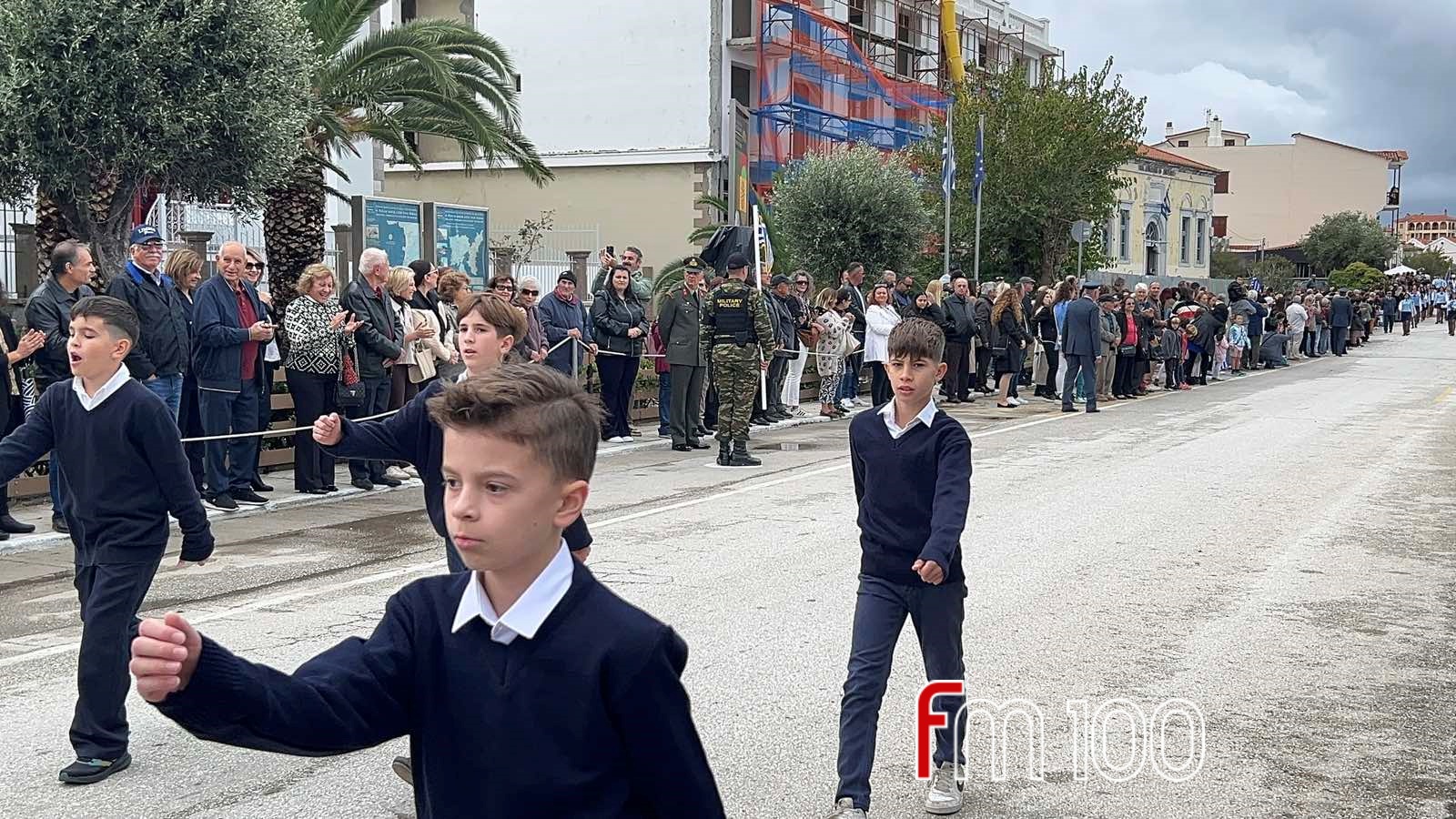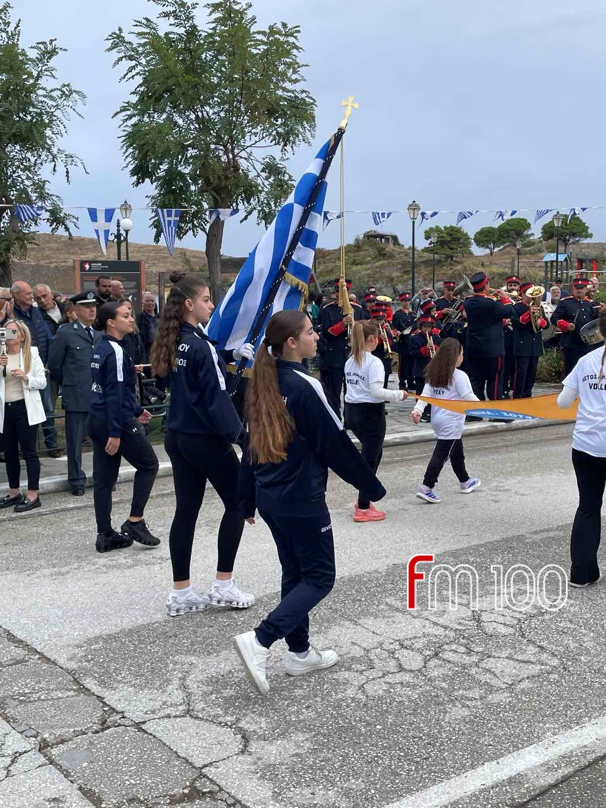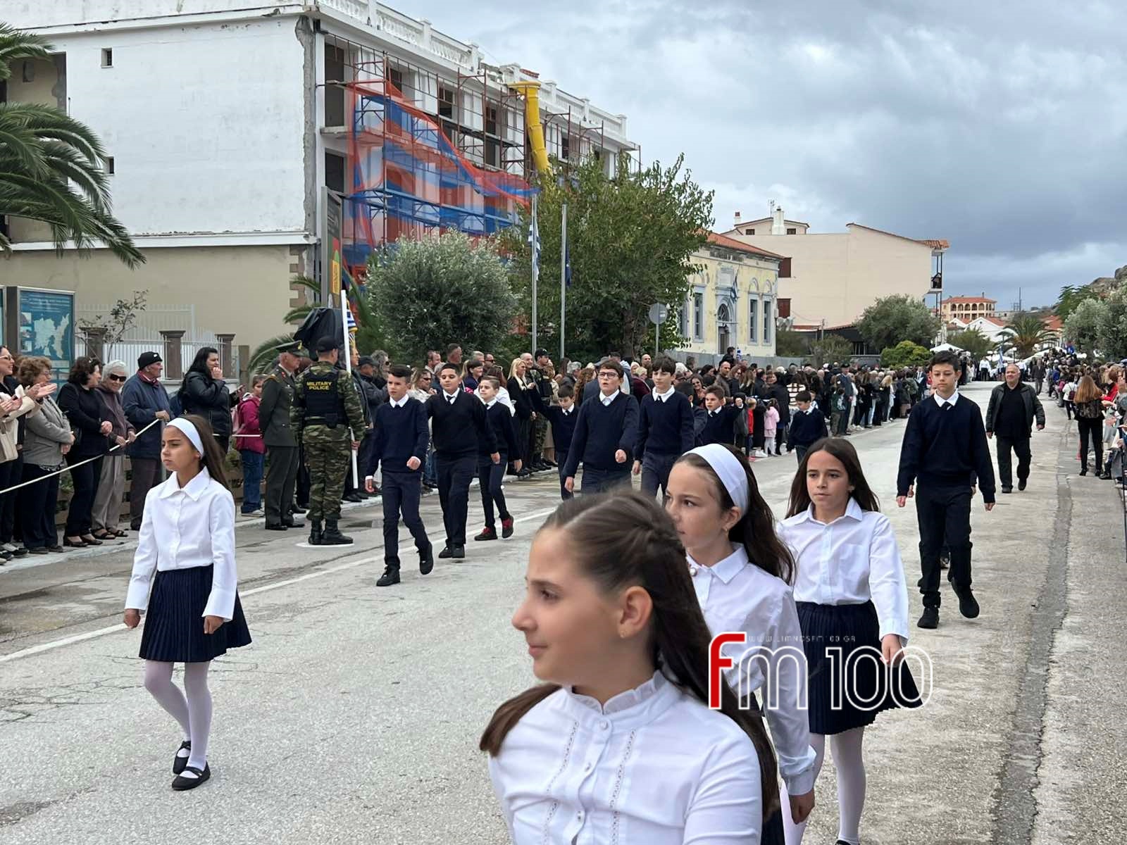 Ακολούθησε η μαθητική παρέλαση στο Ρωμαίικο Γιαλό την οποία παρακολούθησαν ο Πρόεδρος της Δημοκρατίας και οι επίσημοι προσκεκλημένοι. Στην παρέλαση συμμετείχαν μαθητές και μαθήτριες από τα σχολεία της πόλης, καθώς και πολιτιστικοί και αθλητικοί σύλλογοι του νησιού, προσφέροντας ένα ξεχωριστό θέαμα με παραδοσιακές φορεσιές και έντονο παλμό.