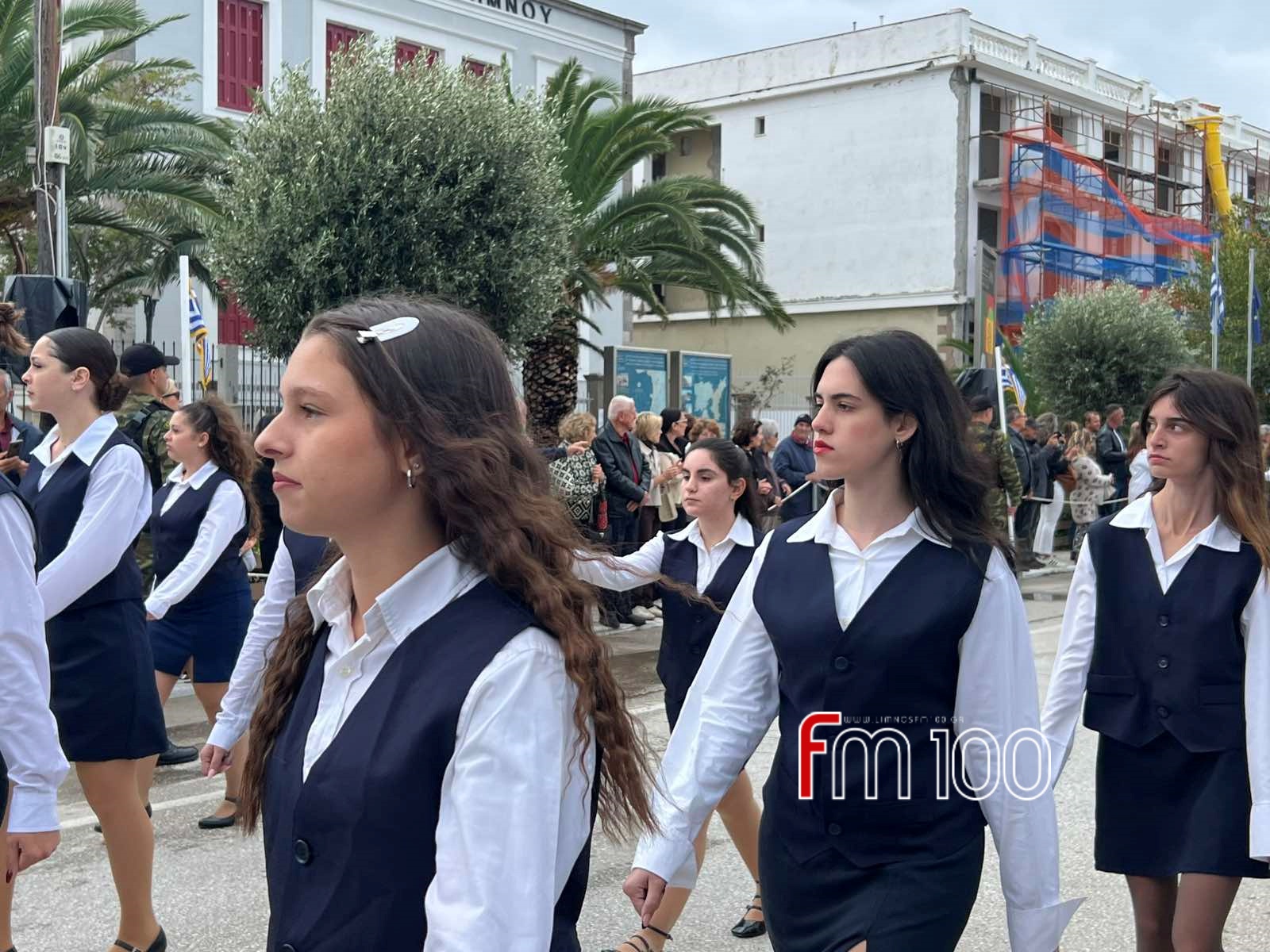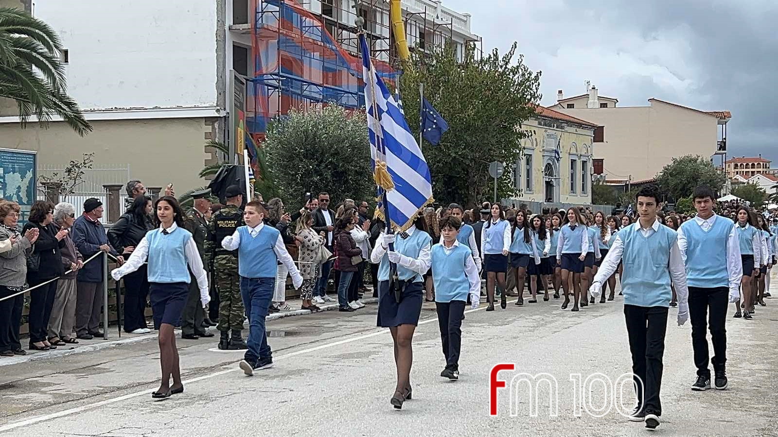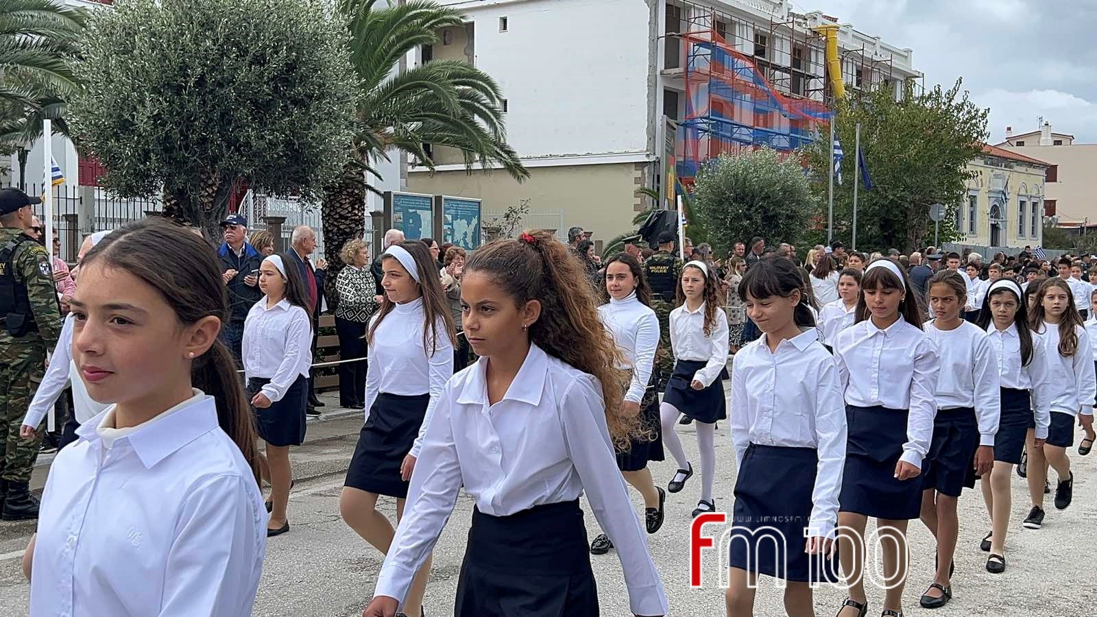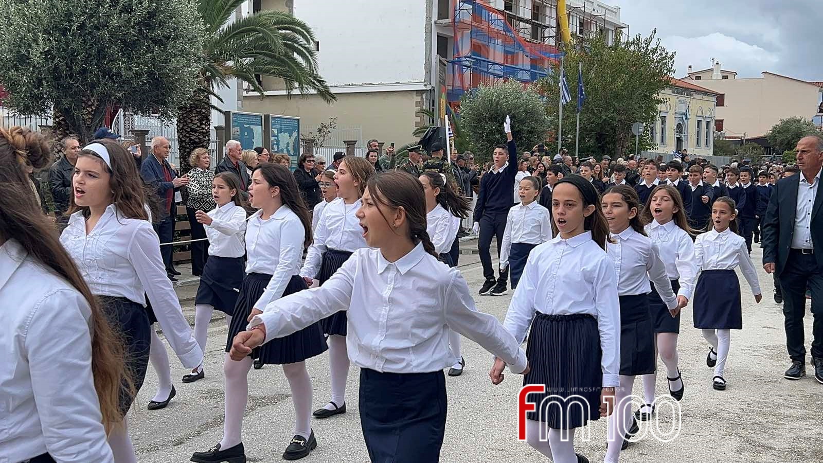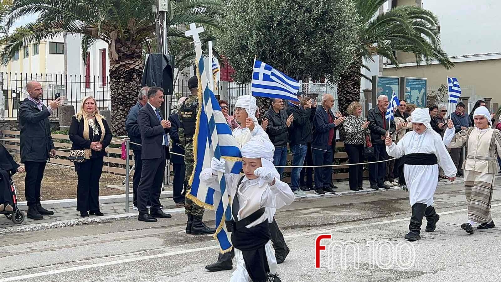 Ακολούθησε η μαθητική παρέλαση στο Ρωμαίικο Γιαλό την οποία παρακολούθησαν ο Πρόεδρος της Δημοκρατίας και οι επίσημοι προσκεκλημένοι. Στην παρέλαση συμμετείχαν μαθητές και μαθήτριες από τα σχολεία της πόλης, καθώς και πολιτιστικοί και αθλητικοί σύλλογοι του νησιού, προσφέροντας ένα ξεχωριστό θέαμα με παραδοσιακές φορεσιές και έντονο παλμό.