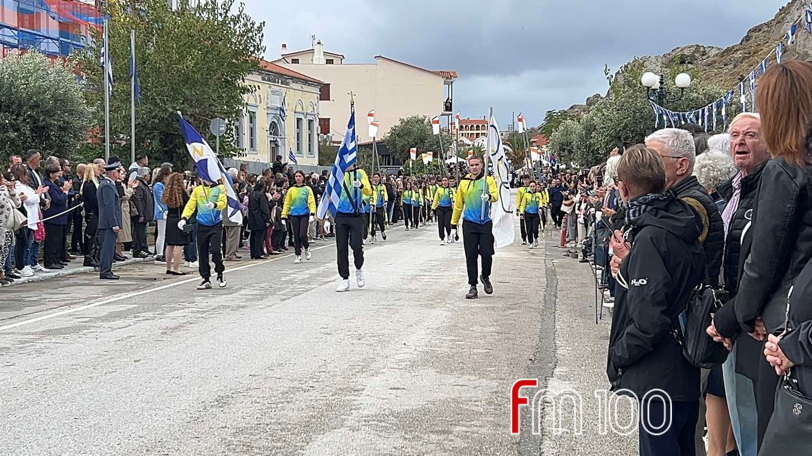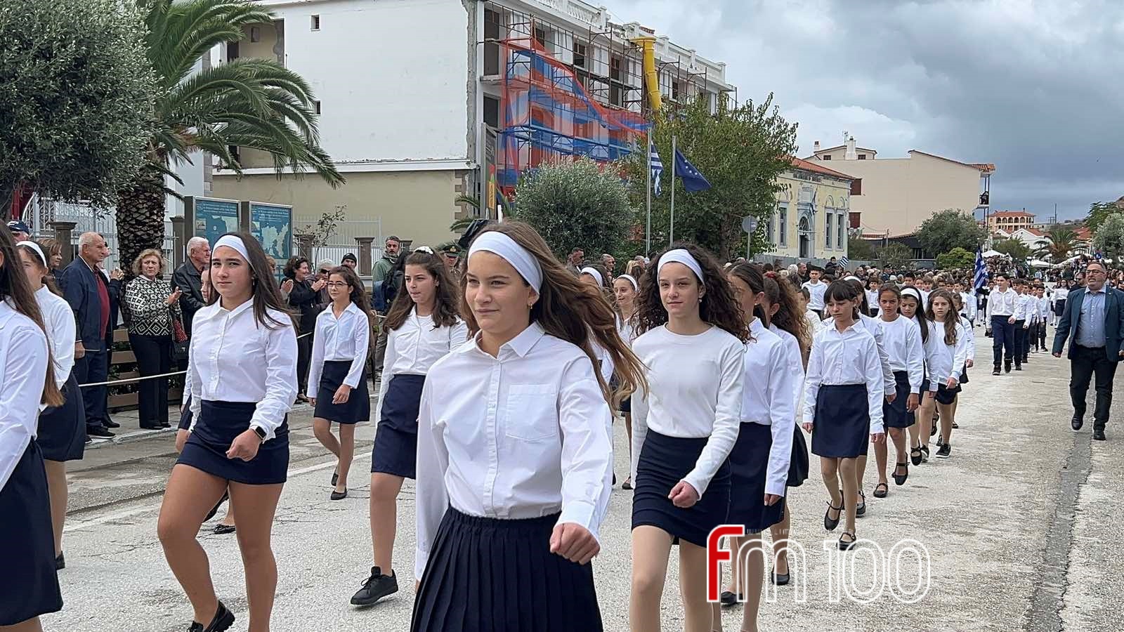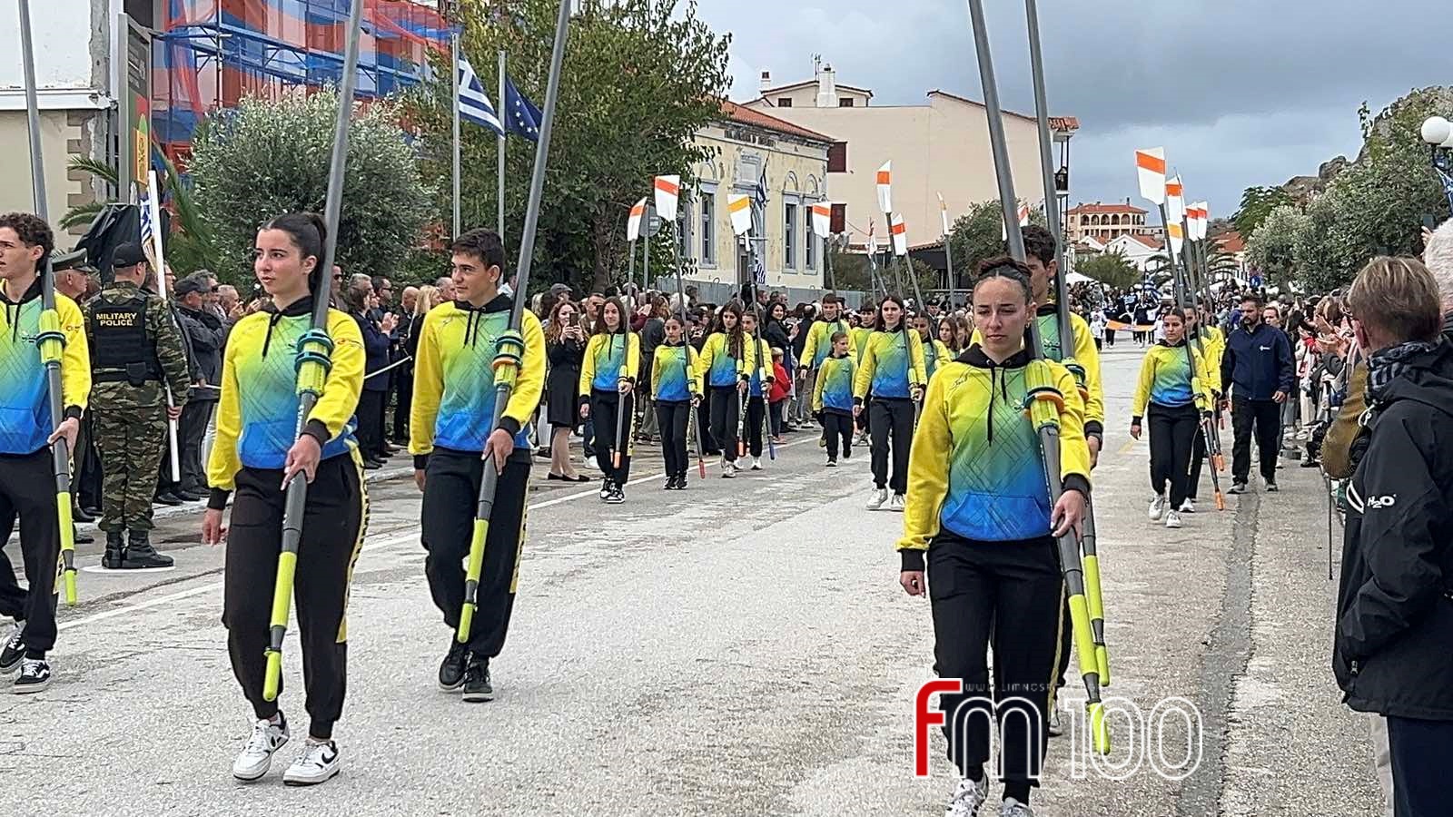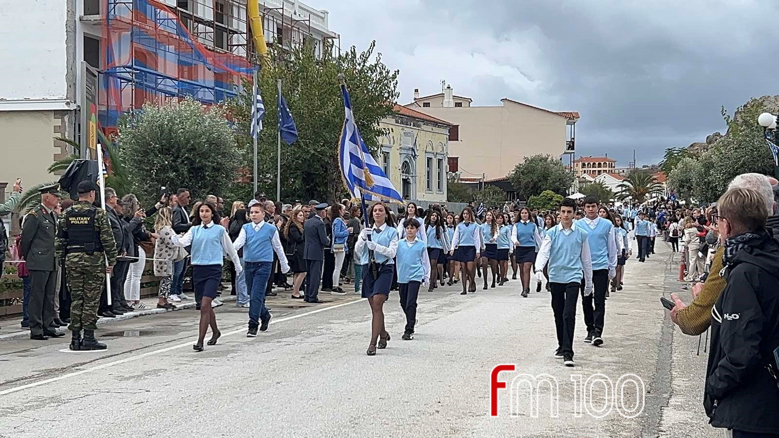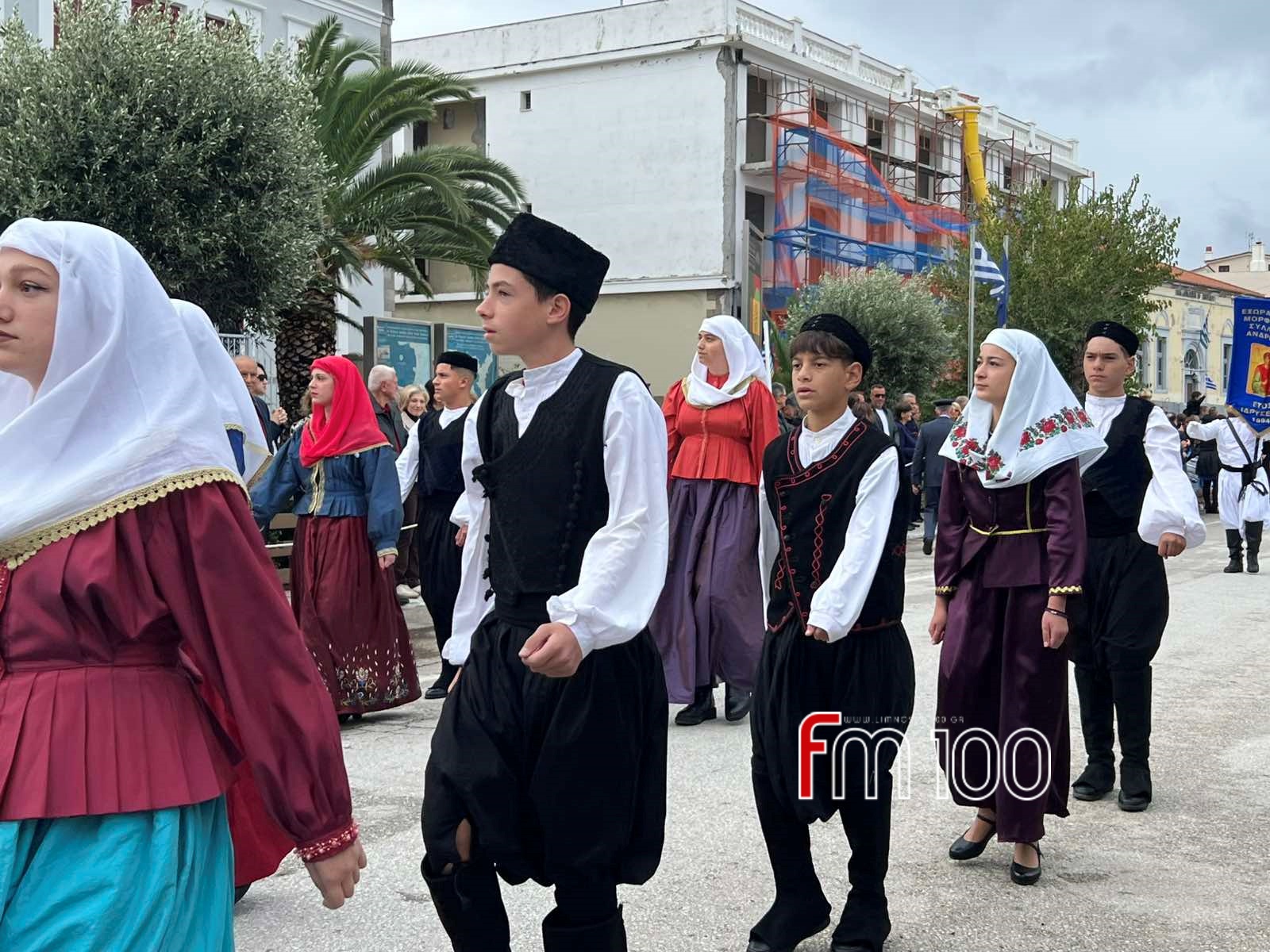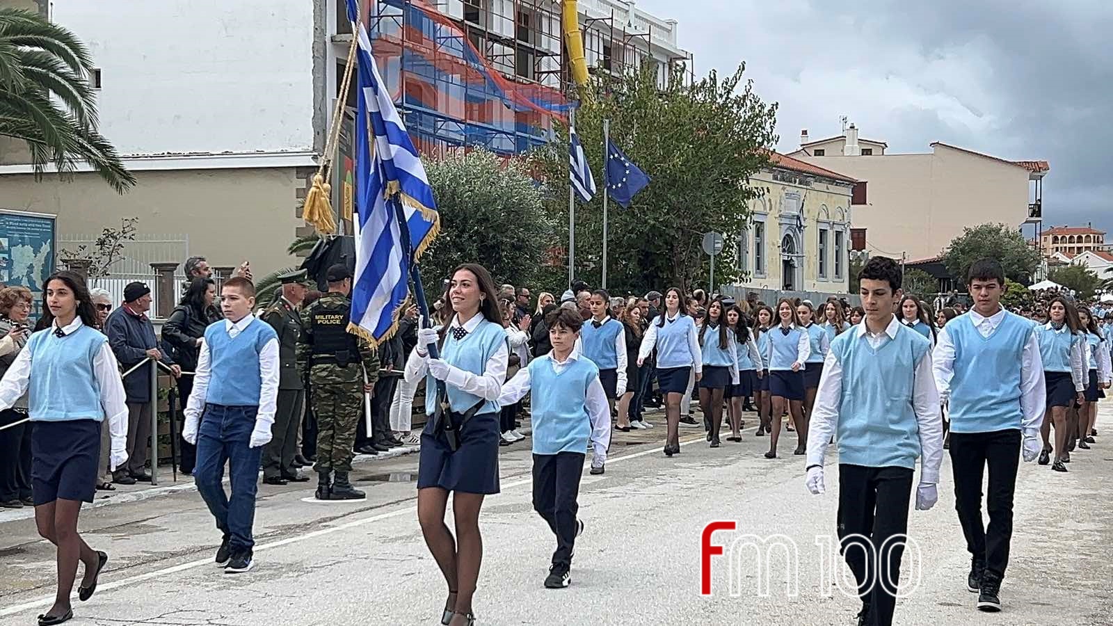 Ακολούθησε η μαθητική παρέλαση στο Ρωμαίικο Γιαλό την οποία παρακολούθησαν ο Πρόεδρος της Δημοκρατίας και οι επίσημοι προσκεκλημένοι. Στην παρέλαση συμμετείχαν μαθητές και μαθήτριες από τα σχολεία της πόλης, καθώς και πολιτιστικοί και αθλητικοί σύλλογοι του νησιού, προσφέροντας ένα ξεχωριστό θέαμα με παραδοσιακές φορεσιές και έντονο παλμό.