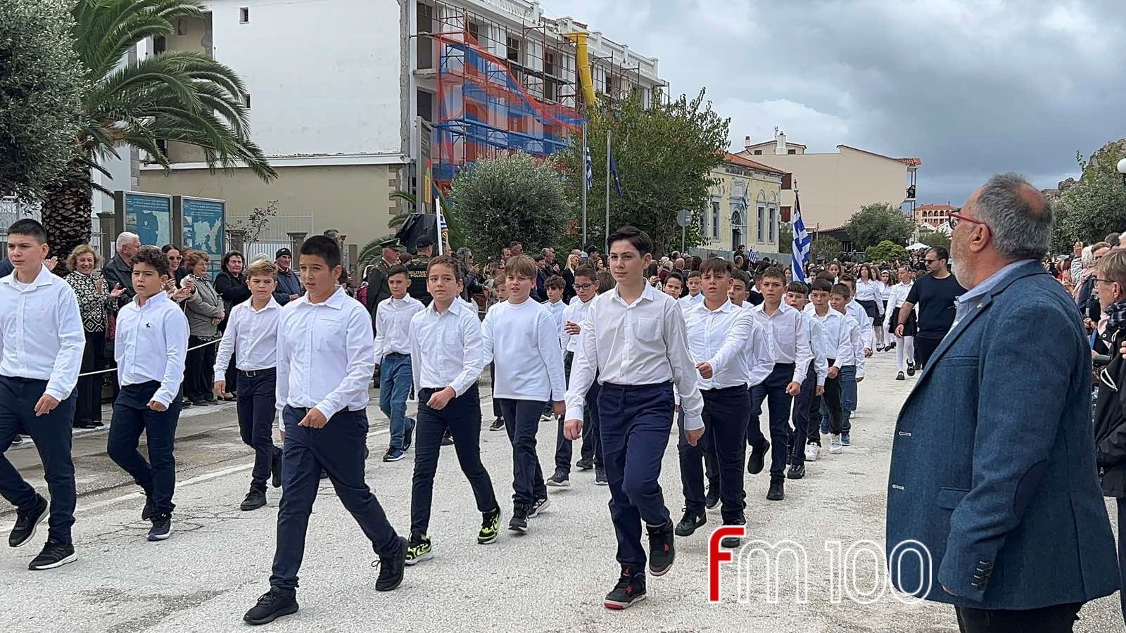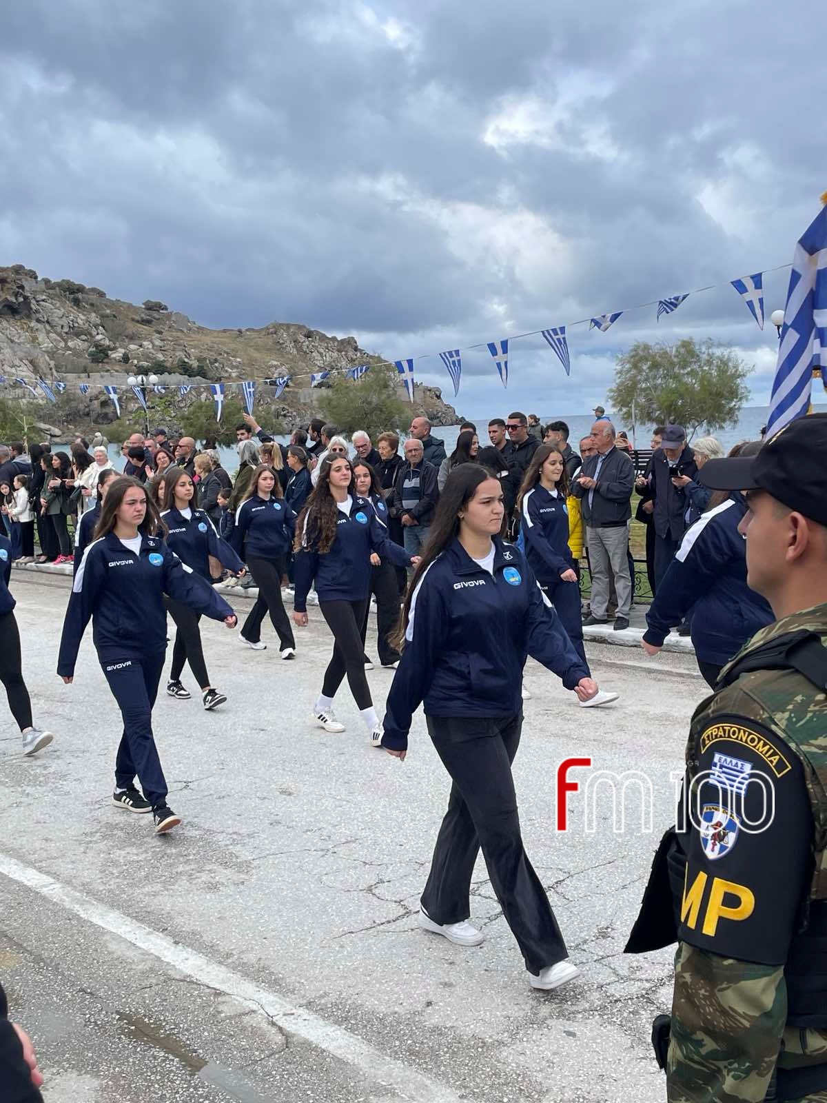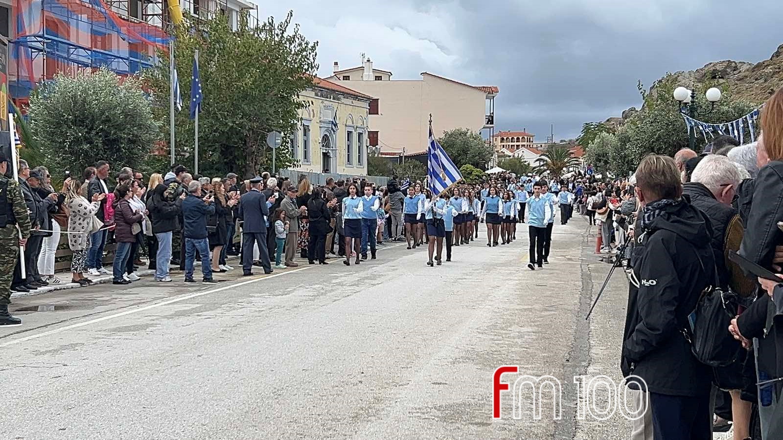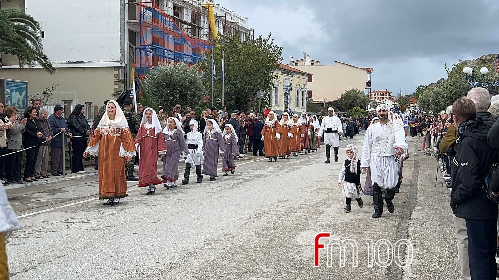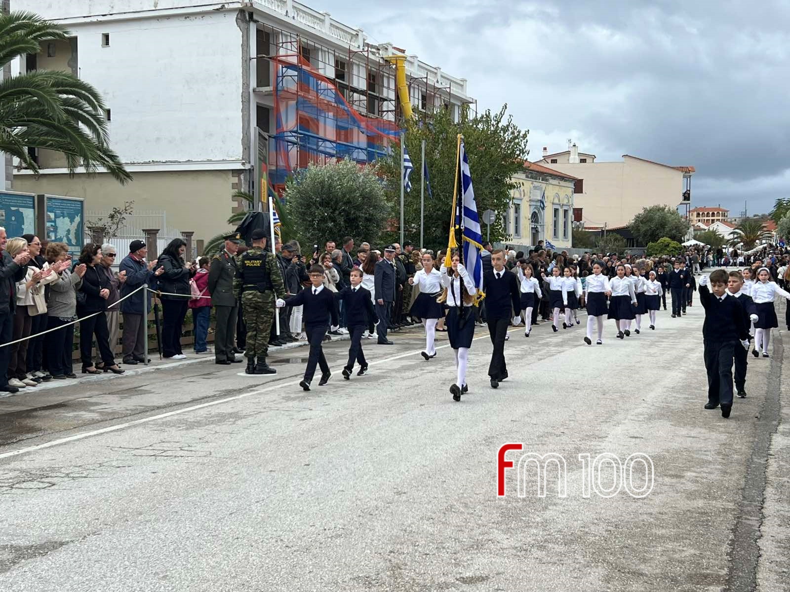 Ακολούθησε η μαθητική παρέλαση στο Ρωμαίικο Γιαλό την οποία παρακολούθησαν ο Πρόεδρος της Δημοκρατίας και οι επίσημοι προσκεκλημένοι. Στην παρέλαση συμμετείχαν μαθητές και μαθήτριες από τα σχολεία της πόλης, καθώς και πολιτιστικοί και αθλητικοί σύλλογοι του νησιού, προσφέροντας ένα ξεχωριστό θέαμα με παραδοσιακές φορεσιές και έντονο παλμό.