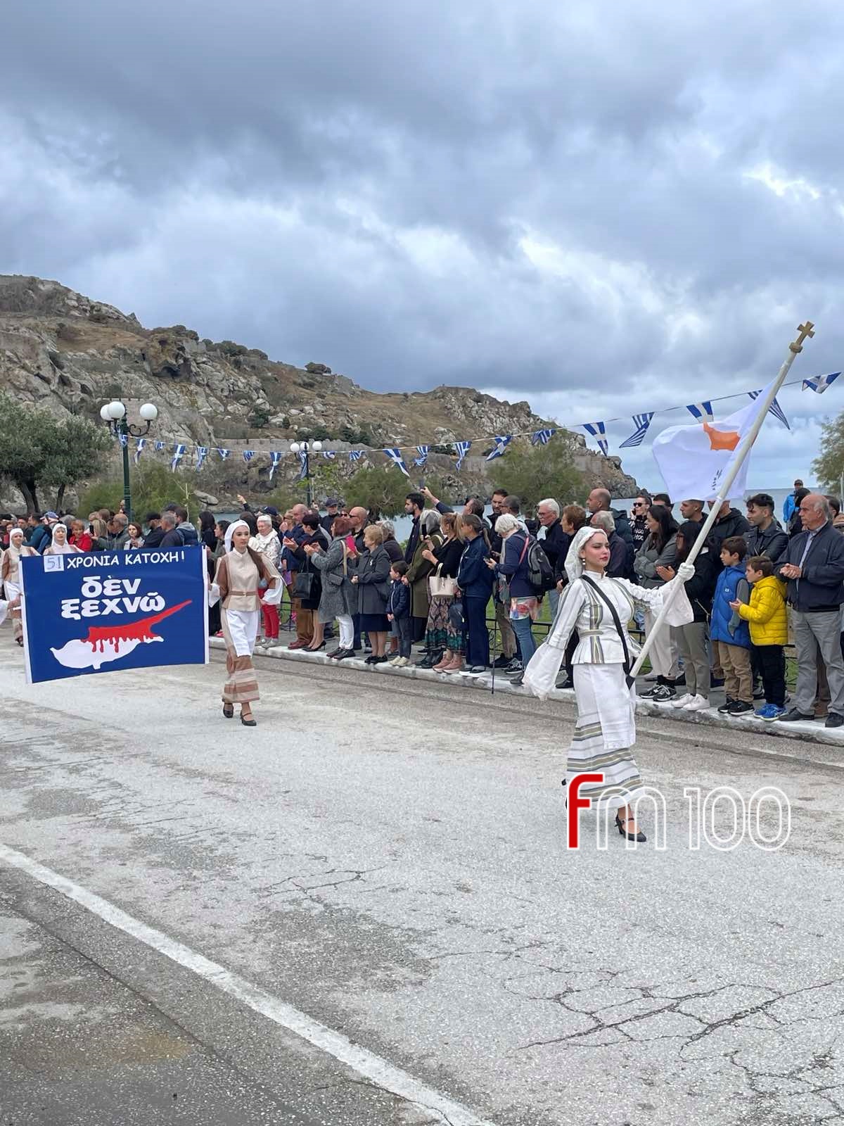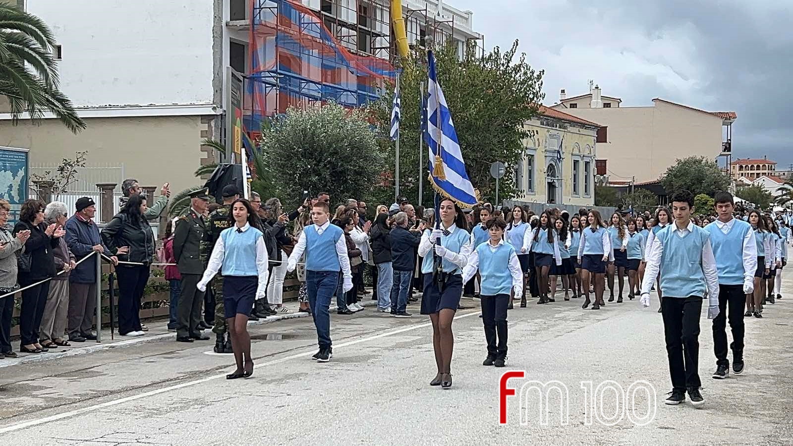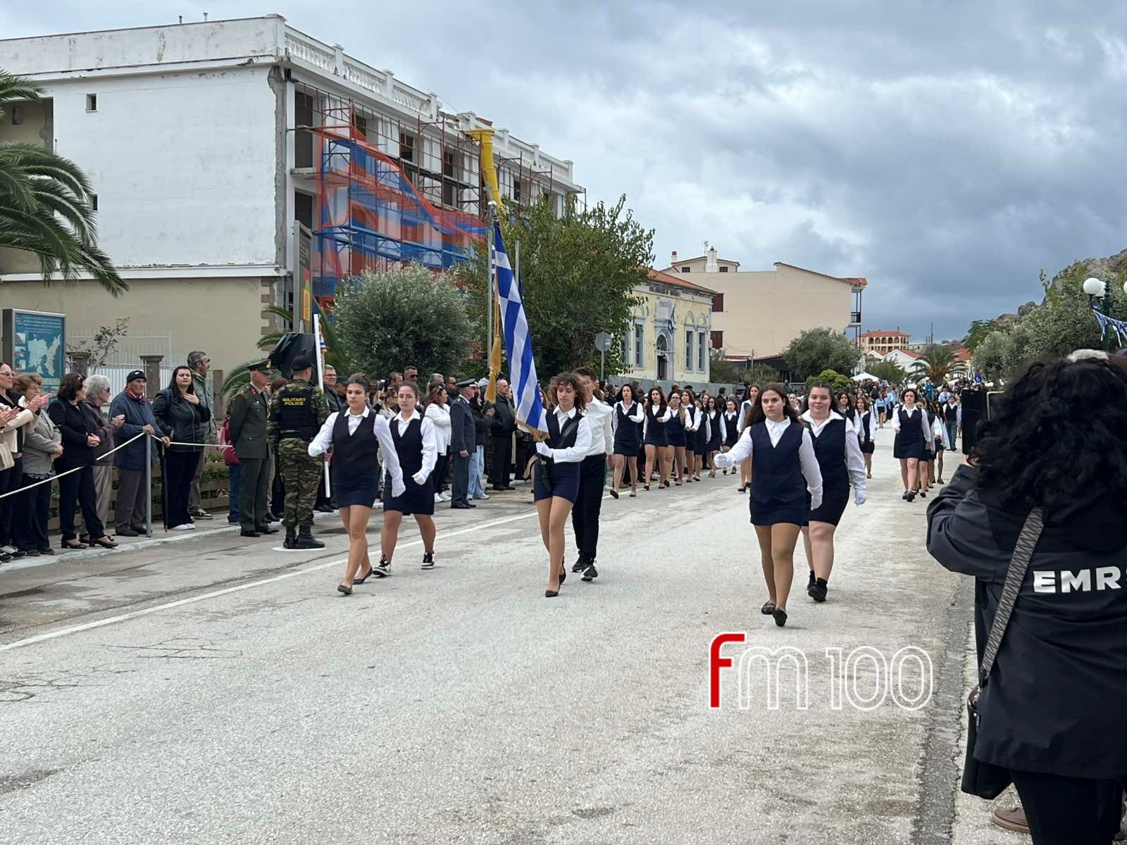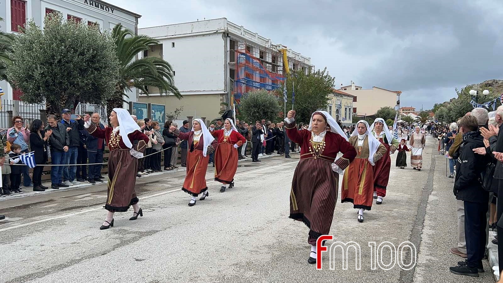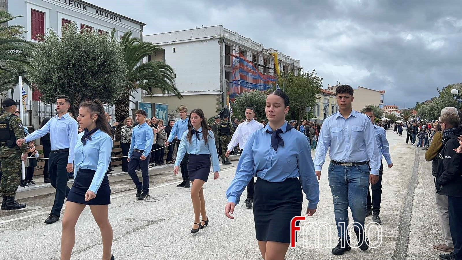Ακολούθησε η μαθητική παρέλαση στο Ρωμαίικο Γιαλό την οποία παρακολούθησαν ο Πρόεδρος της Δημοκρατίας και οι επίσημοι προσκεκλημένοι. Στην παρέλαση συμμετείχαν μαθητές και μαθήτριες από τα σχολεία της πόλης, καθώς και πολιτιστικοί και αθλητικοί σύλλογοι του νησιού, προσφέροντας ένα ξεχωριστό θέαμα με παραδοσιακές φορεσιές και έντονο παλμό.
