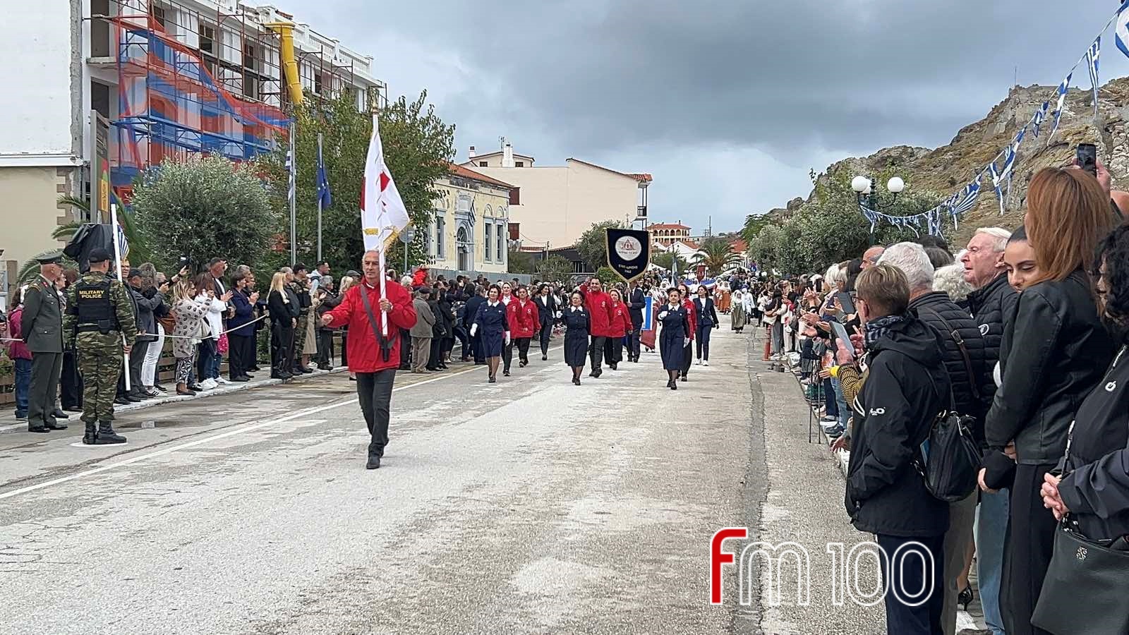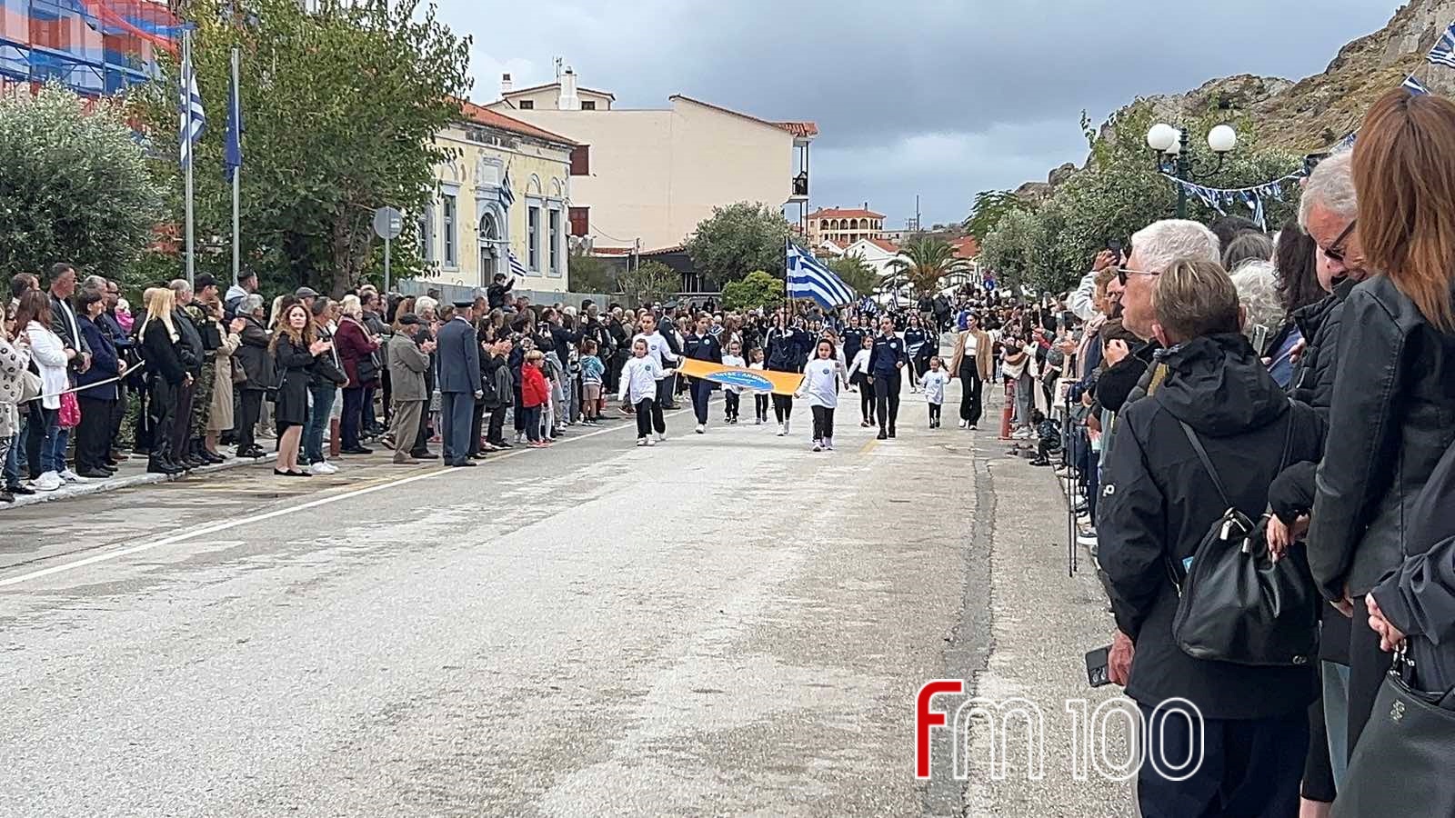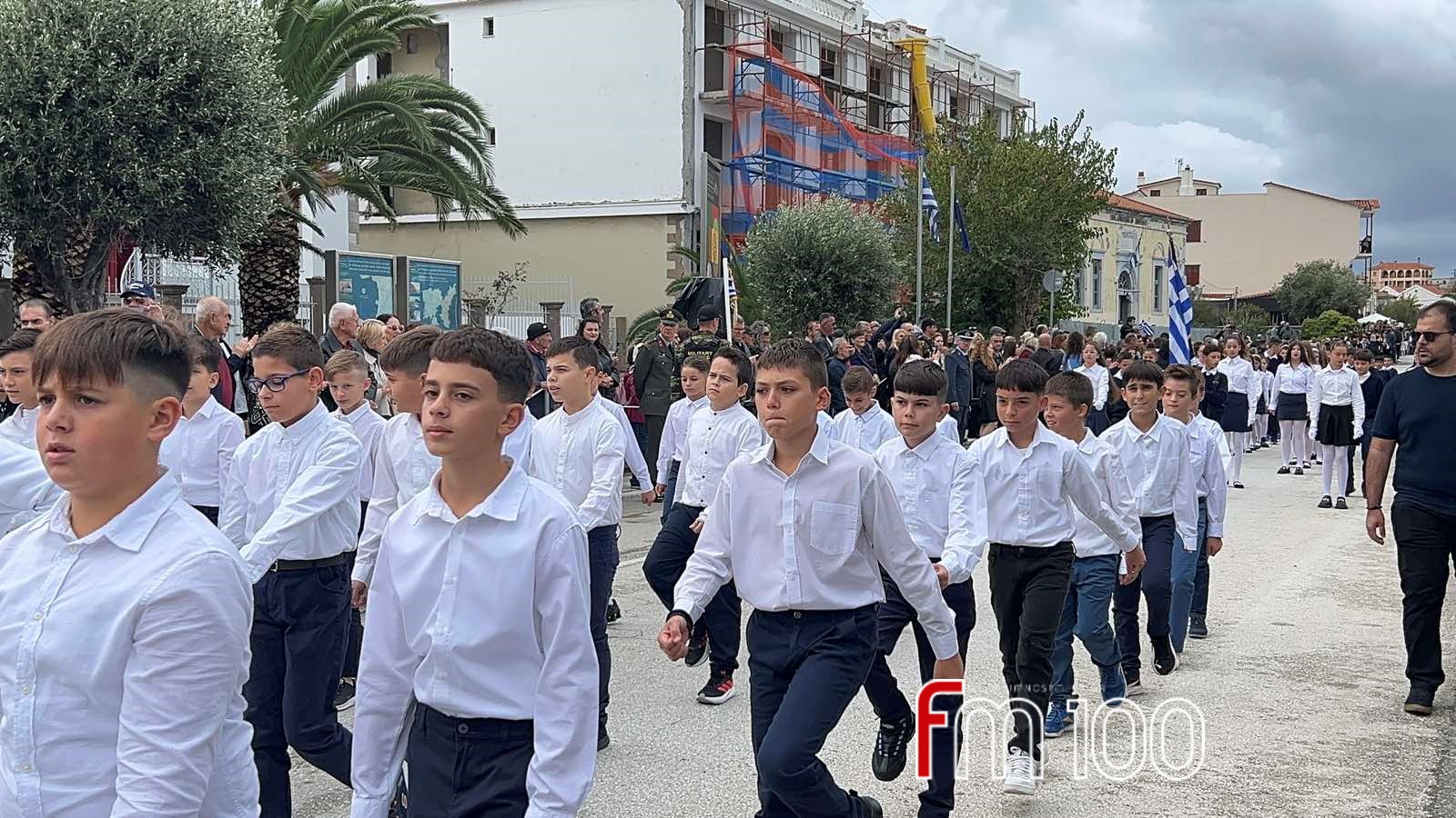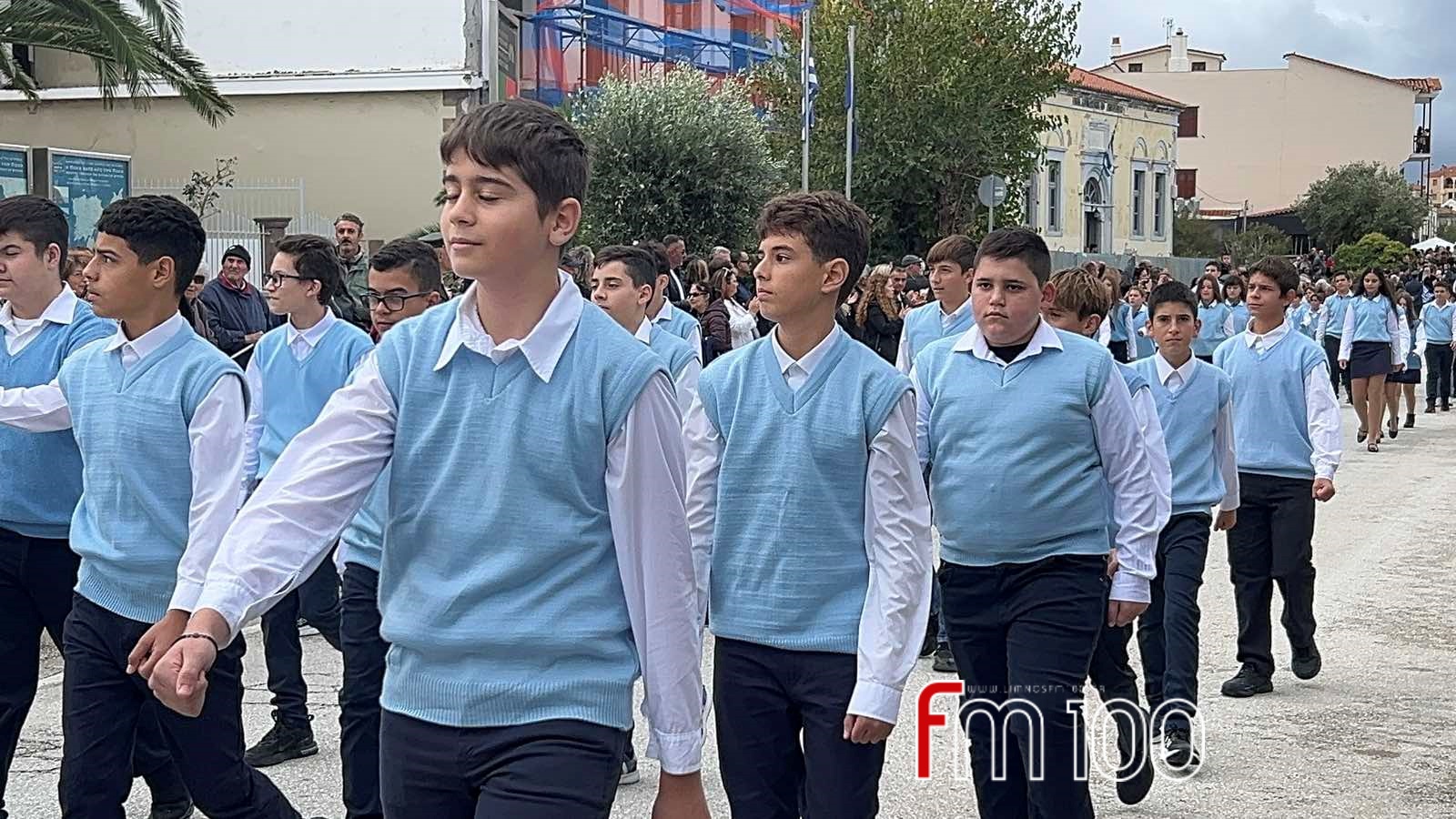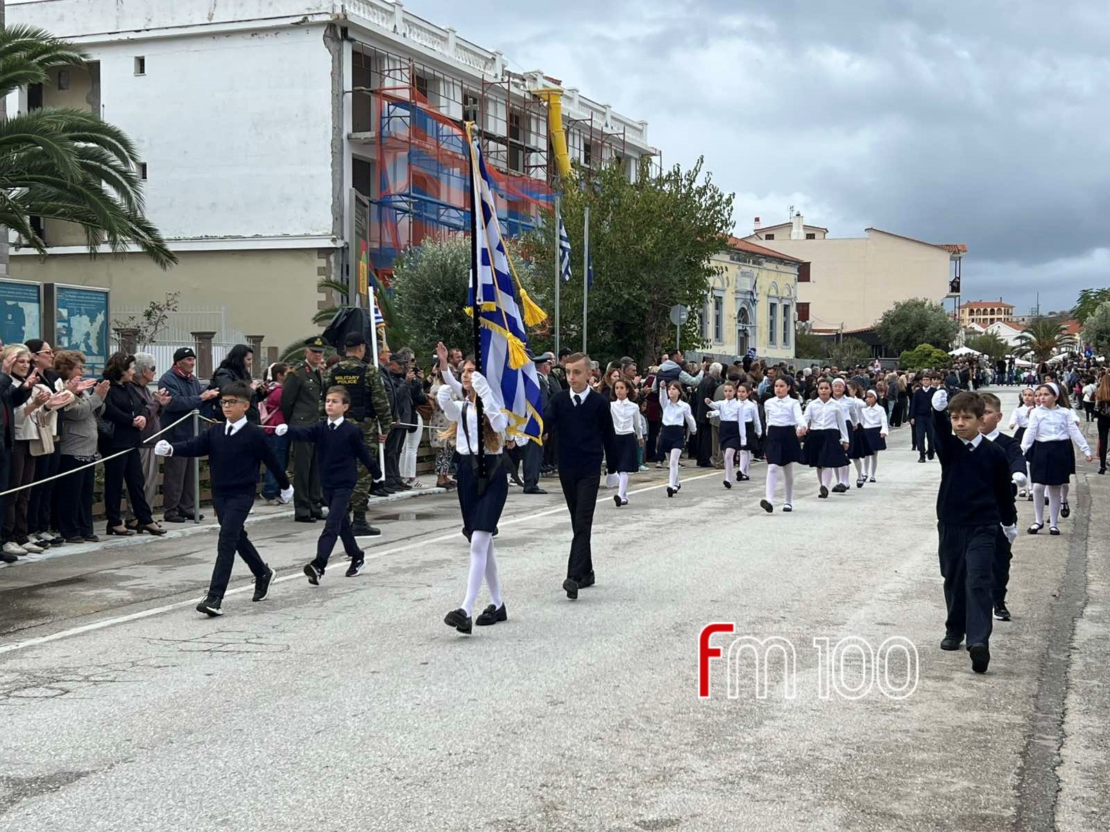 Ακολούθησε η μαθητική παρέλαση στο Ρωμαίικο Γιαλό την οποία παρακολούθησαν ο Πρόεδρος της Δημοκρατίας και οι επίσημοι προσκεκλημένοι. Στην παρέλαση συμμετείχαν μαθητές και μαθήτριες από τα σχολεία της πόλης, καθώς και πολιτιστικοί και αθλητικοί σύλλογοι του νησιού, προσφέροντας ένα ξεχωριστό θέαμα με παραδοσιακές φορεσιές και έντονο παλμό.