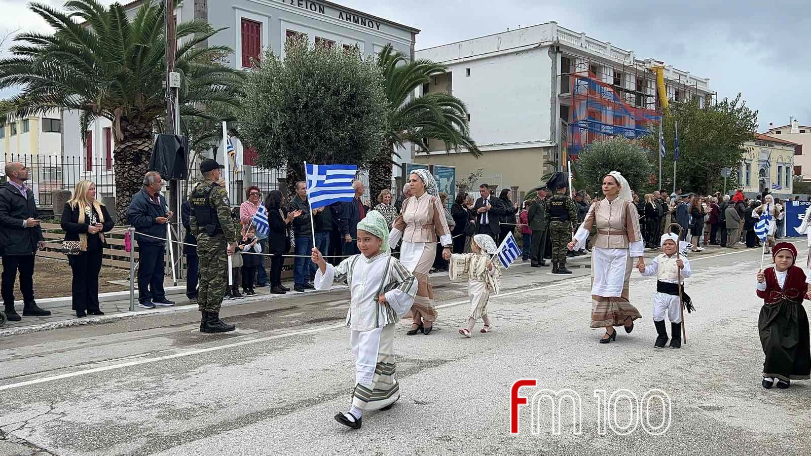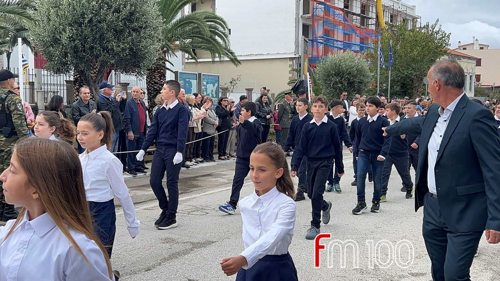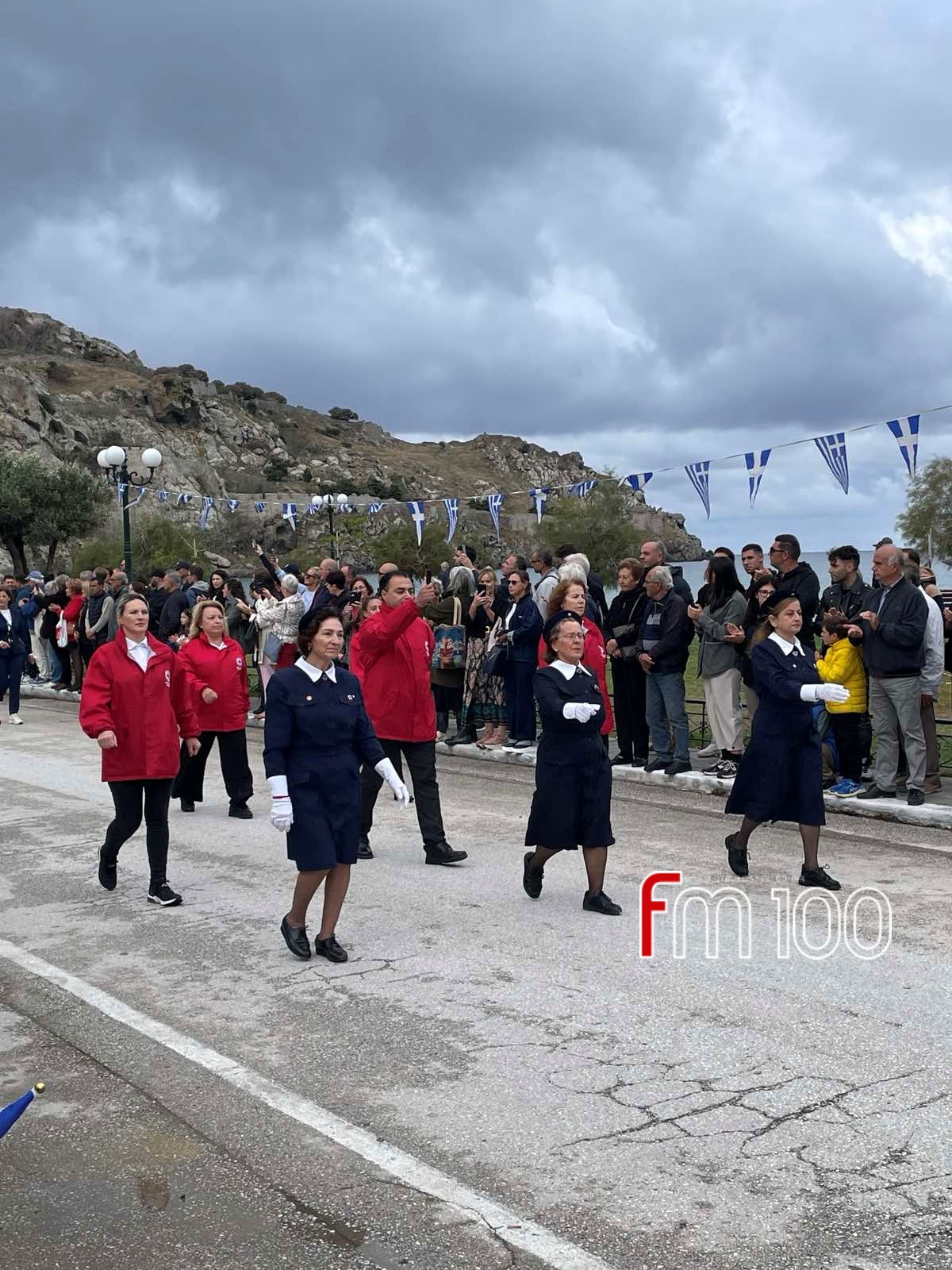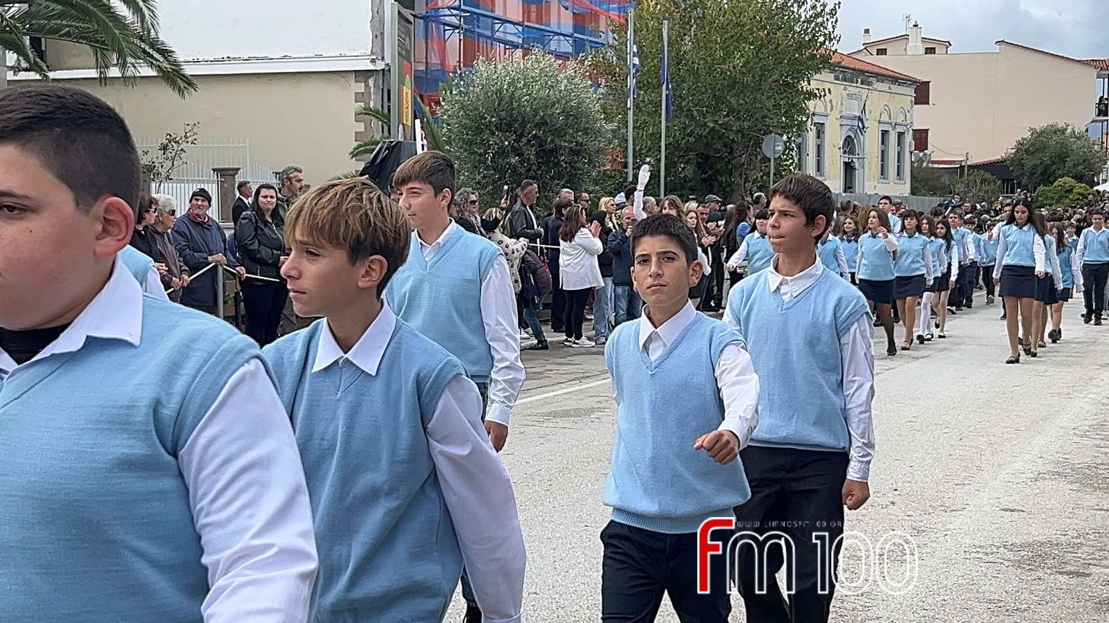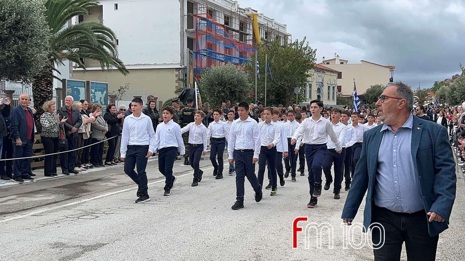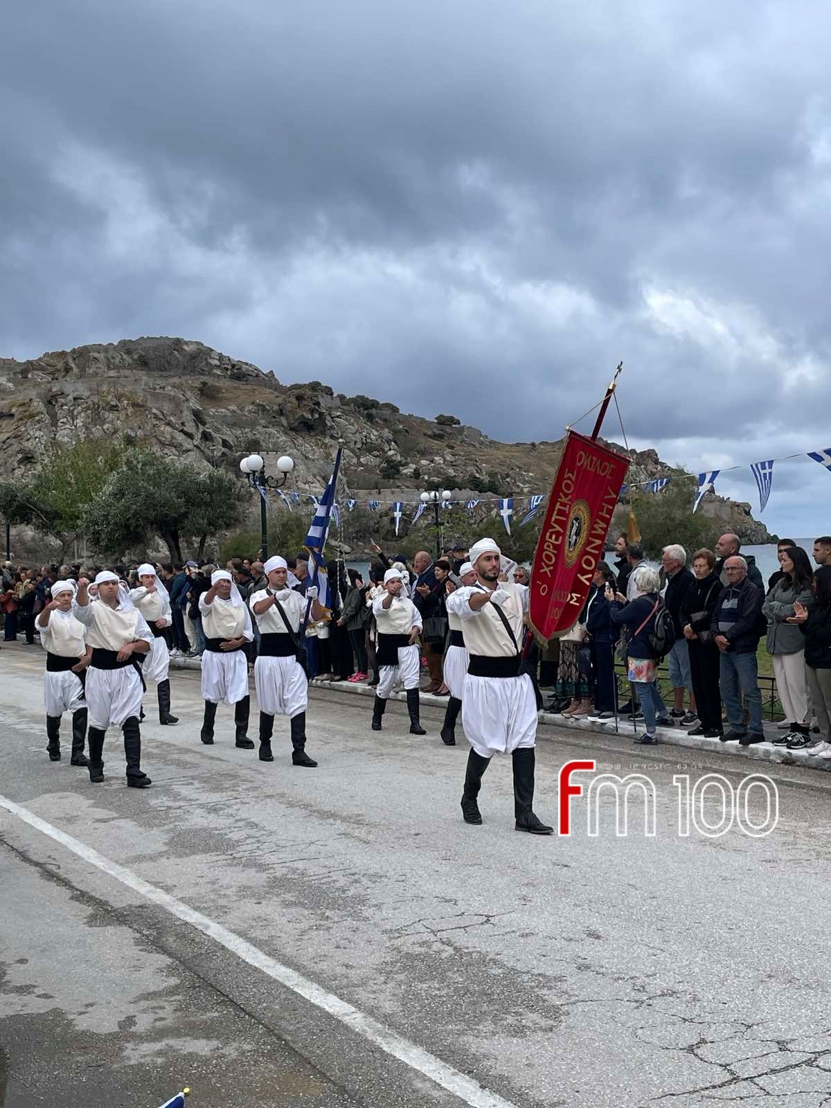 Ακολούθησε η μαθητική παρέλαση στο Ρωμαίικο Γιαλό την οποία παρακολούθησαν ο Πρόεδρος της Δημοκρατίας και οι επίσημοι προσκεκλημένοι. Στην παρέλαση συμμετείχαν μαθητές και μαθήτριες από τα σχολεία της πόλης, καθώς και πολιτιστικοί και αθλητικοί σύλλογοι του νησιού, προσφέροντας ένα ξεχωριστό θέαμα με παραδοσιακές φορεσιές και έντονο παλμό.