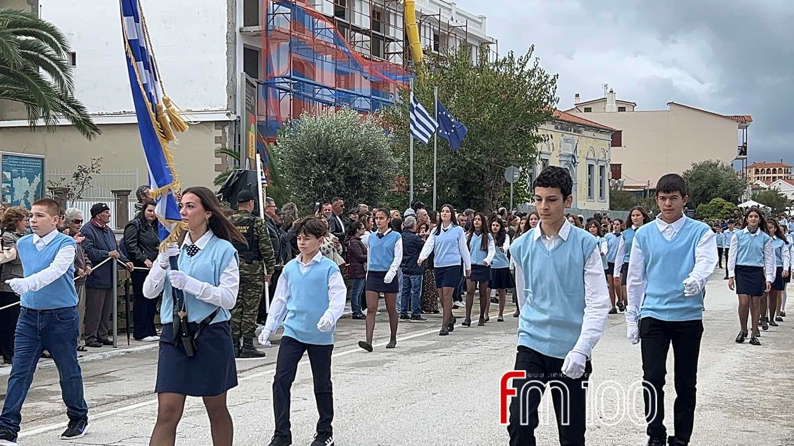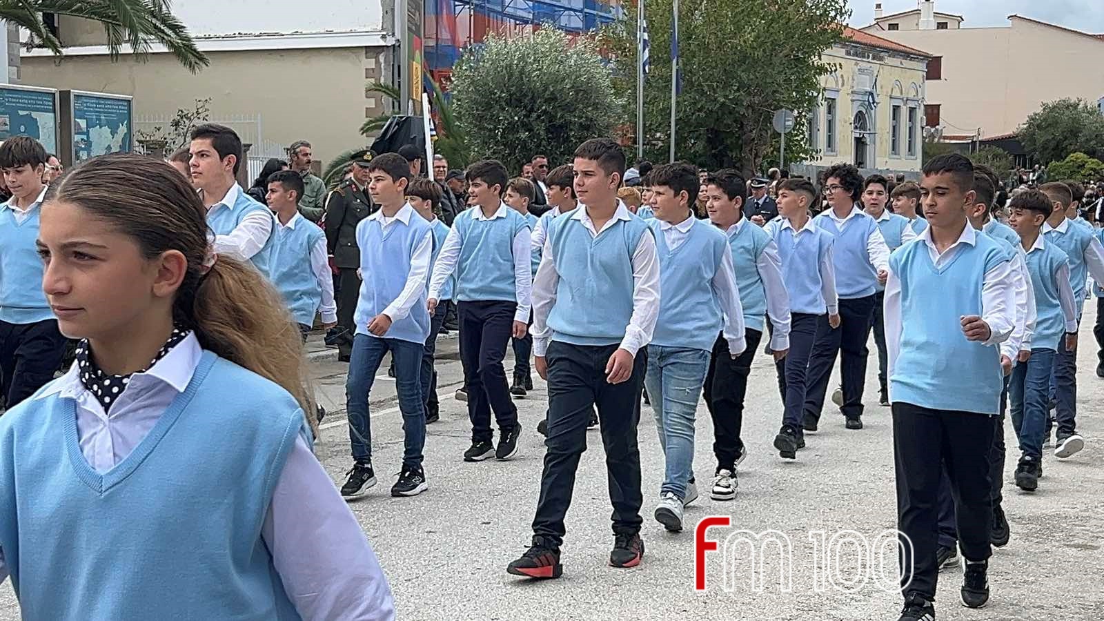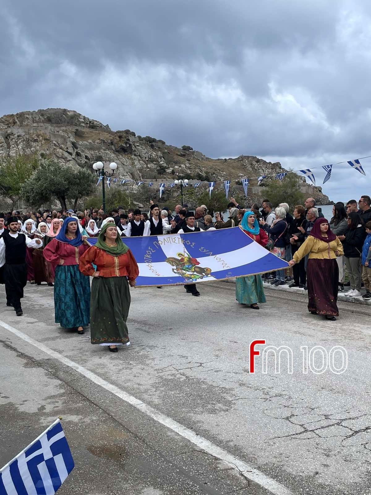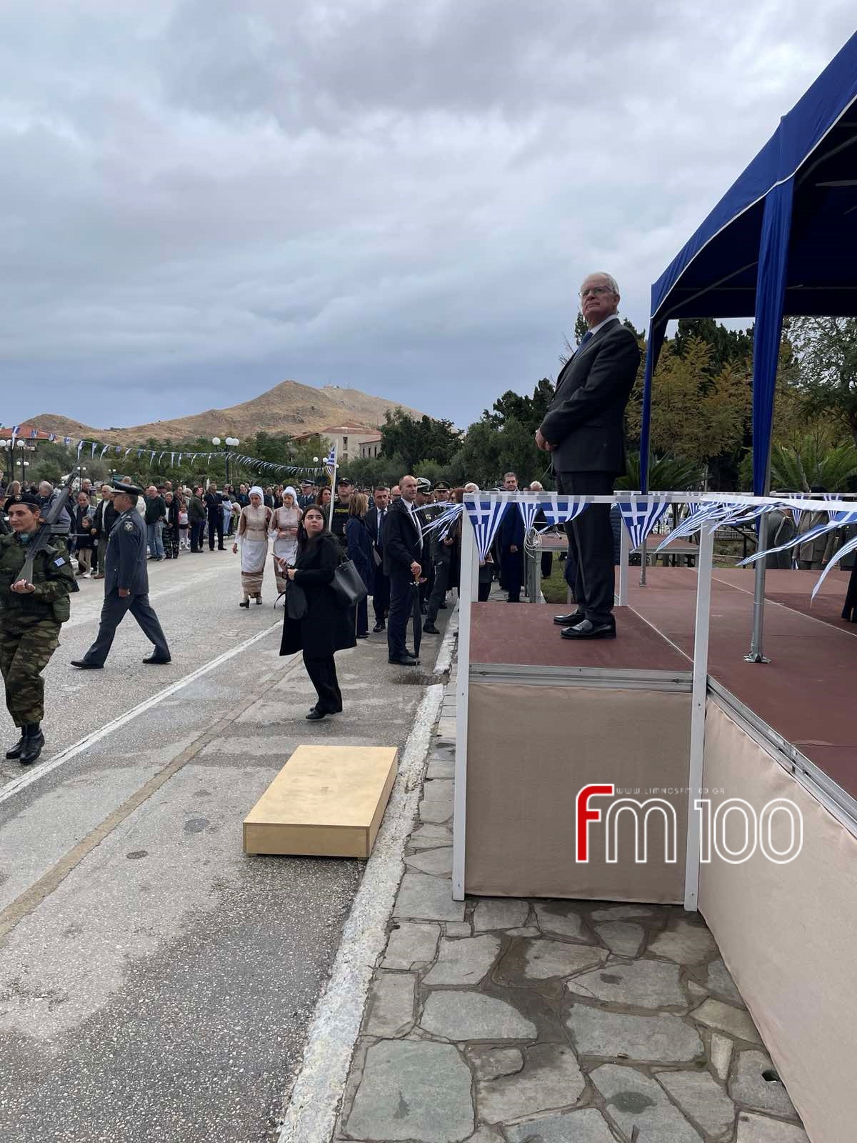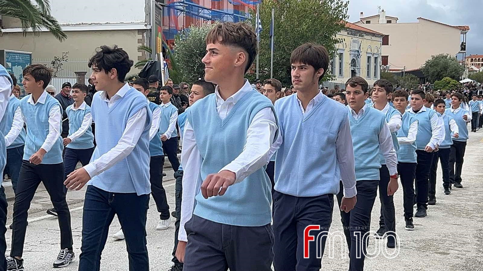 Ακολούθησε η μαθητική παρέλαση στο Ρωμαίικο Γιαλό την οποία παρακολούθησαν ο Πρόεδρος της Δημοκρατίας και οι επίσημοι προσκεκλημένοι. Στην παρέλαση συμμετείχαν μαθητές και μαθήτριες από τα σχολεία της πόλης, καθώς και πολιτιστικοί και αθλητικοί σύλλογοι του νησιού, προσφέροντας ένα ξεχωριστό θέαμα με παραδοσιακές φορεσιές και έντονο παλμό.