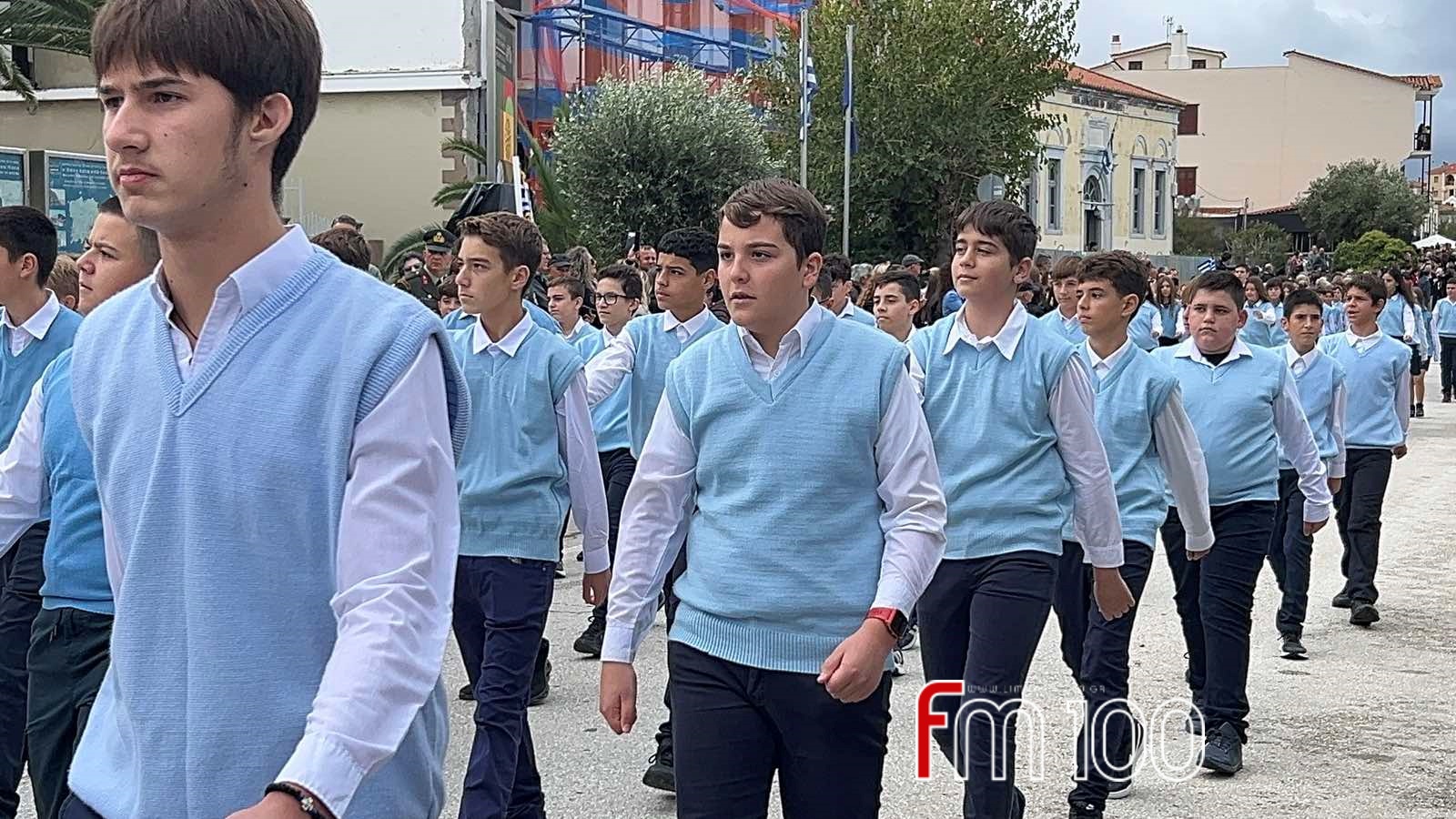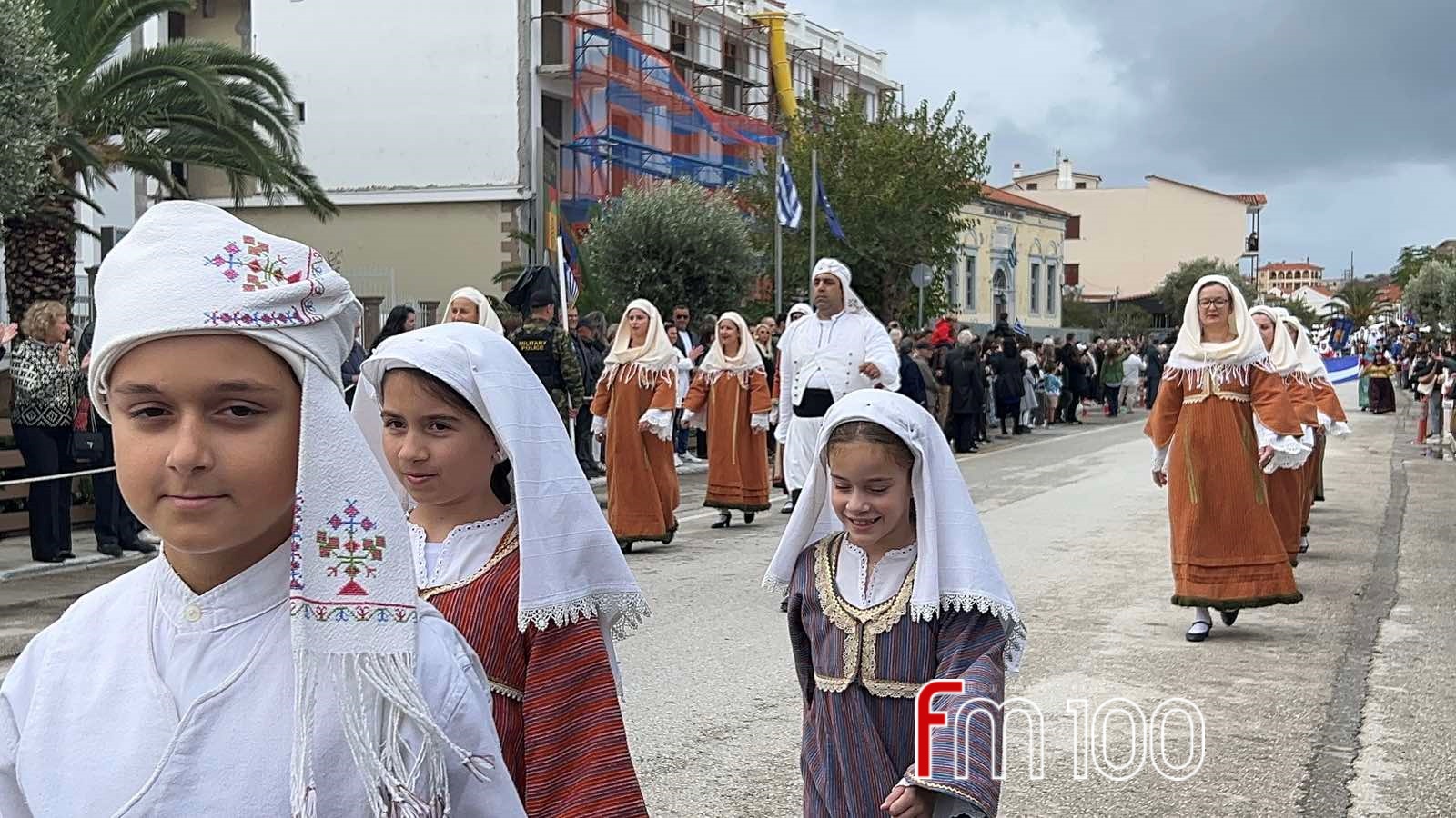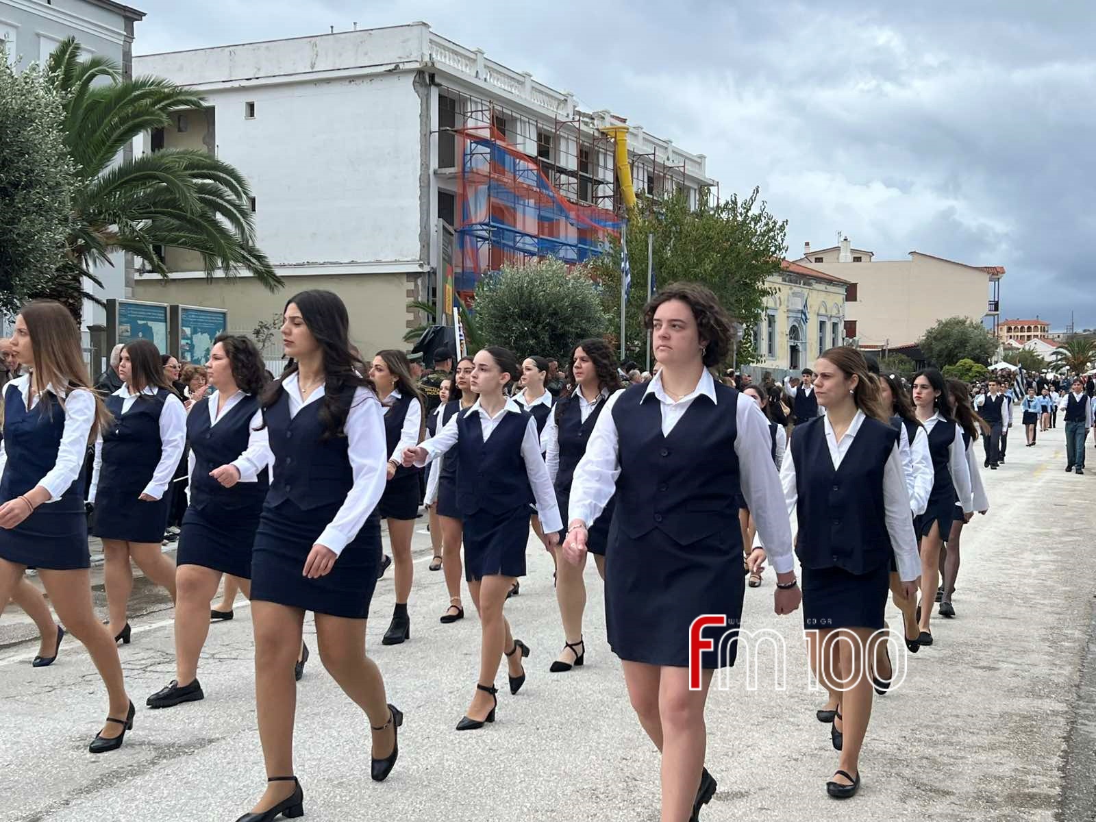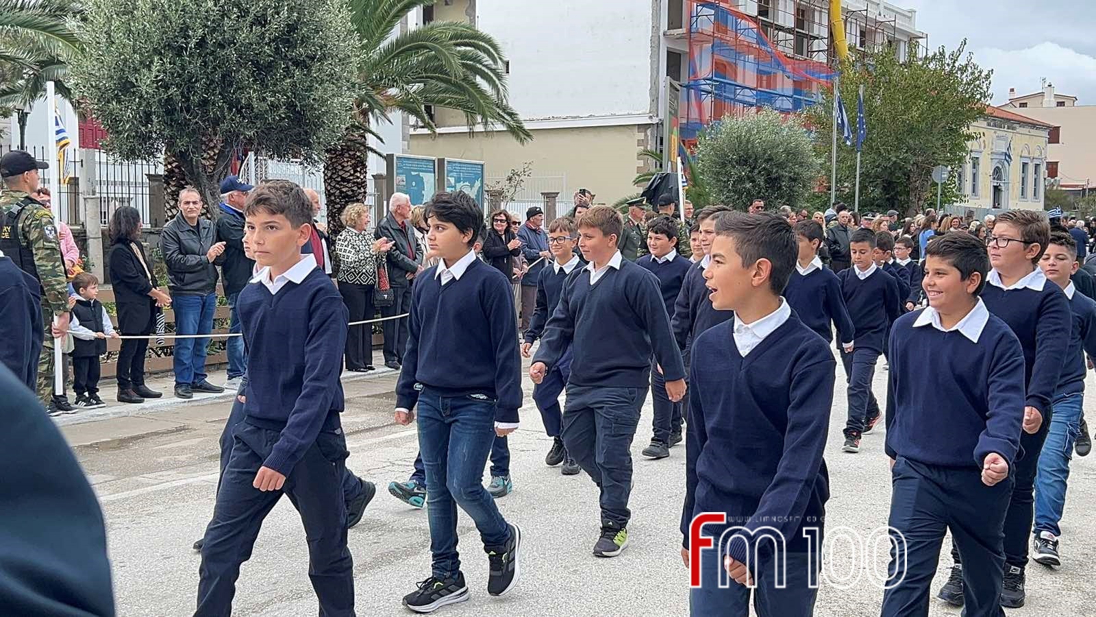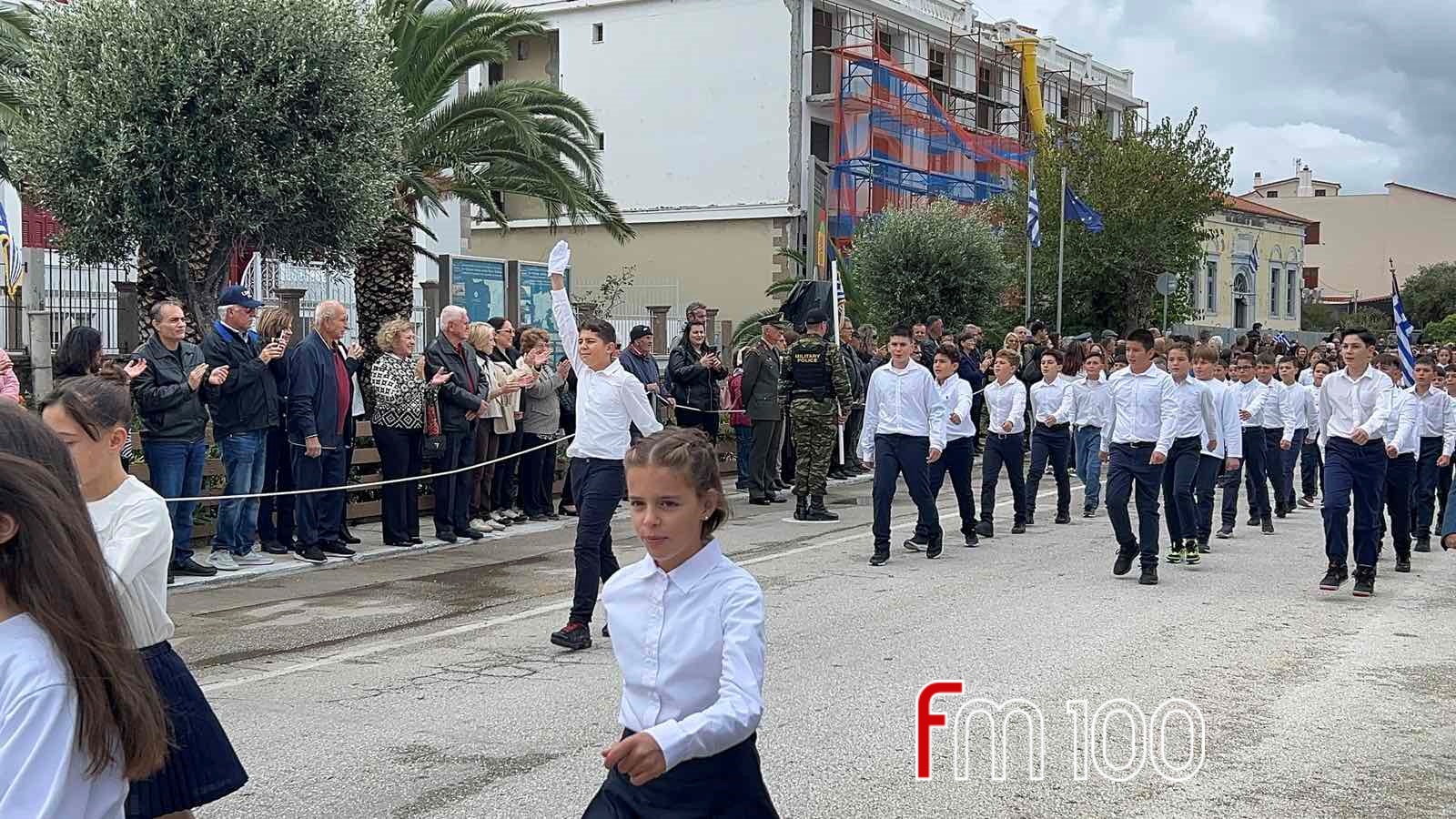 Ακολούθησε η μαθητική παρέλαση στο Ρωμαίικο Γιαλό την οποία παρακολούθησαν ο Πρόεδρος της Δημοκρατίας και οι επίσημοι προσκεκλημένοι. Στην παρέλαση συμμετείχαν μαθητές και μαθήτριες από τα σχολεία της πόλης, καθώς και πολιτιστικοί και αθλητικοί σύλλογοι του νησιού, προσφέροντας ένα ξεχωριστό θέαμα με παραδοσιακές φορεσιές και έντονο παλμό.