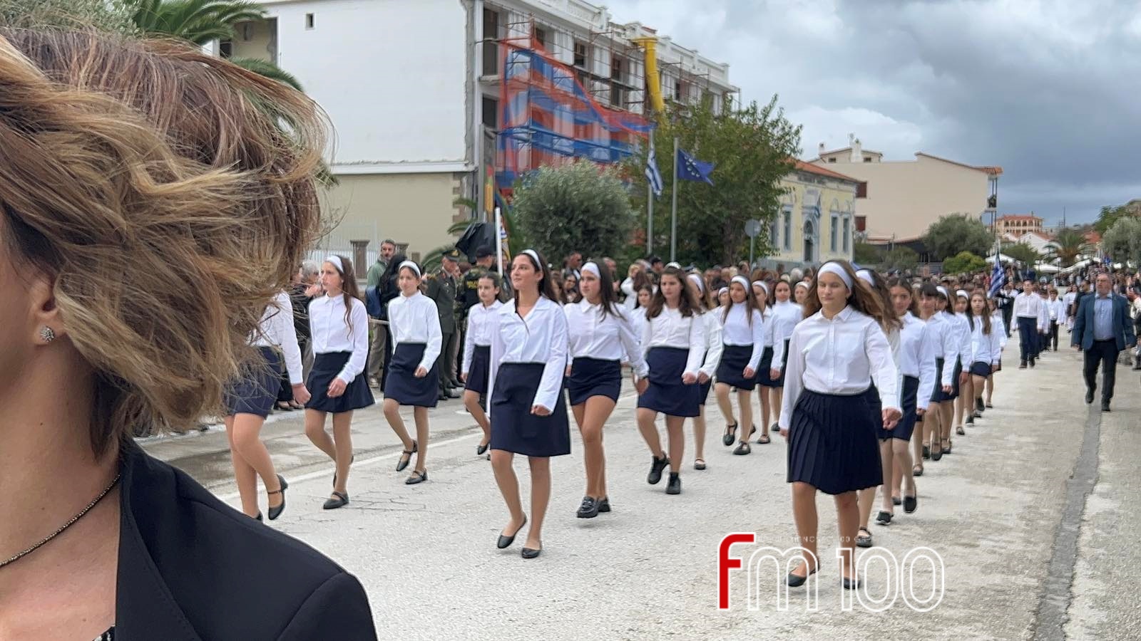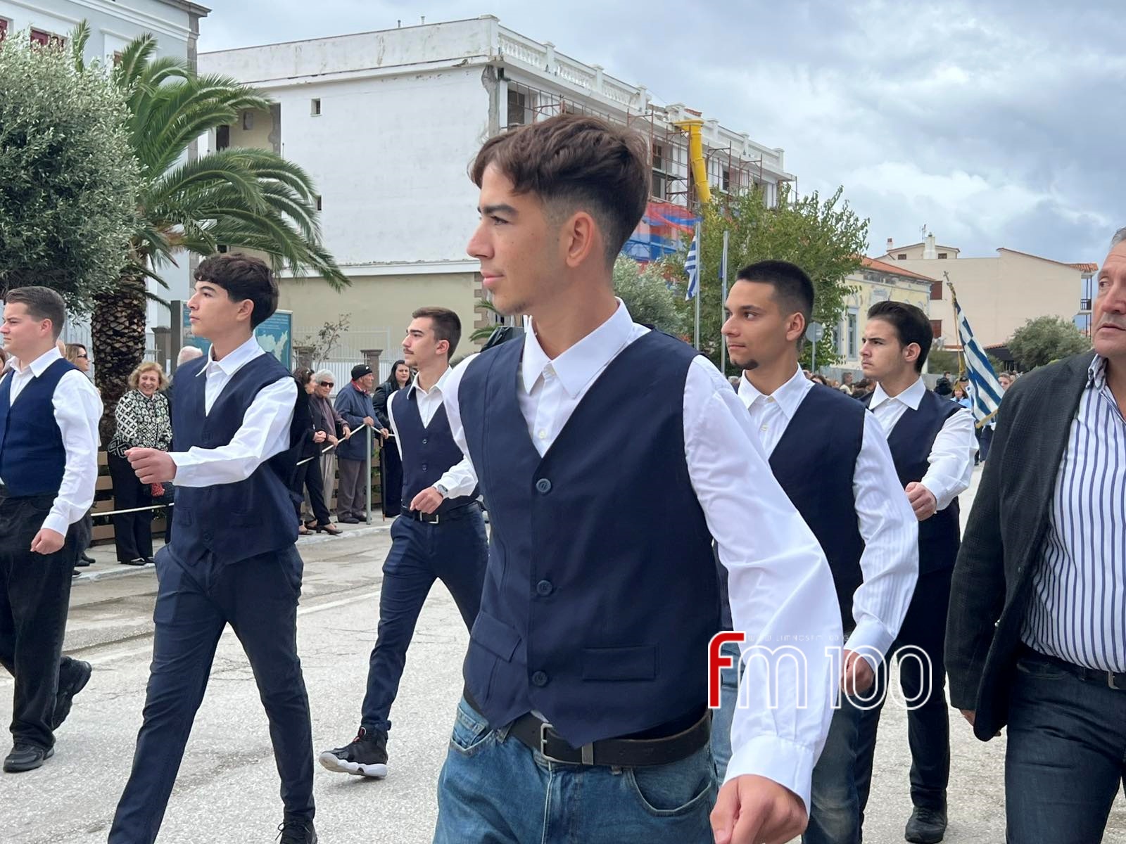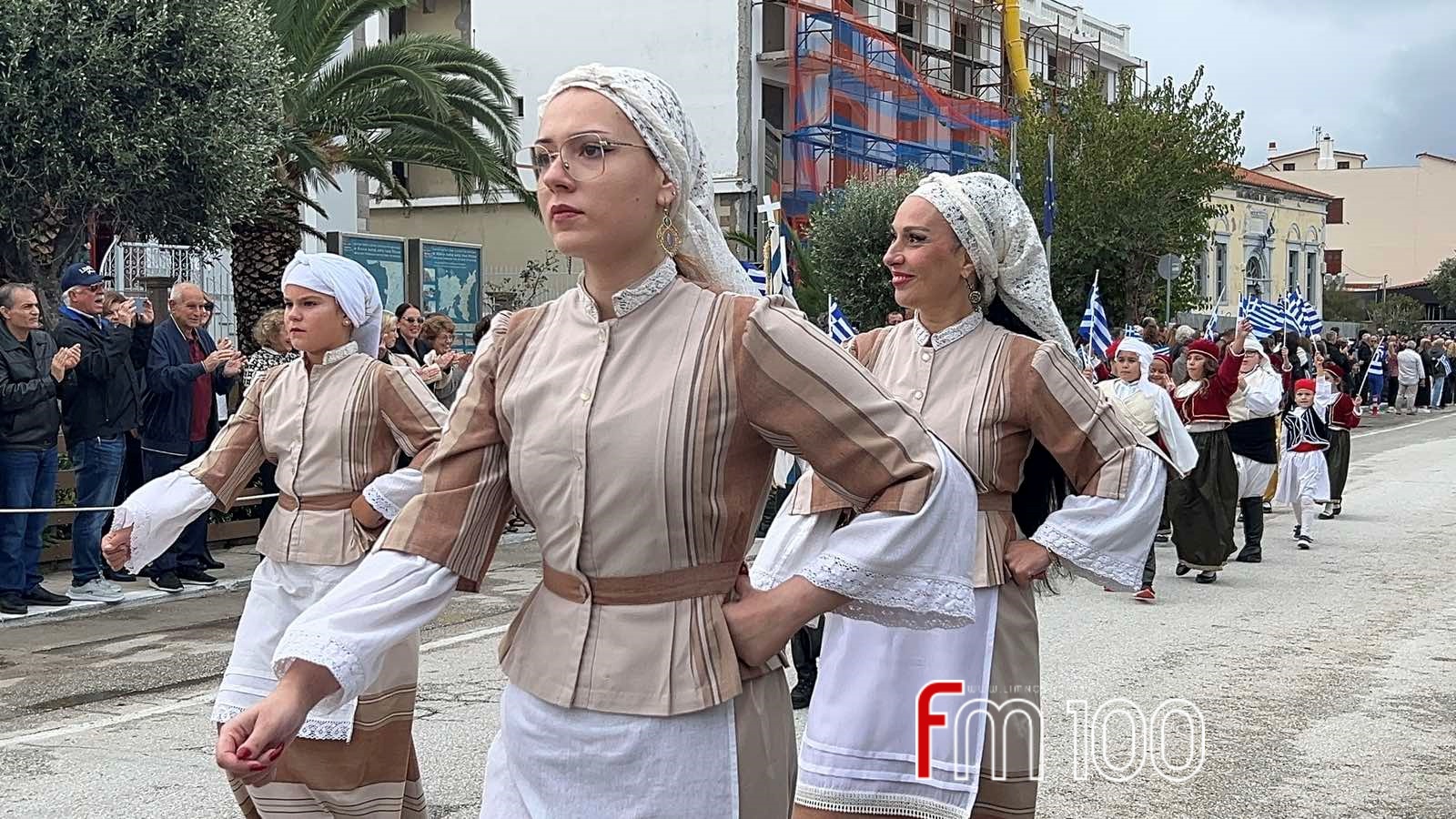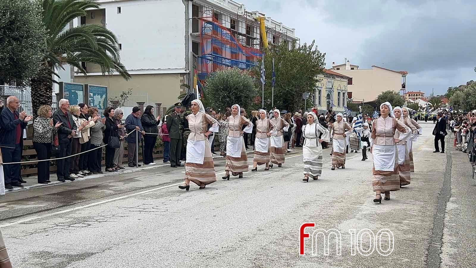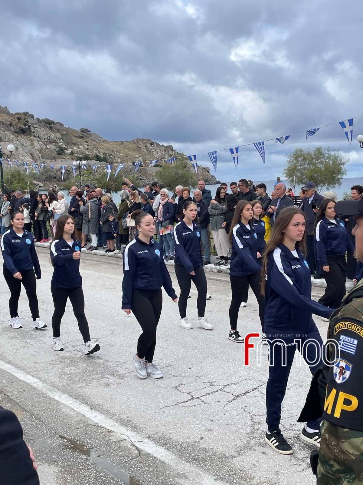 Ακολούθησε η μαθητική παρέλαση στο Ρωμαίικο Γιαλό την οποία παρακολούθησαν ο Πρόεδρος της Δημοκρατίας και οι επίσημοι προσκεκλημένοι. Στην παρέλαση συμμετείχαν μαθητές και μαθήτριες από τα σχολεία της πόλης, καθώς και πολιτιστικοί και αθλητικοί σύλλογοι του νησιού, προσφέροντας ένα ξεχωριστό θέαμα με παραδοσιακές φορεσιές και έντονο παλμό.