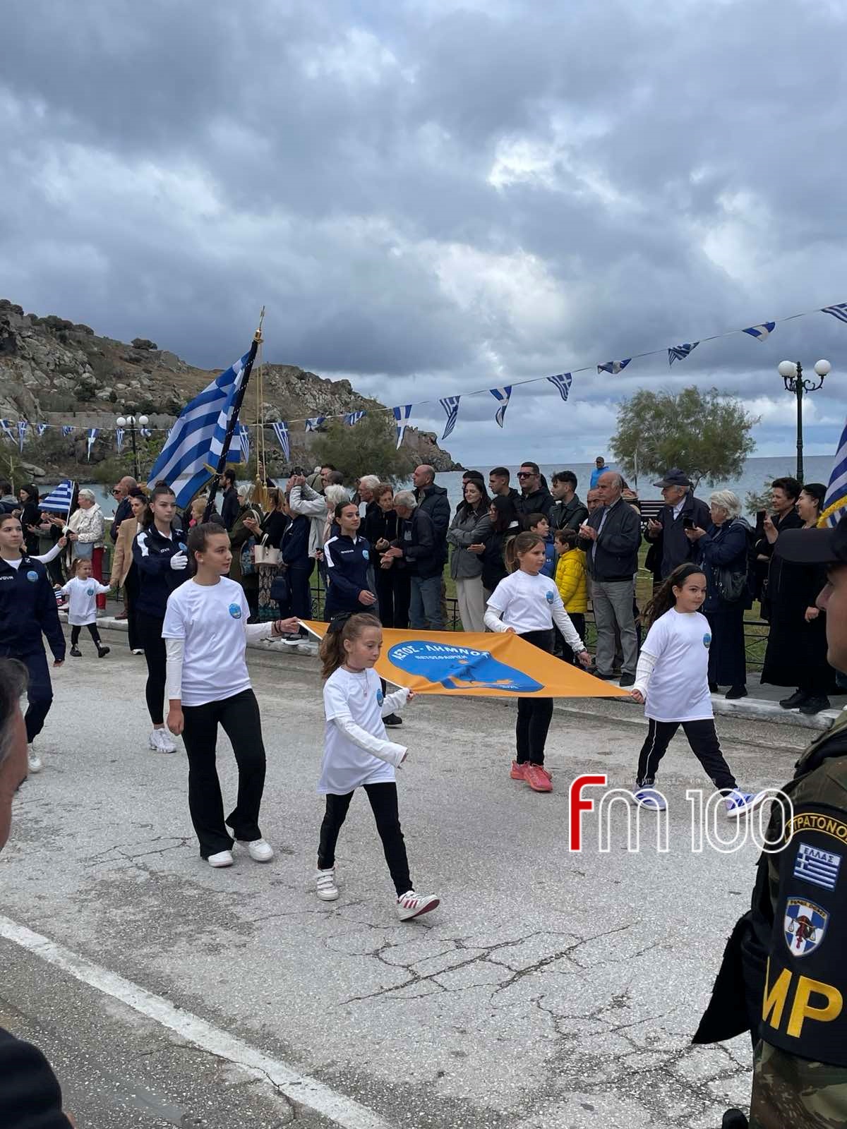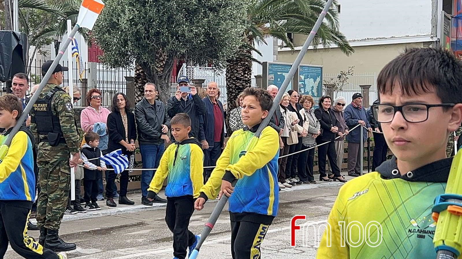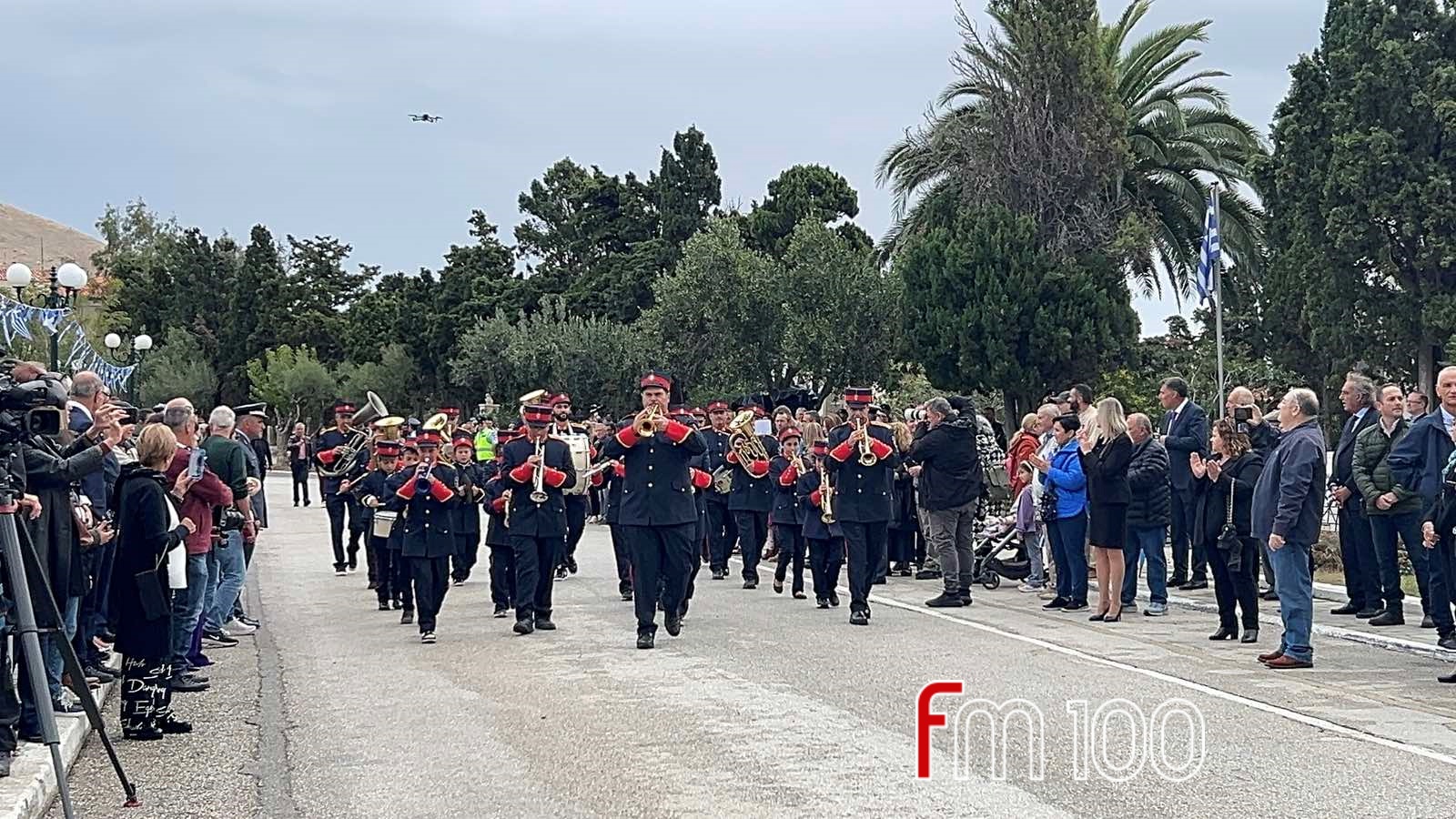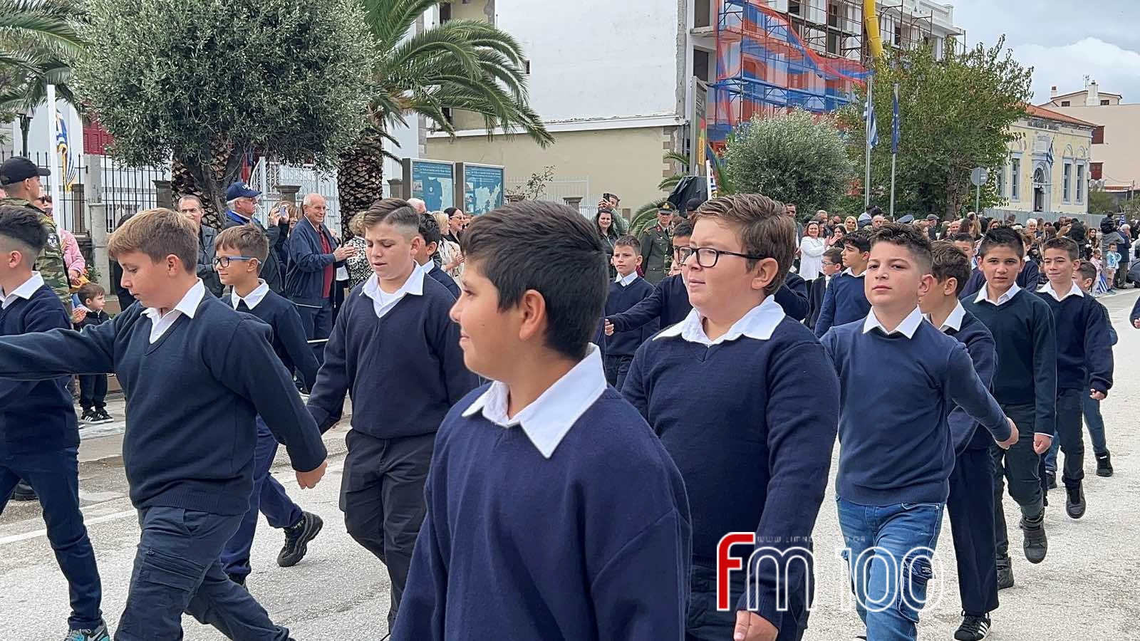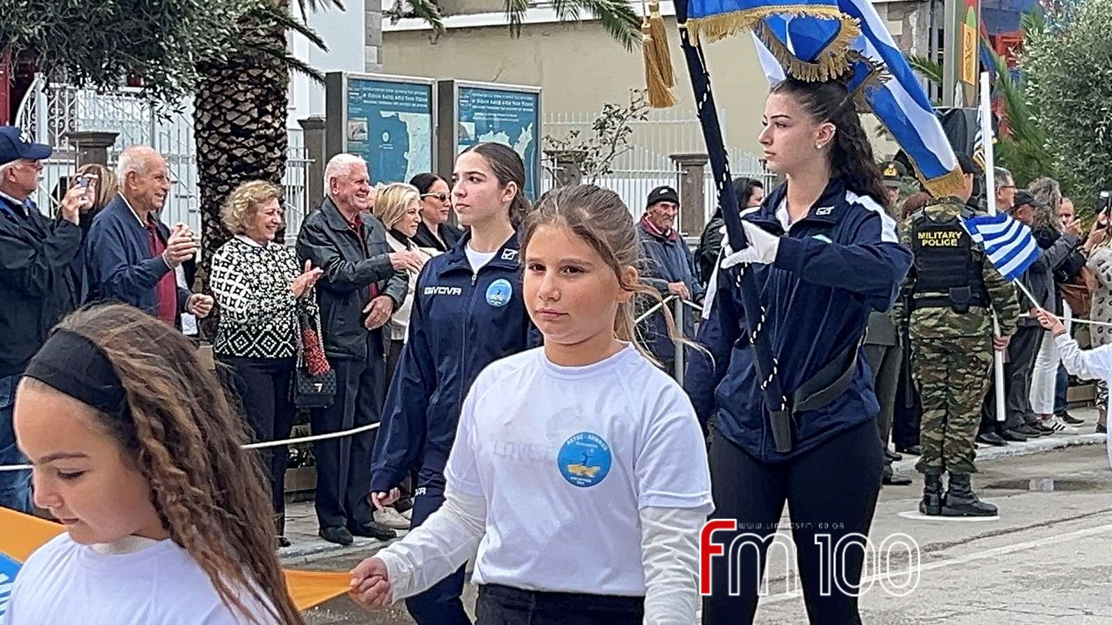 Ακολούθησε η μαθητική παρέλαση στο Ρωμαίικο Γιαλό την οποία παρακολούθησαν ο Πρόεδρος της Δημοκρατίας και οι επίσημοι προσκεκλημένοι. Στην παρέλαση συμμετείχαν μαθητές και μαθήτριες από τα σχολεία της πόλης, καθώς και πολιτιστικοί και αθλητικοί σύλλογοι του νησιού, προσφέροντας ένα ξεχωριστό θέαμα με παραδοσιακές φορεσιές και έντονο παλμό.