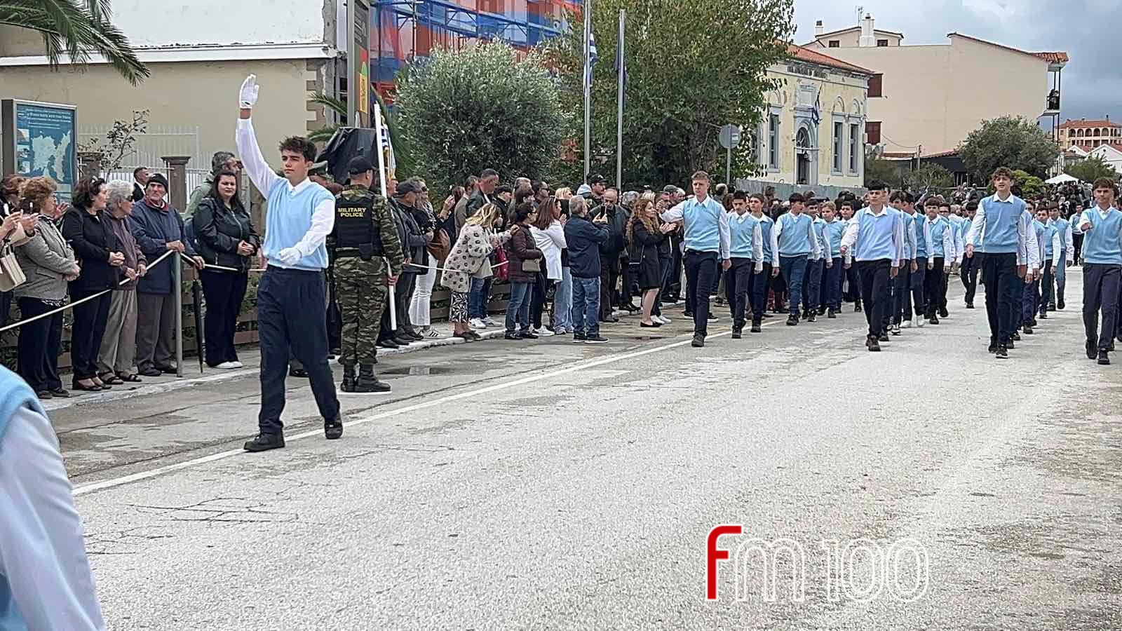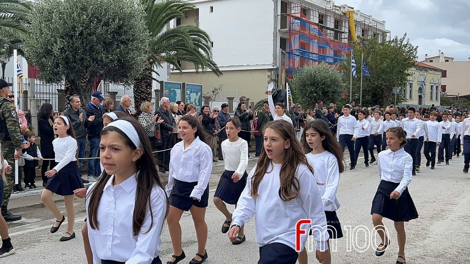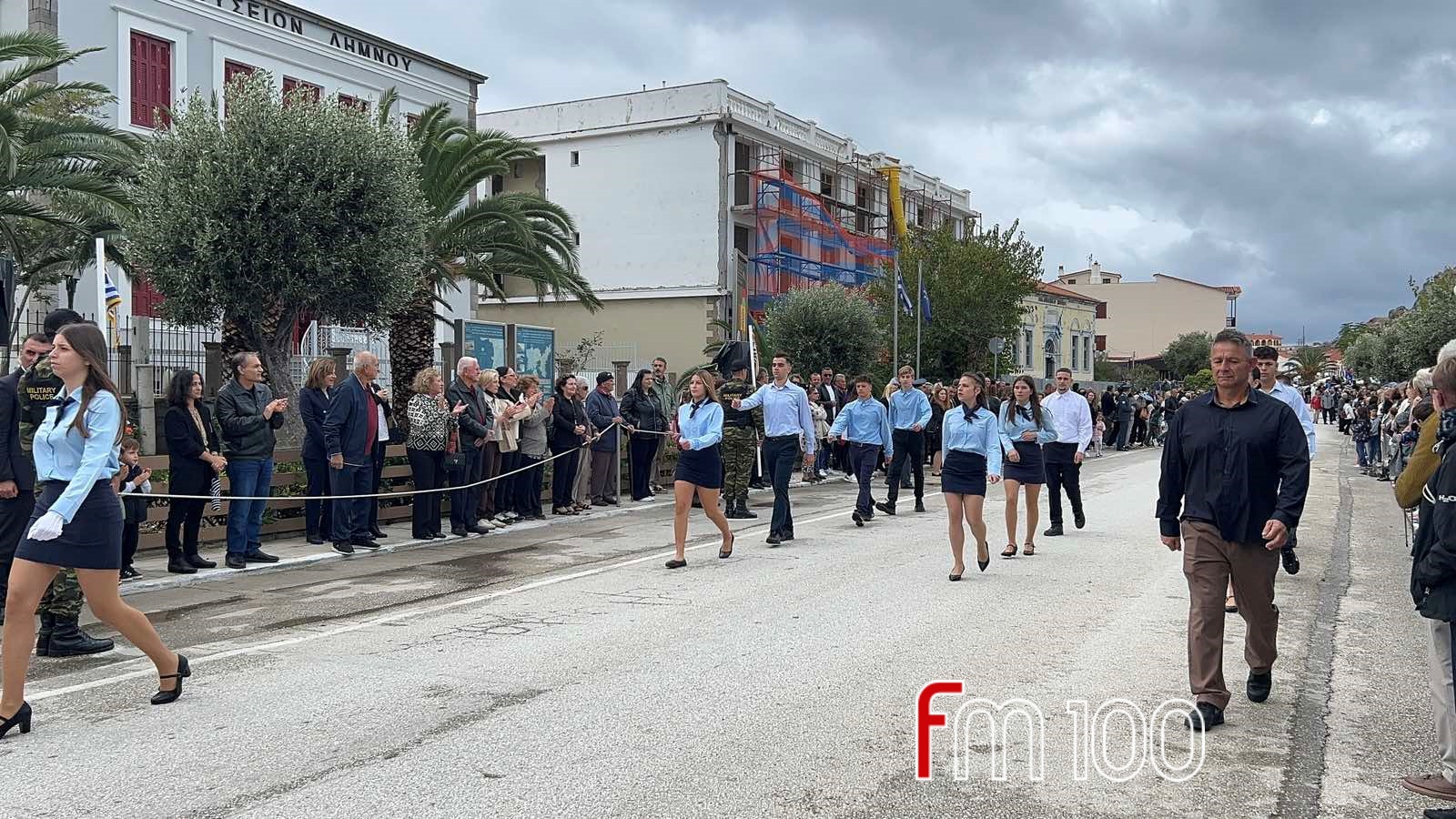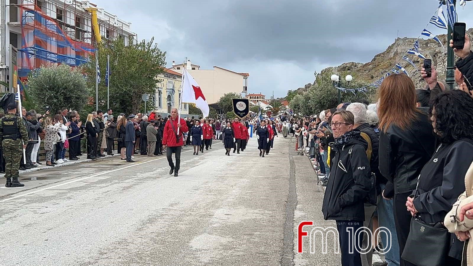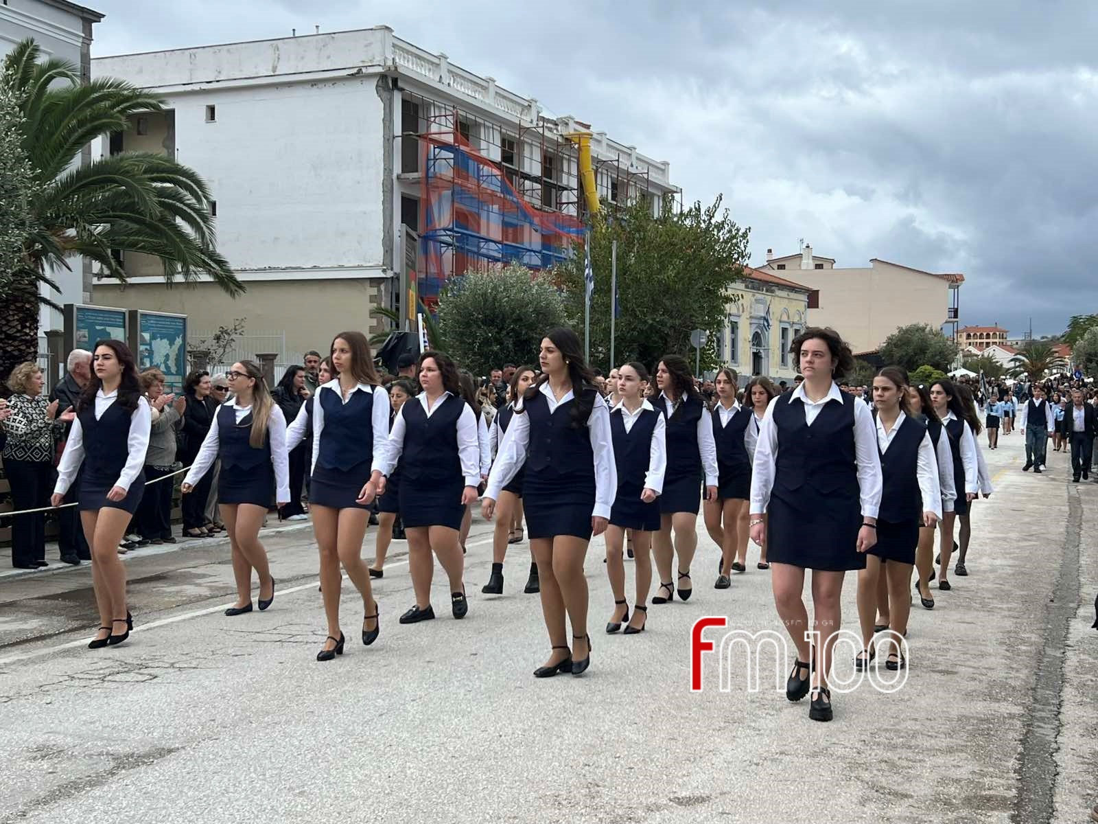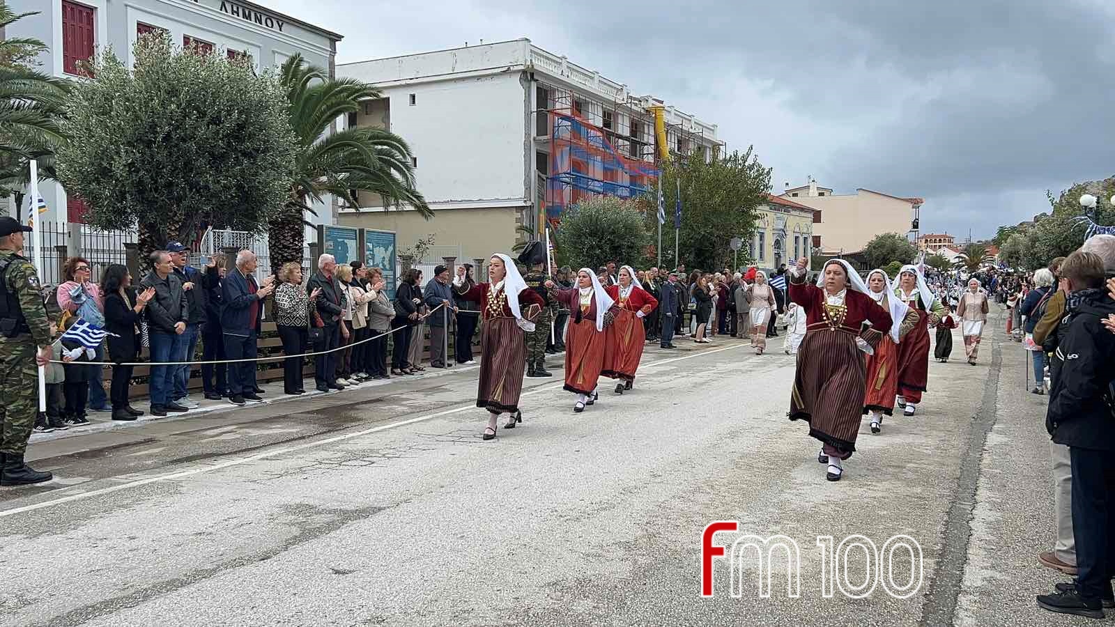 Ακολούθησε η μαθητική παρέλαση στο Ρωμαίικο Γιαλό την οποία παρακολούθησαν ο Πρόεδρος της Δημοκρατίας και οι επίσημοι προσκεκλημένοι. Στην παρέλαση συμμετείχαν μαθητές και μαθήτριες από τα σχολεία της πόλης, καθώς και πολιτιστικοί και αθλητικοί σύλλογοι του νησιού, προσφέροντας ένα ξεχωριστό θέαμα με παραδοσιακές φορεσιές και έντονο παλμό.