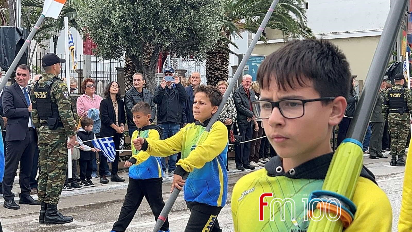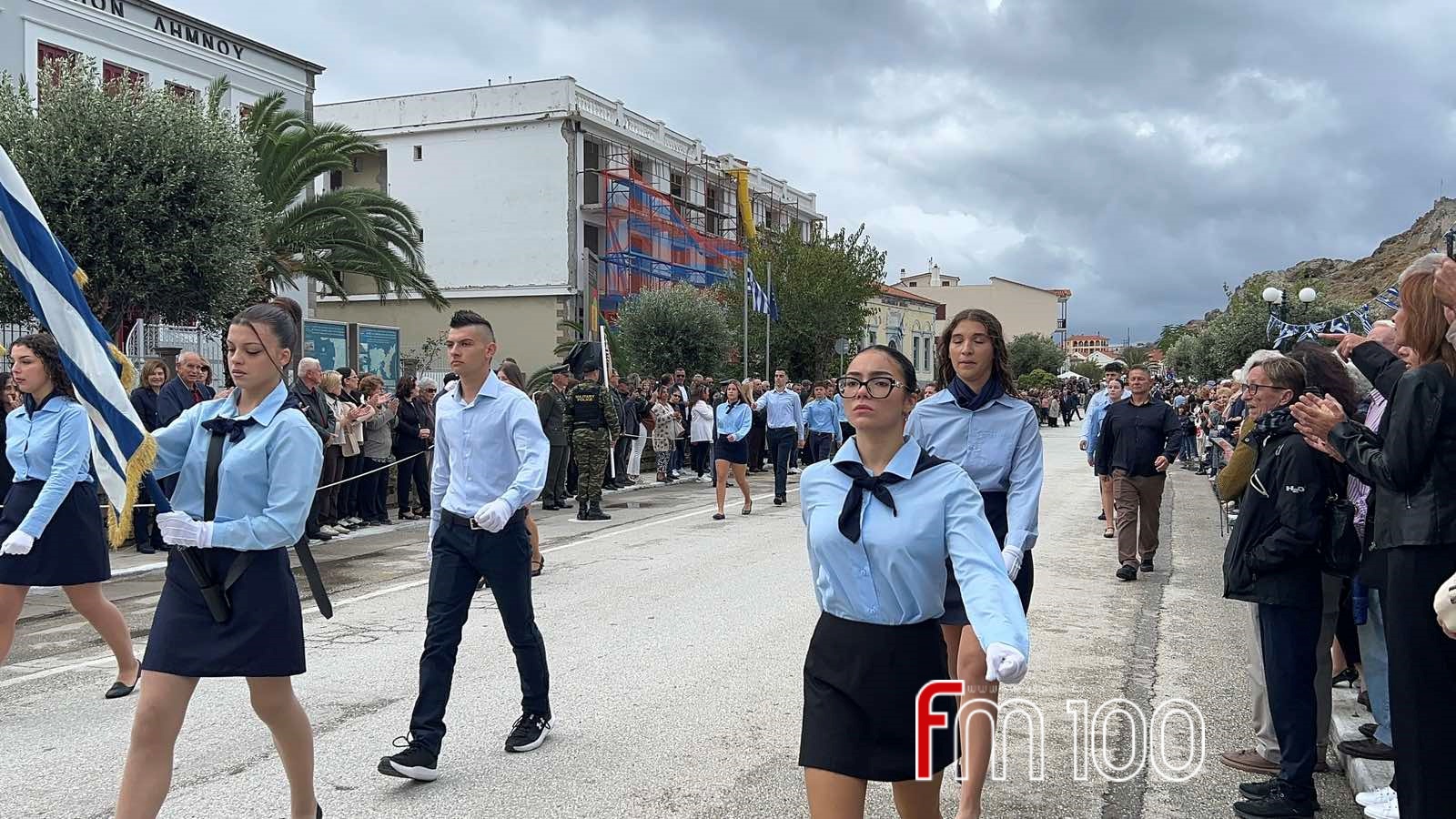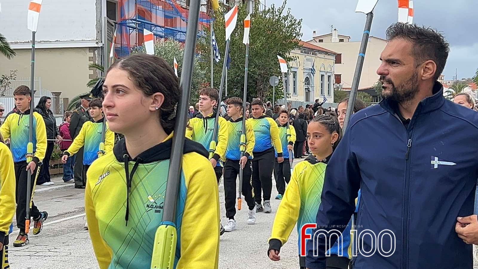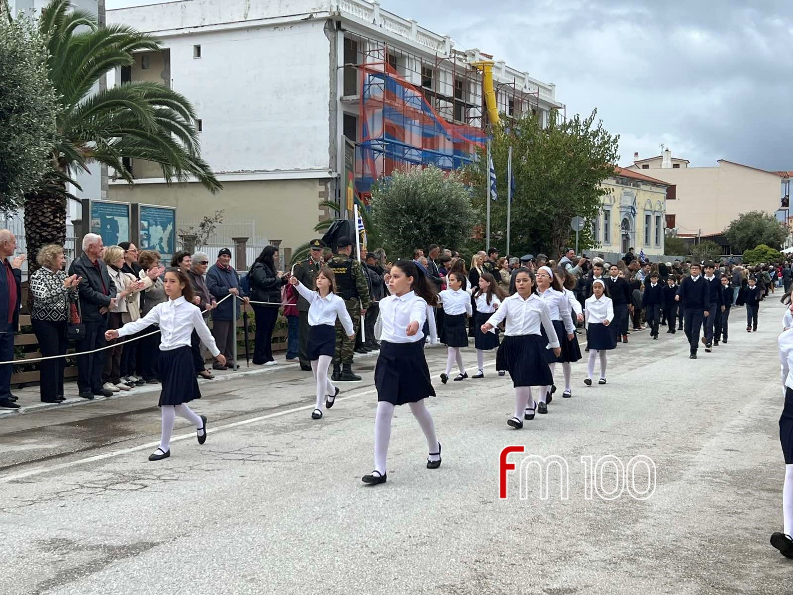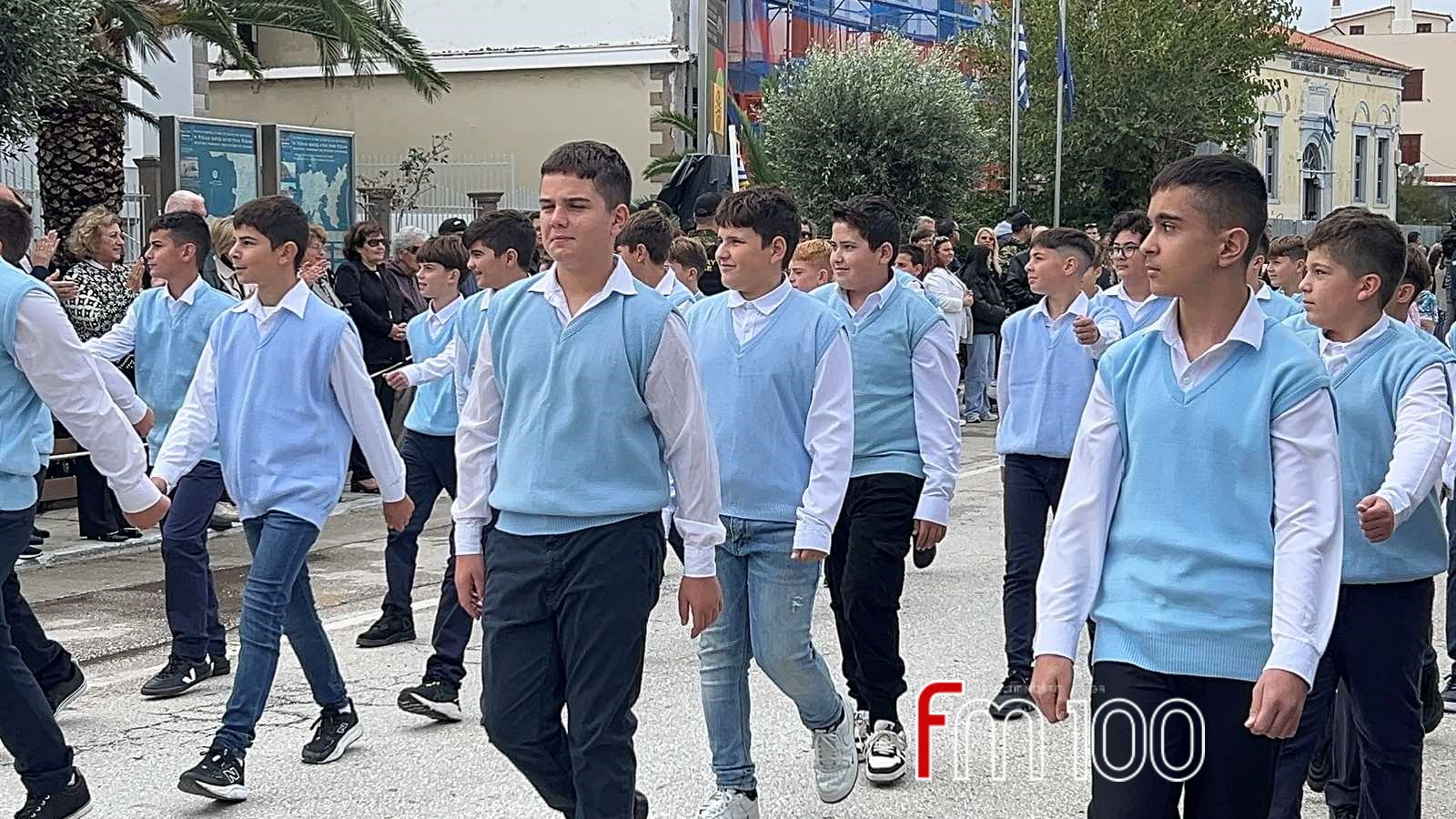 Ακολούθησε η μαθητική παρέλαση στο Ρωμαίικο Γιαλό την οποία παρακολούθησαν ο Πρόεδρος της Δημοκρατίας και οι επίσημοι προσκεκλημένοι. Στην παρέλαση συμμετείχαν μαθητές και μαθήτριες από τα σχολεία της πόλης, καθώς και πολιτιστικοί και αθλητικοί σύλλογοι του νησιού, προσφέροντας ένα ξεχωριστό θέαμα με παραδοσιακές φορεσιές και έντονο παλμό.